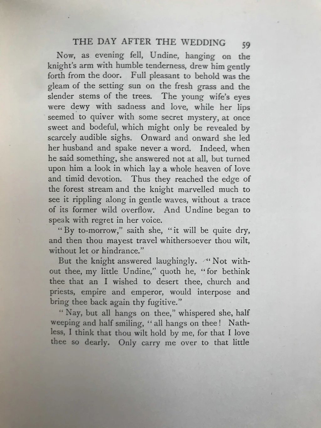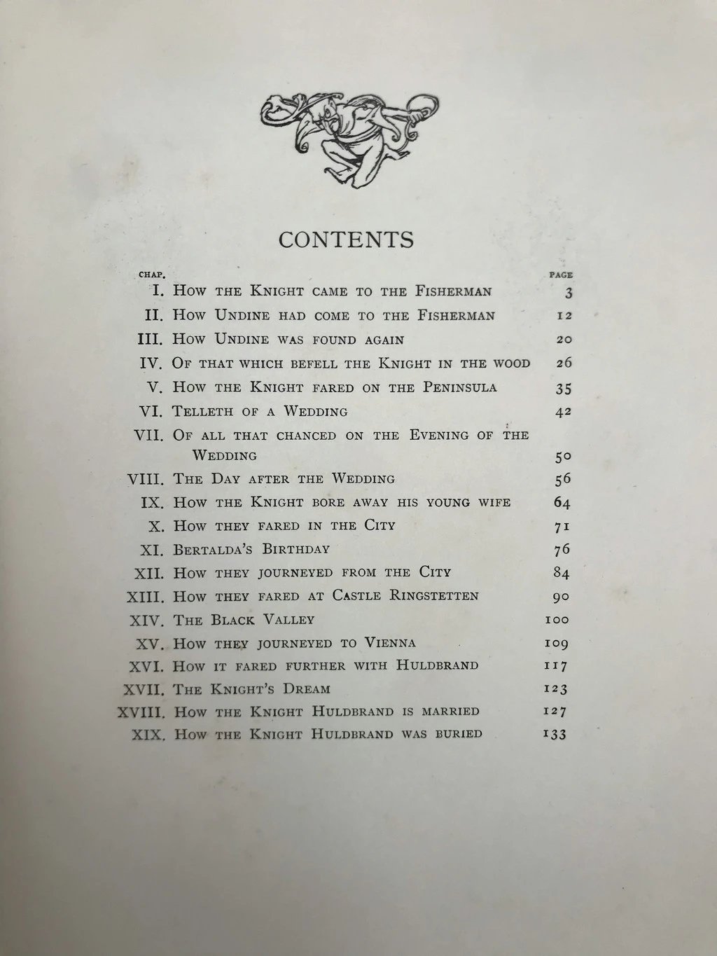 《水妖记》是德国作家莫特·富克创作的经典童话,它被认为是德国后期浪漫主义文学的代表作。童话讲述了生来没有灵魂的水之精灵Undine与骑士之间的凄美爱情故事。痴恋于骑士的Undine为爱情宁愿舍弃不老容颜与永恒的生命,与骑士结成婚姻,然而却遭遇骑士爱情的背叛,最后化为泉水环绕爱人坟边。《水妖记》插图由19世纪末英国出版黄金时代著名的插画大师亚瑟·拉克姆于1909年绘制,他的作品风格奇异瑰丽,创造的形象分外鲜明:老树虬曲苍劲,矮人阴险恶毒,妖灵妩媚妖娆,将文字中的奇幻氛围展现得淋漓尽致。