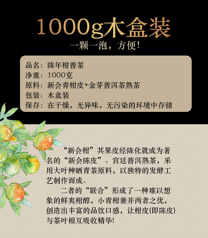 新会小青柑 云南普洱茶陈年宫廷料小青柑陈皮普洱茶橘普茶 1000g