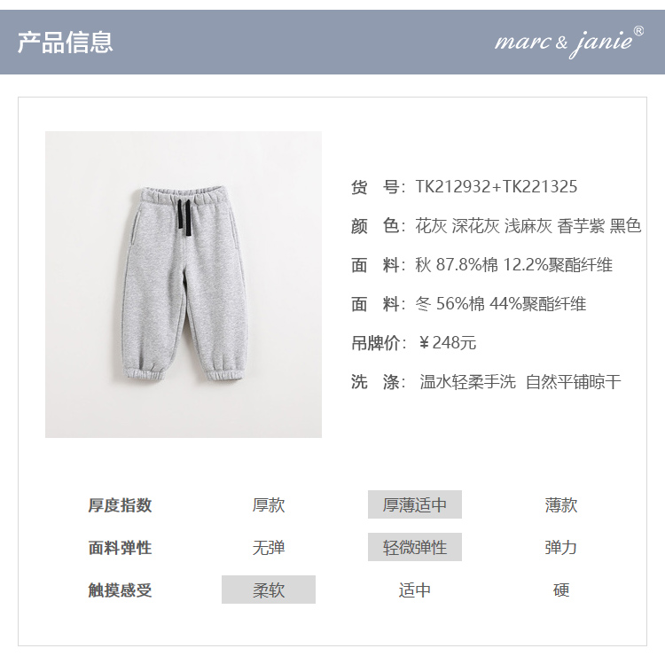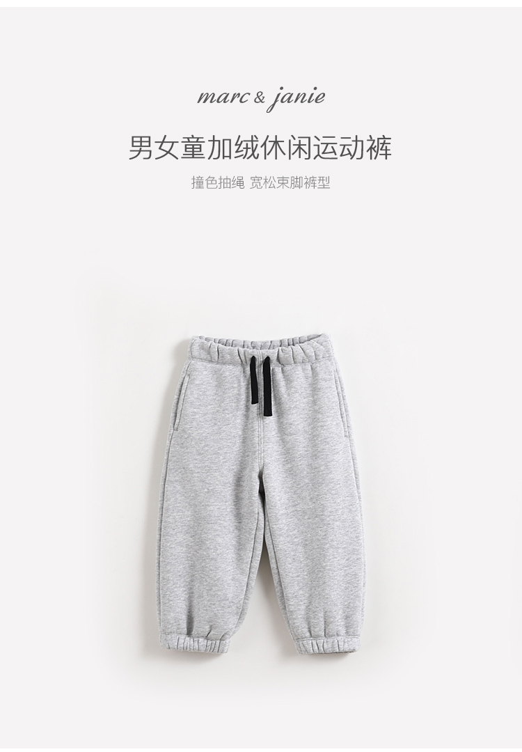 马克珍妮秋冬新款 男女童加绒休闲运动裤 儿童裤子221936