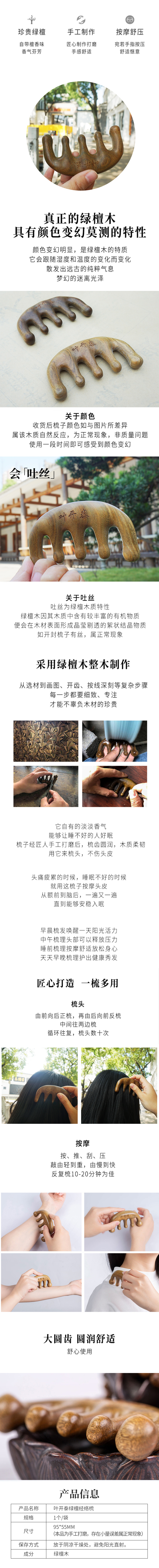 绿檀原木整木制作按摩梳