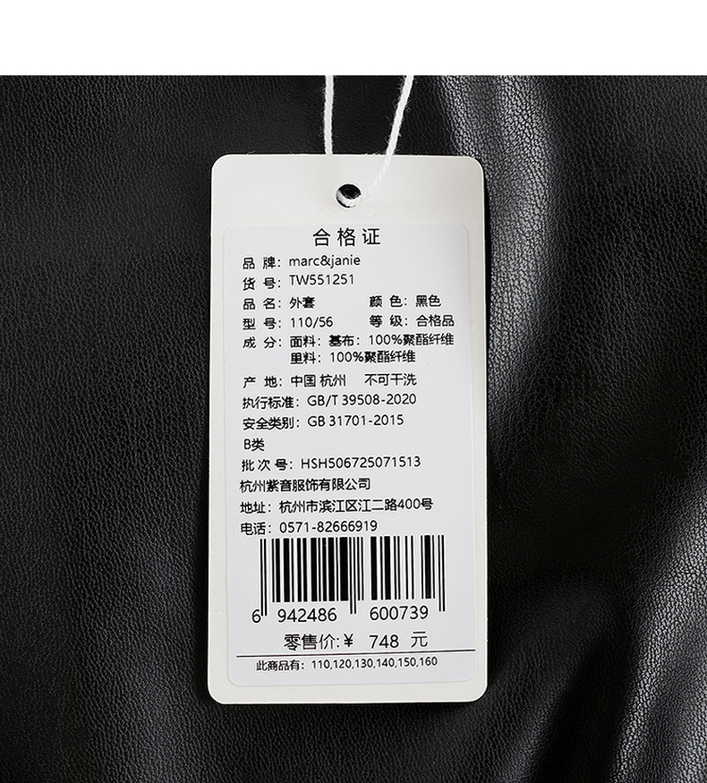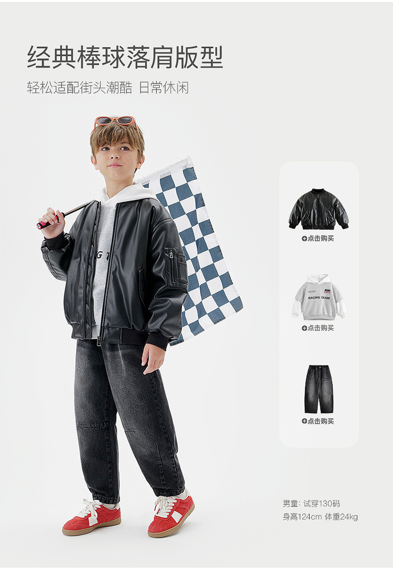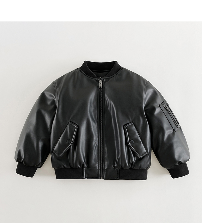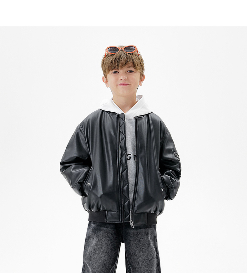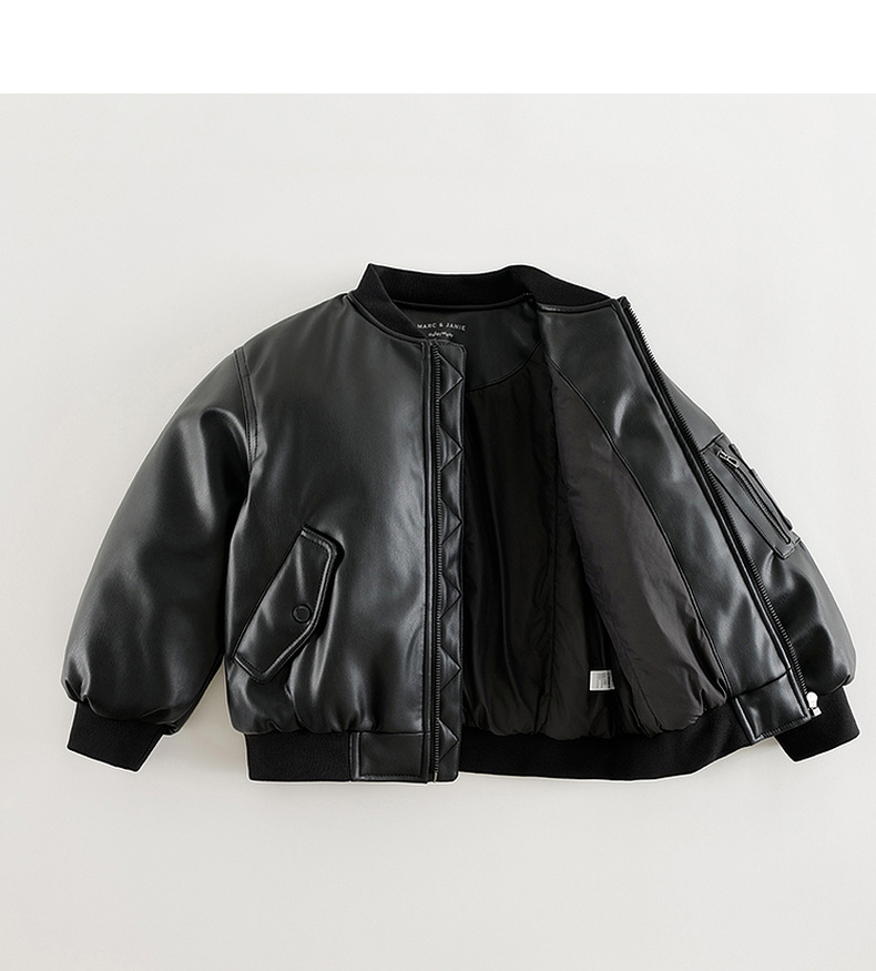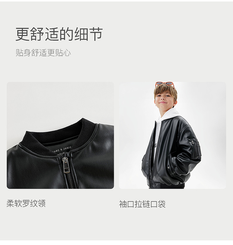 马克珍妮男童潮酷有型夹棉皮衣外套2025年秋冬新款551251