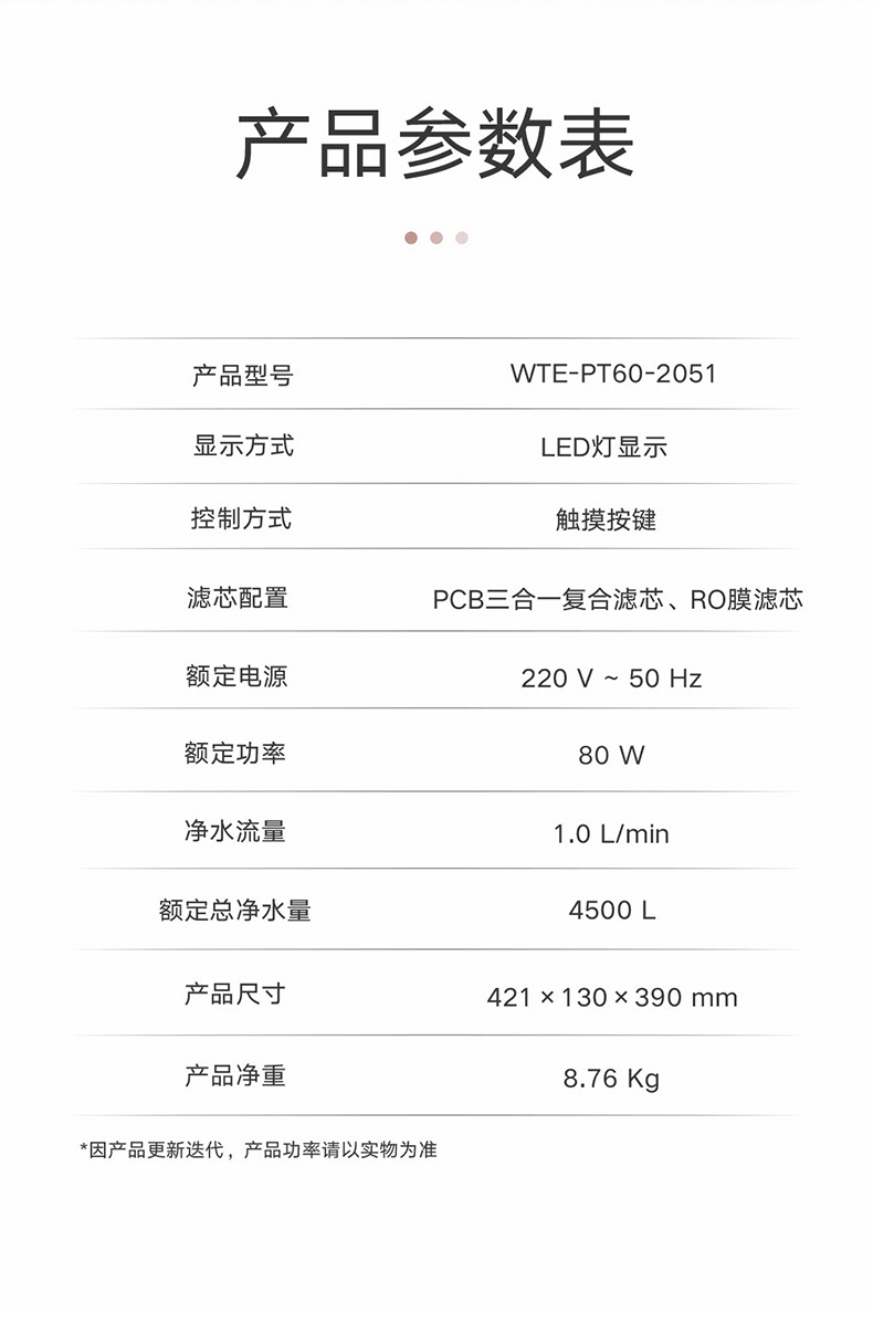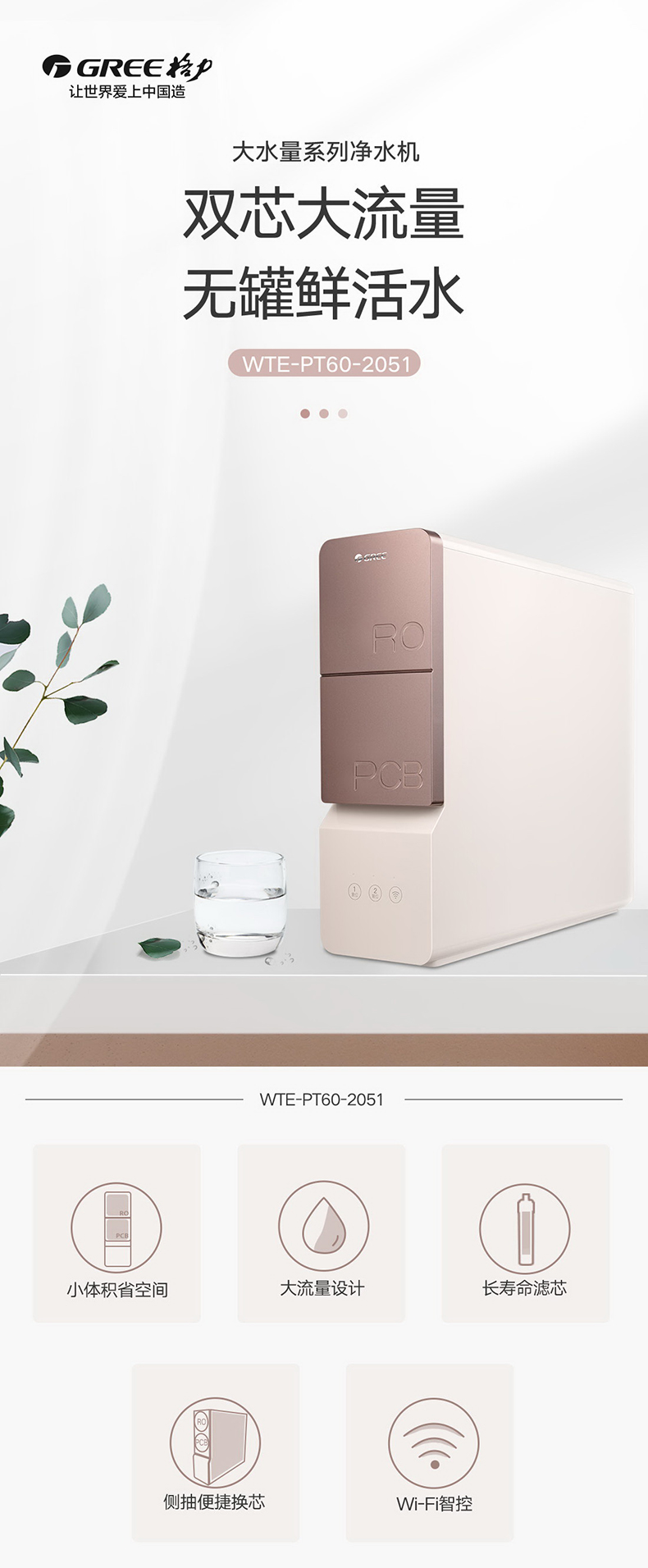 GREE格力 反渗透净水机 WTE-PT60-2051 超薄机身 高效制水
