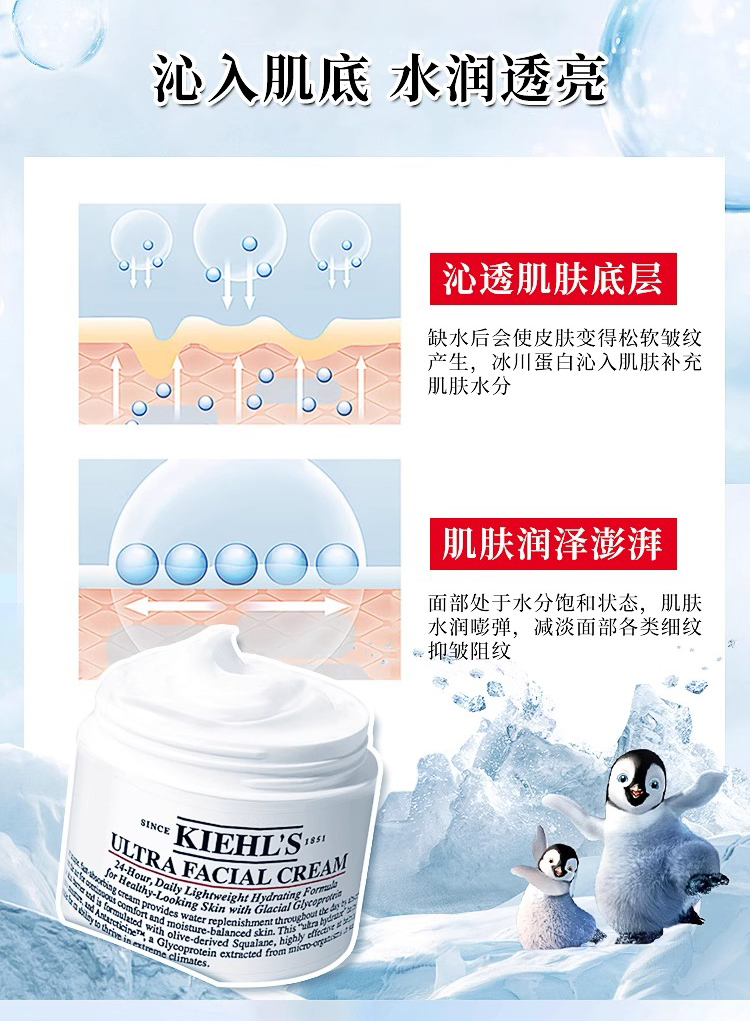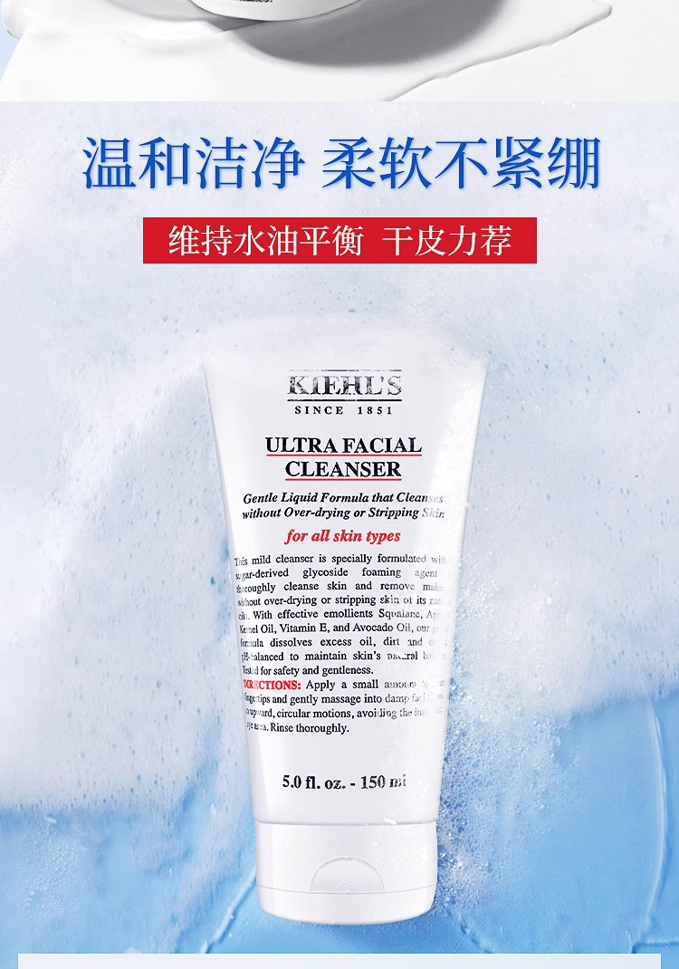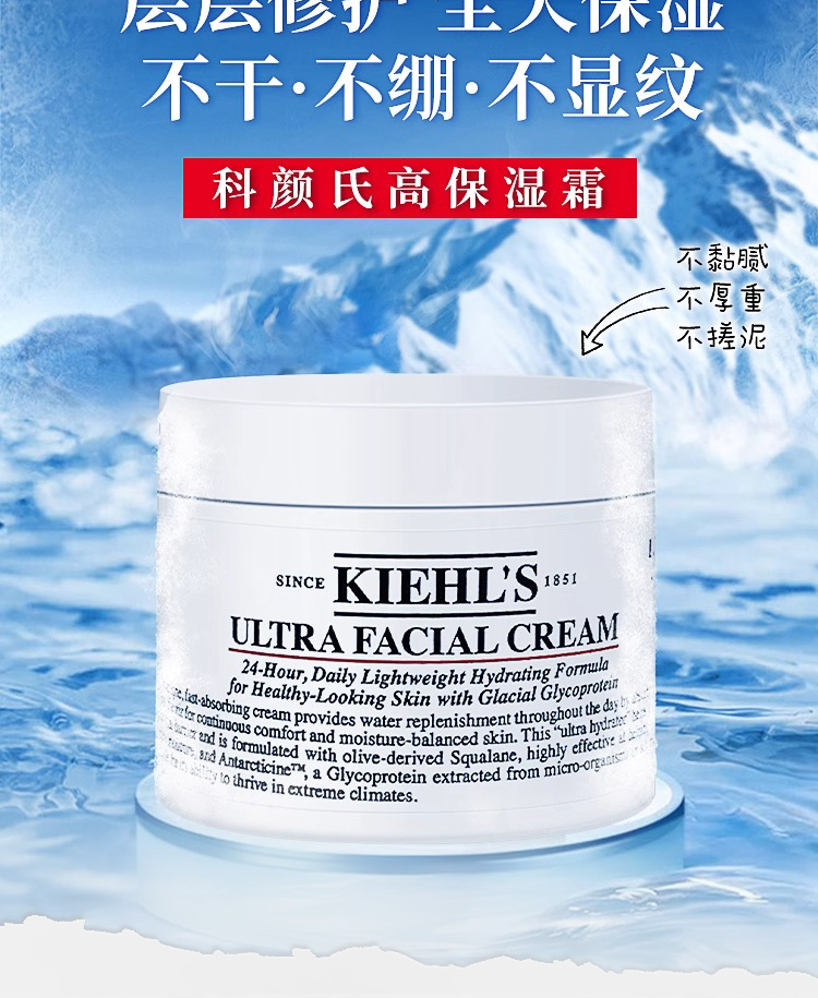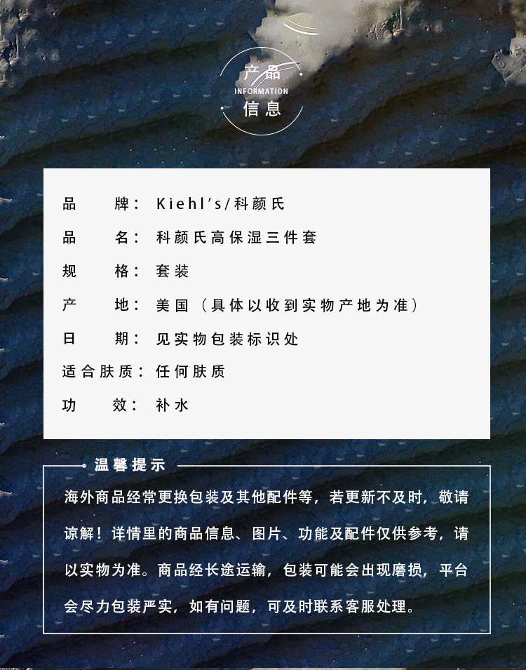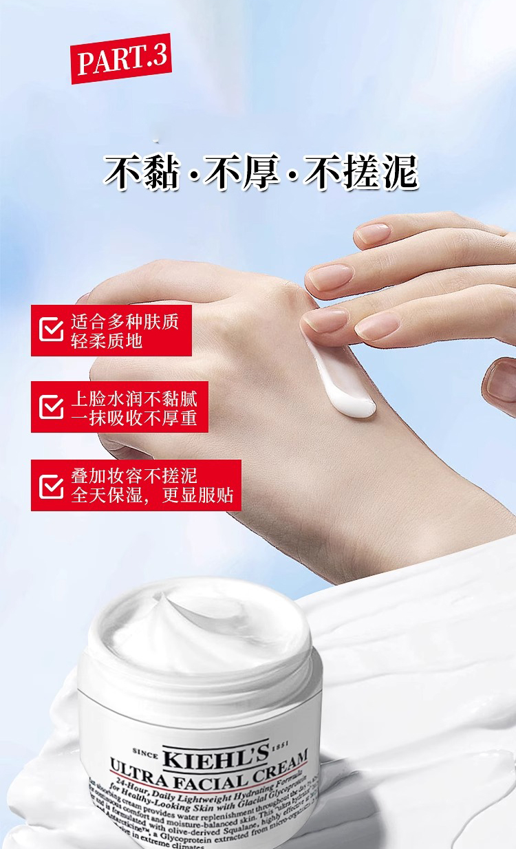 科颜氏(Kiehl's)高保湿三件套装面霜125+洁面乳150+爽肤水250m面部护肤组合 高保湿三件套礼盒生日礼物送女友(CDF)