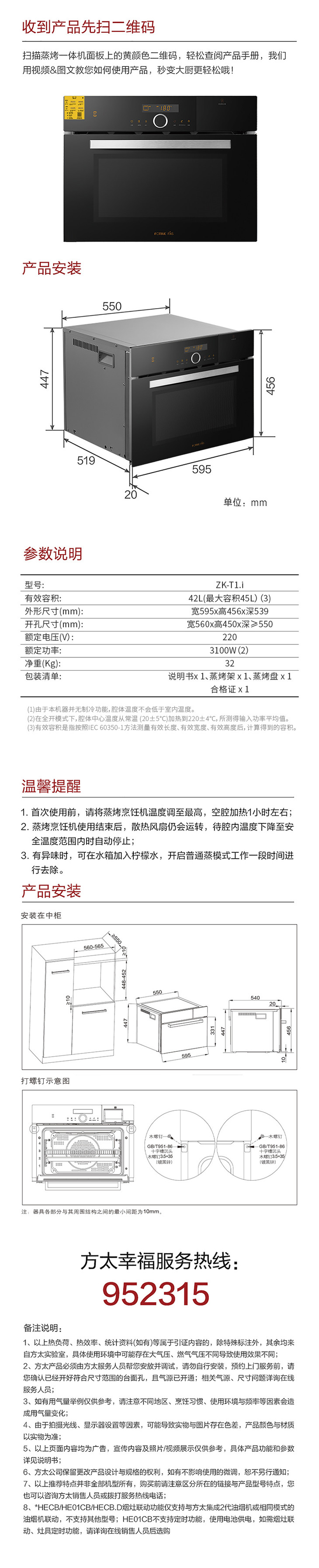 方太(11804)蒸烤一体机ZK-T1.i控温更控湿精准复刻全球美味
