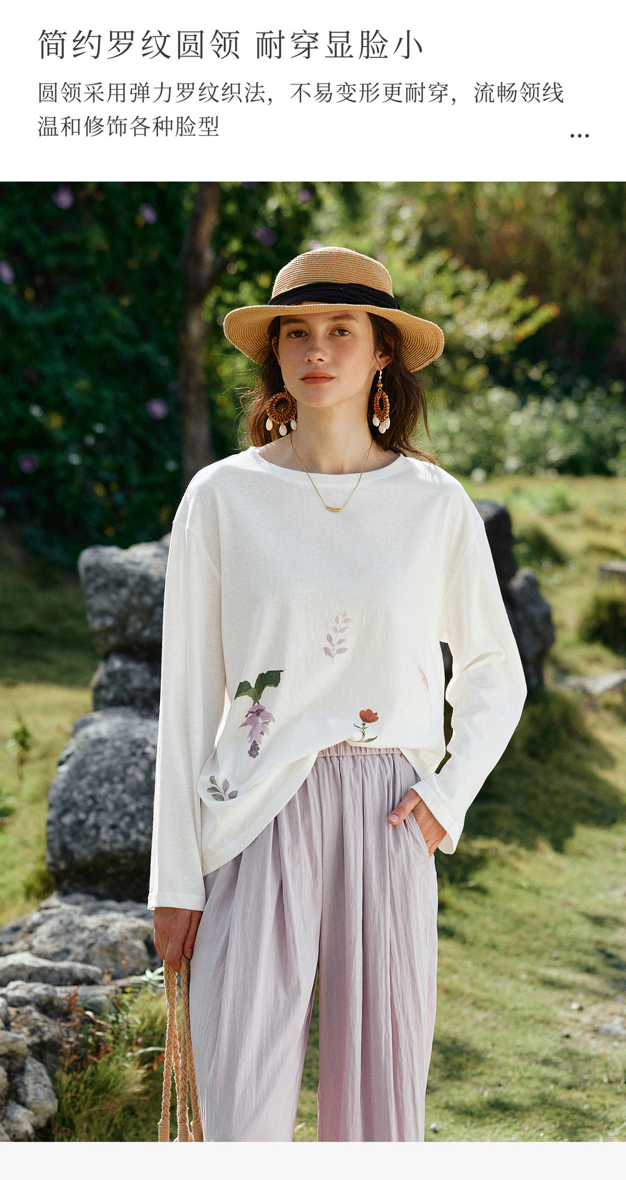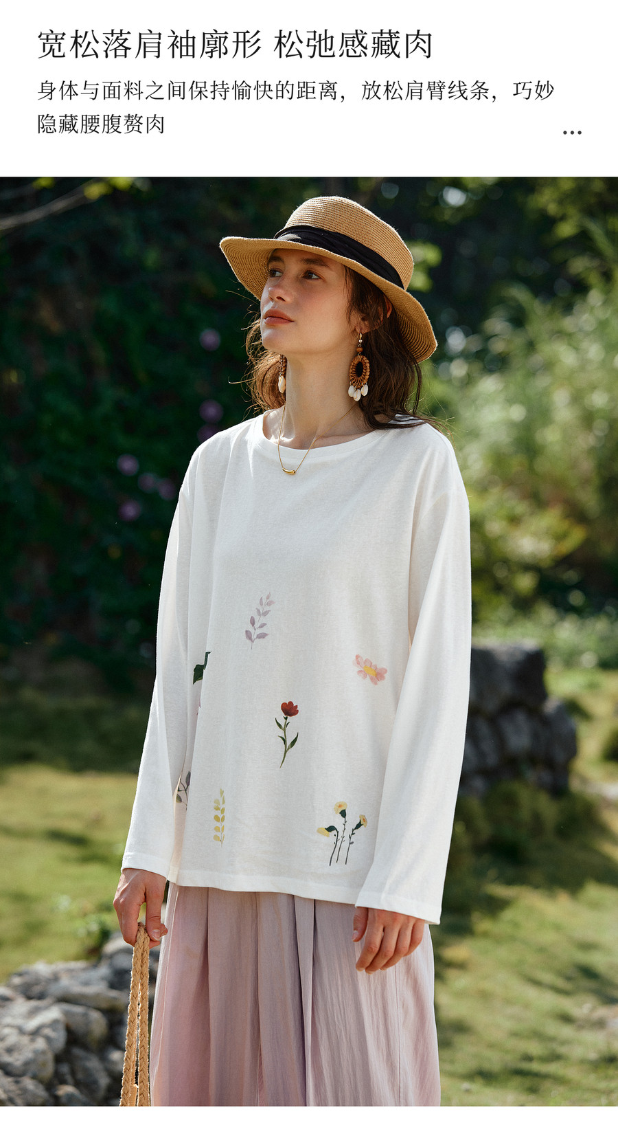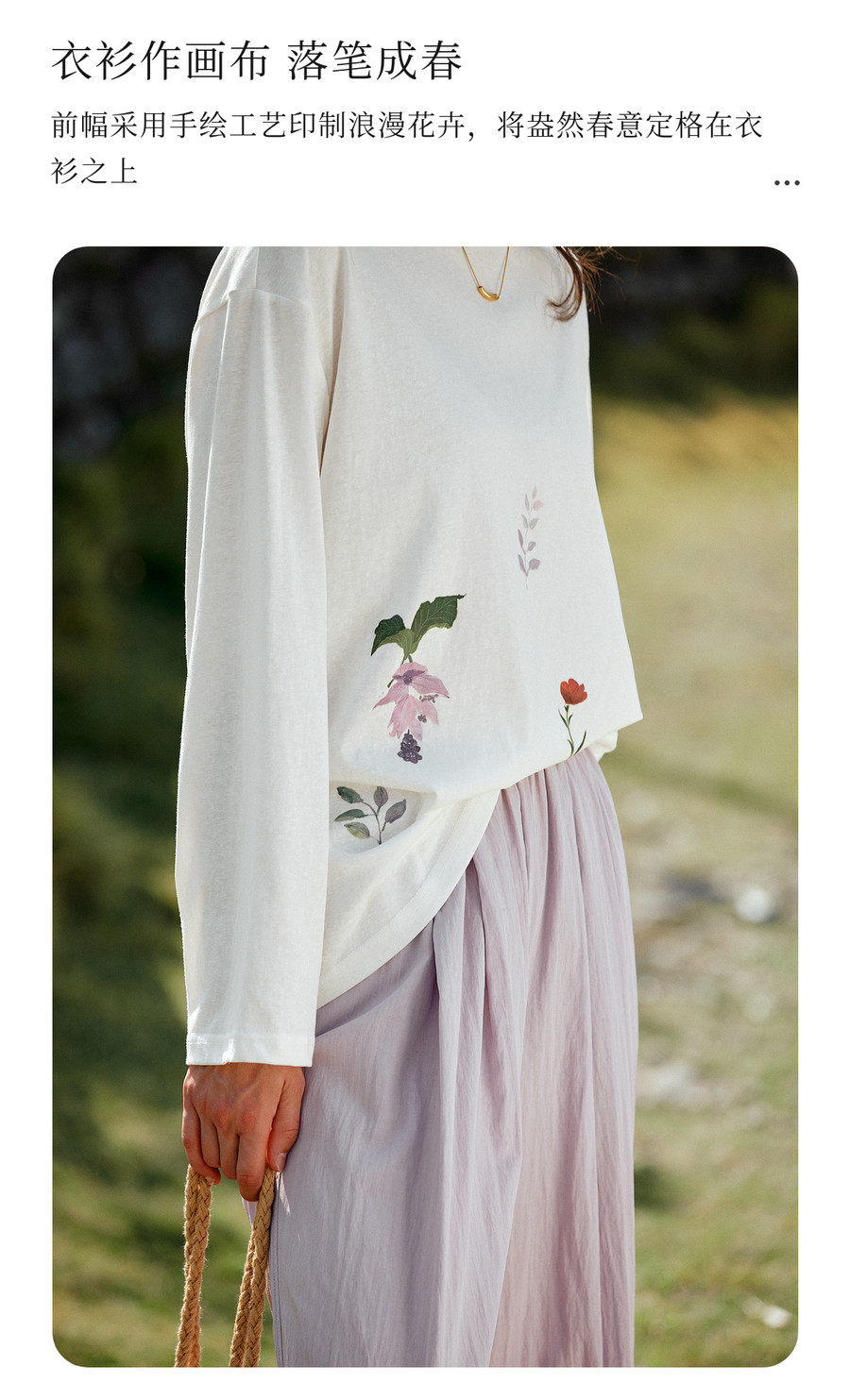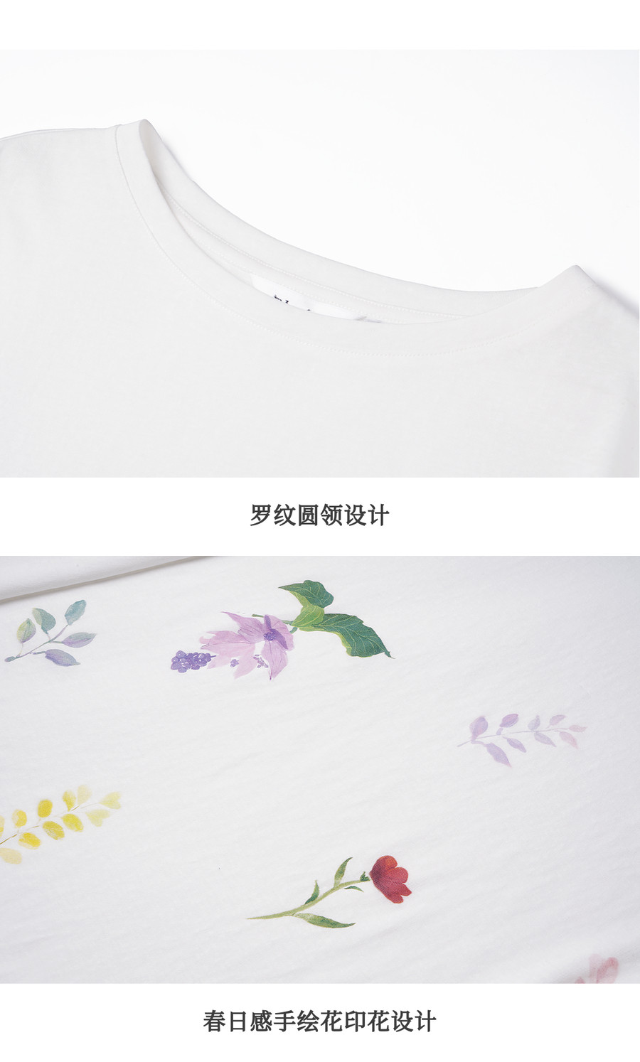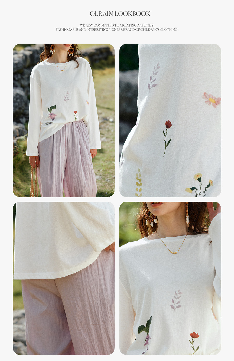 OLrain欧芮儿2026新款春白色休闲度假春日感手绘花印花长袖T恤女
