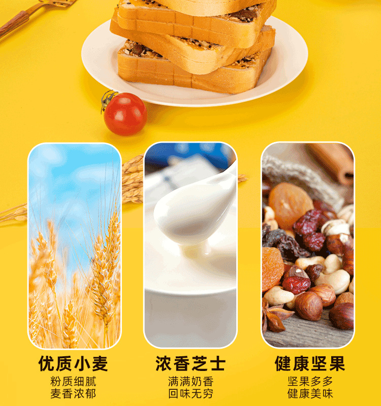 「独立包装!坚果岩烧吐司」壹得利坚果岩烧夹心吐司面包谷物粗粮饱腹零食小吃