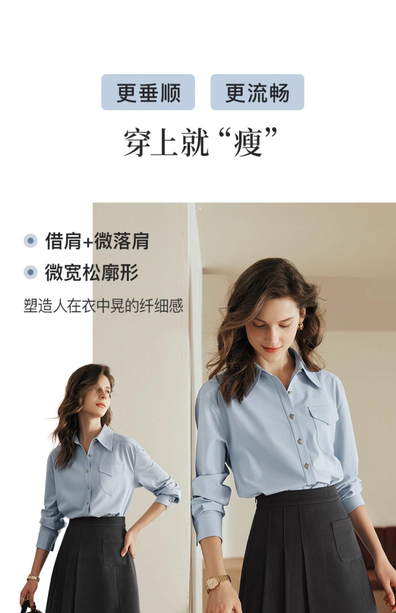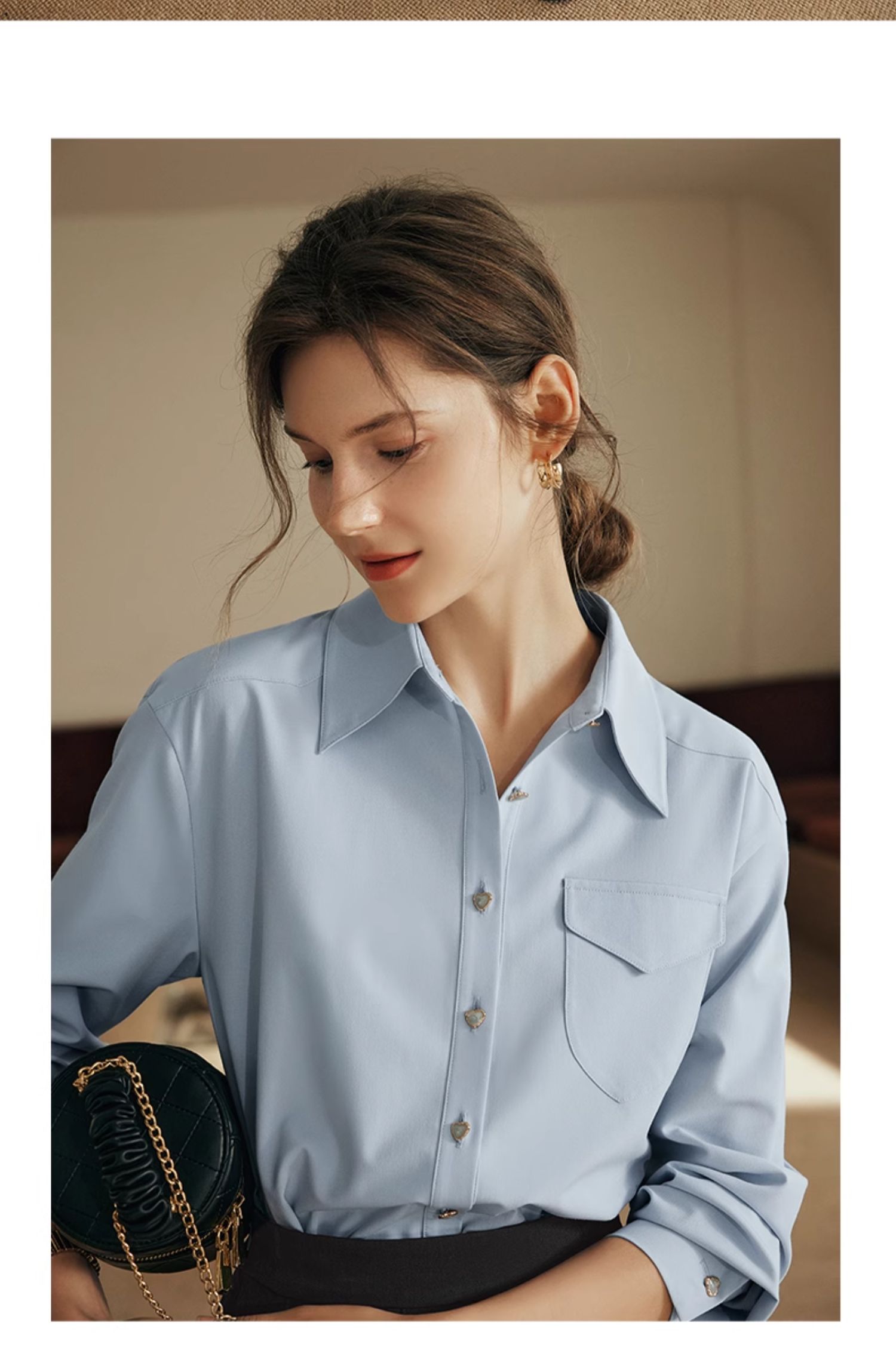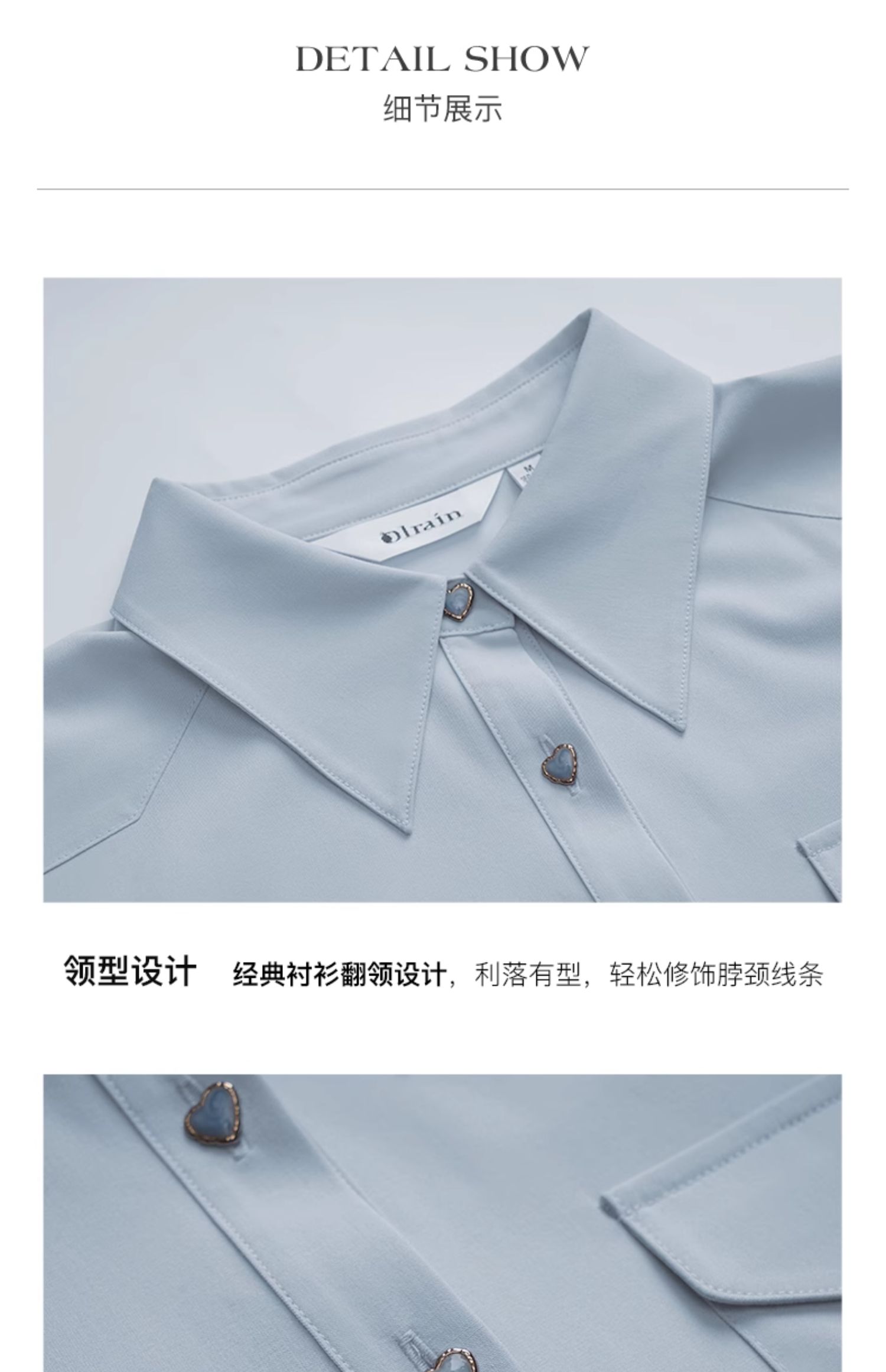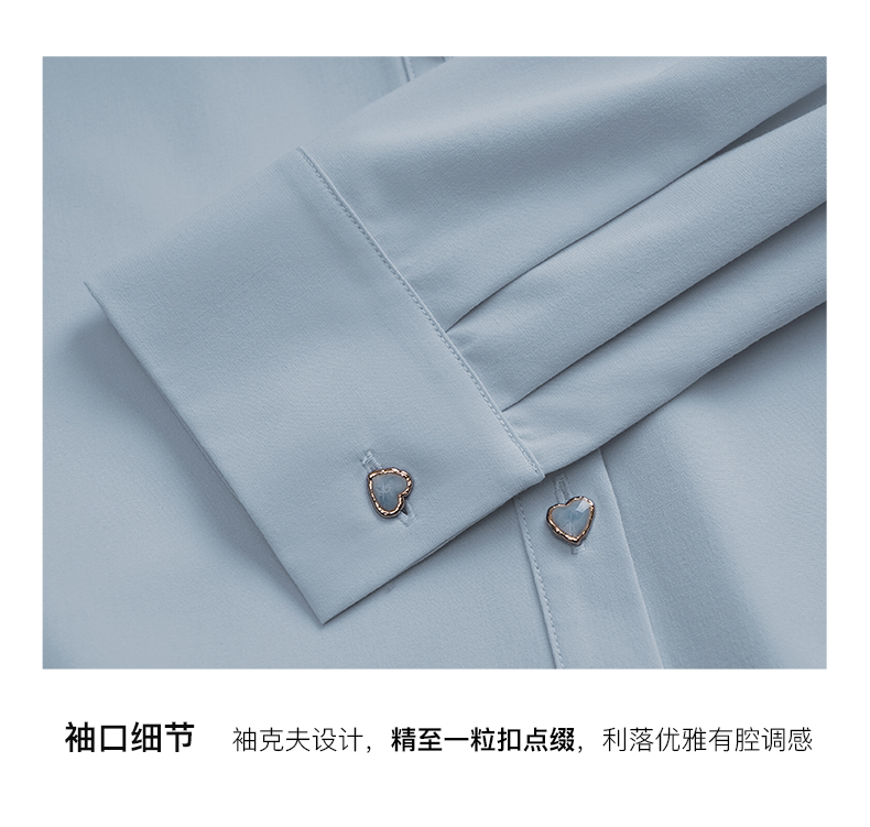 OLrain欧芮儿法式蓝色衬衫女早秋2024年新款宽松通勤减龄长袖衬衣