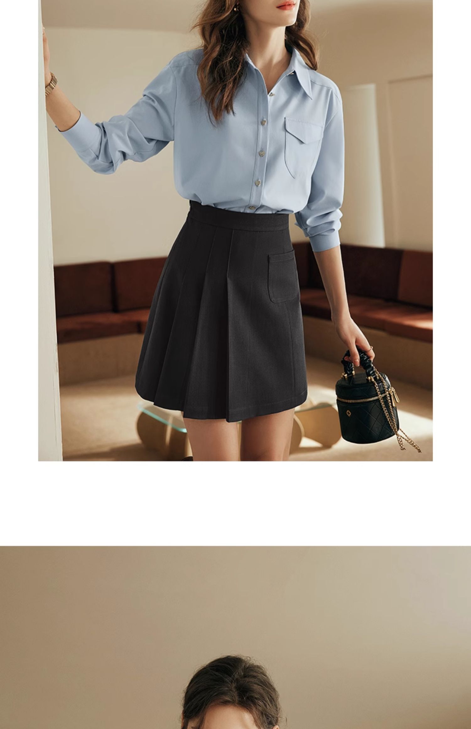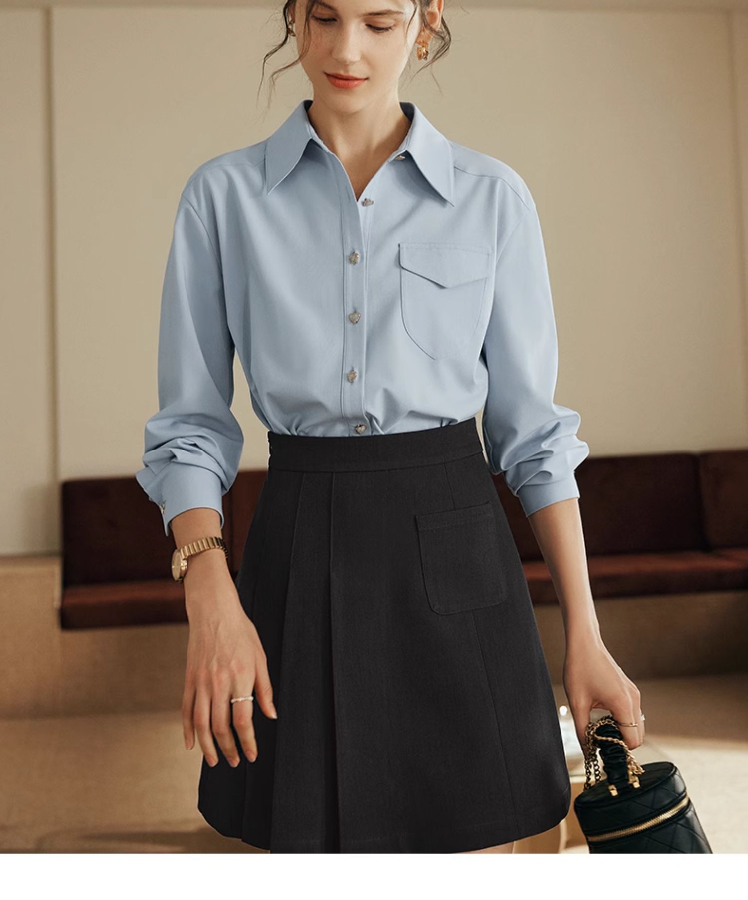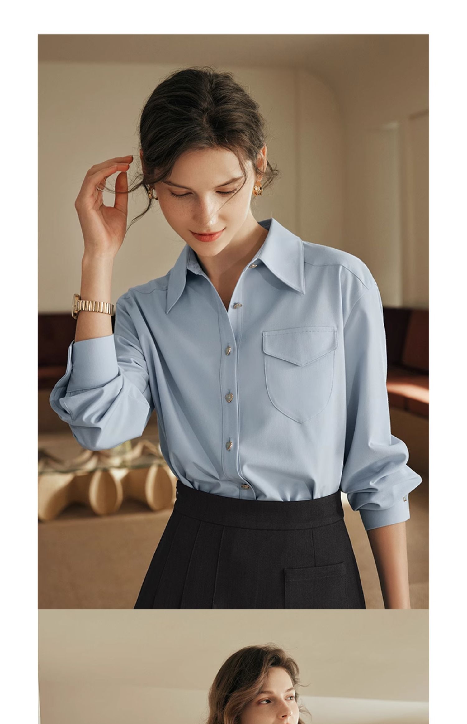 OLrain欧芮儿法式蓝色衬衫女早秋2024年新款宽松通勤减龄长袖衬衣