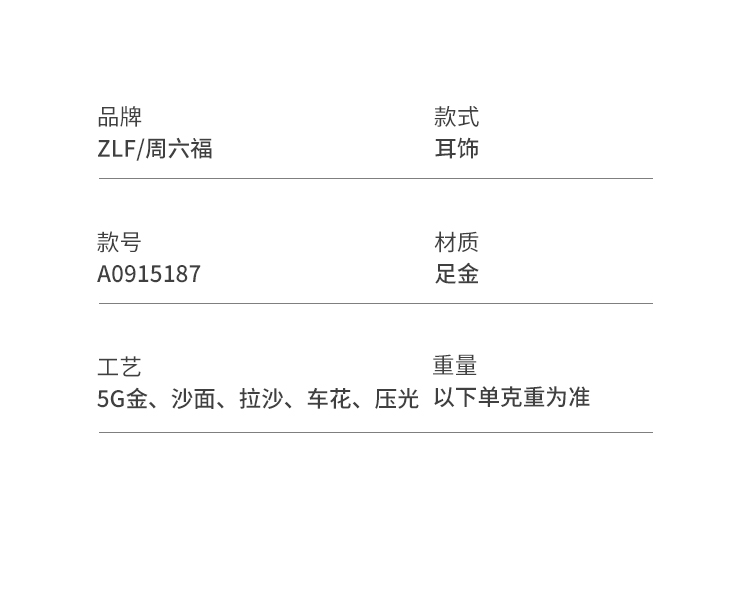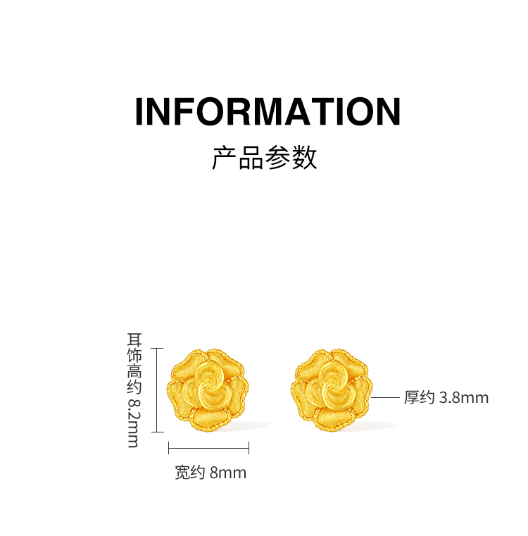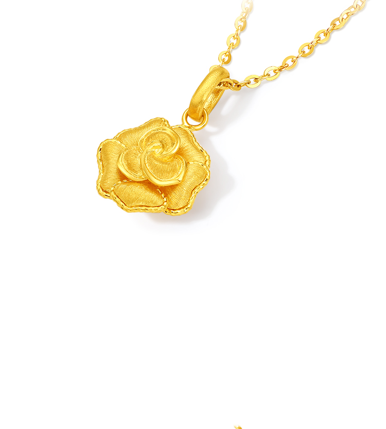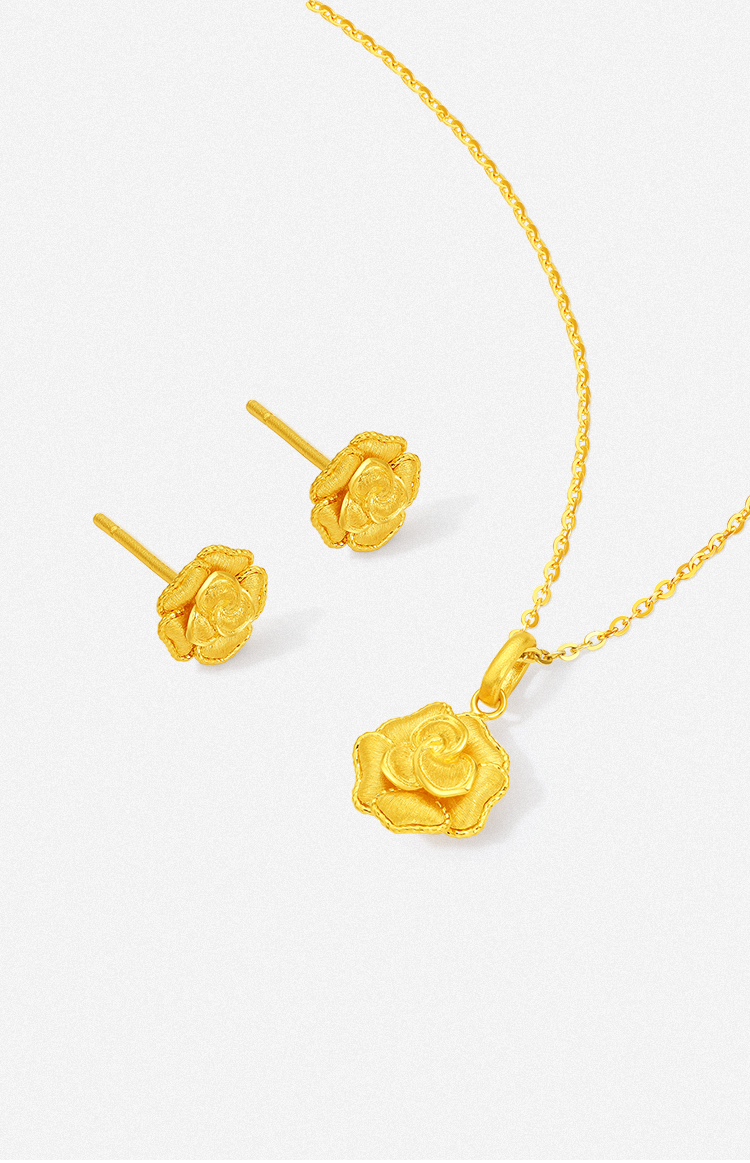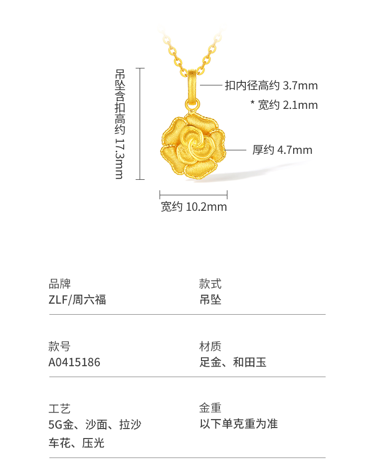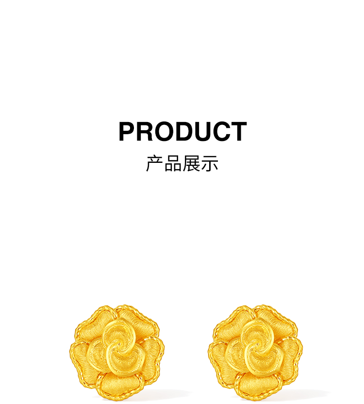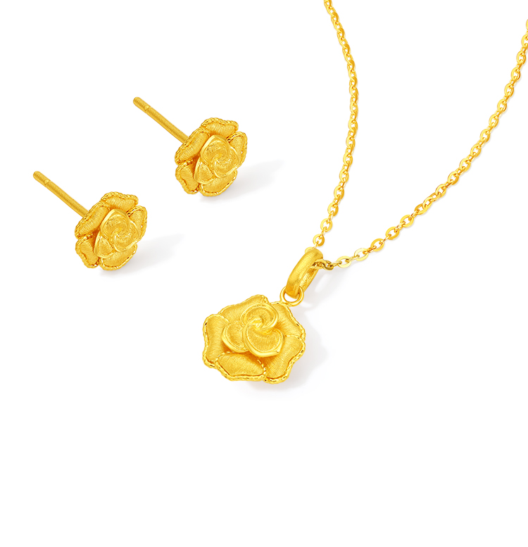 周六福黄金5G计价足金吊坠耳钉复古绽放丝绒玫瑰挂坠耳饰节日礼物