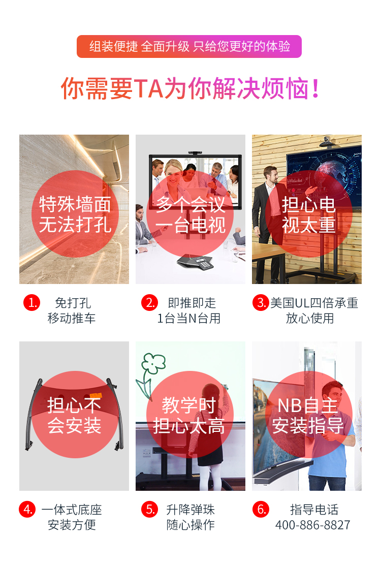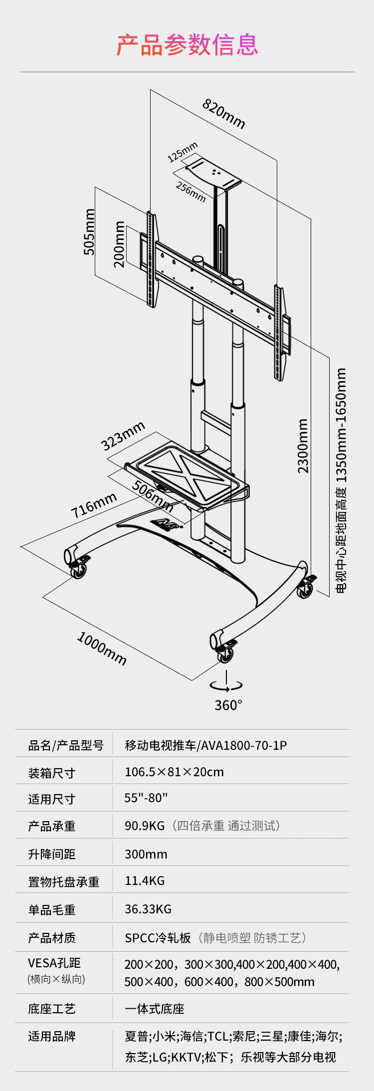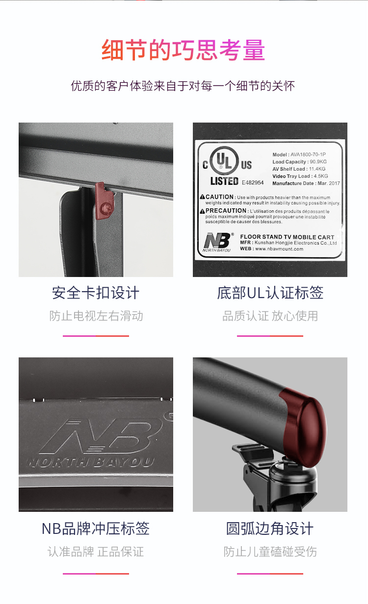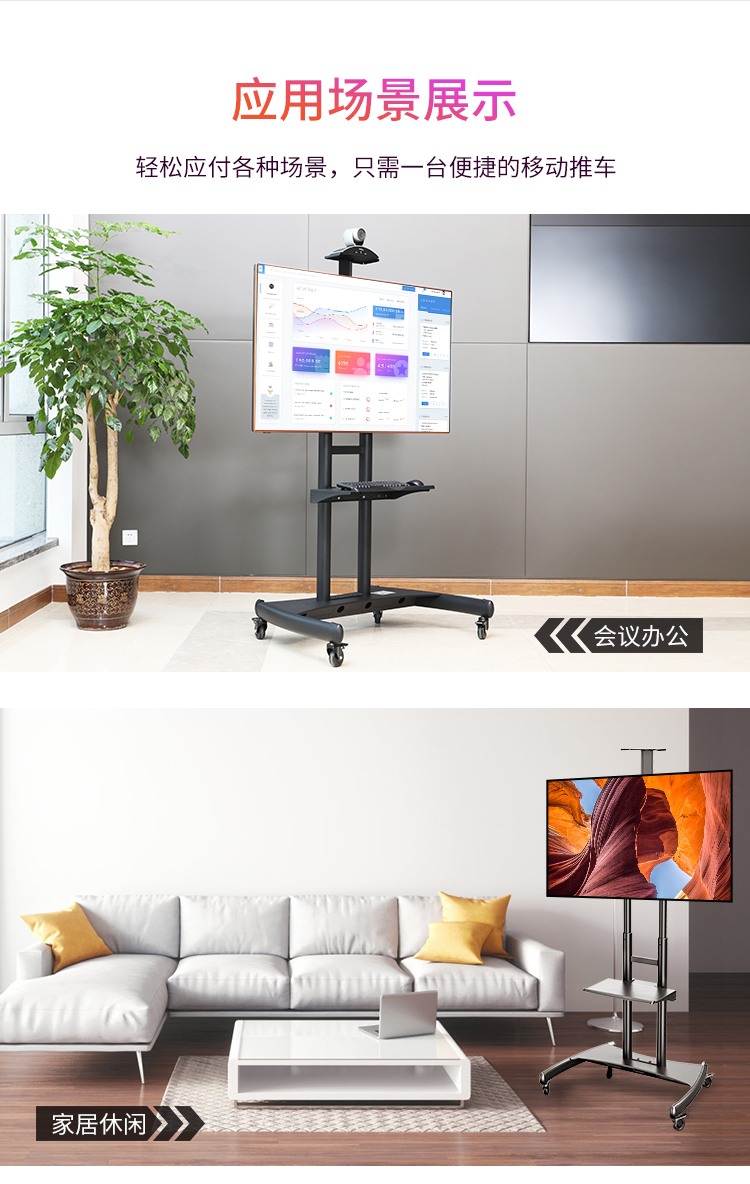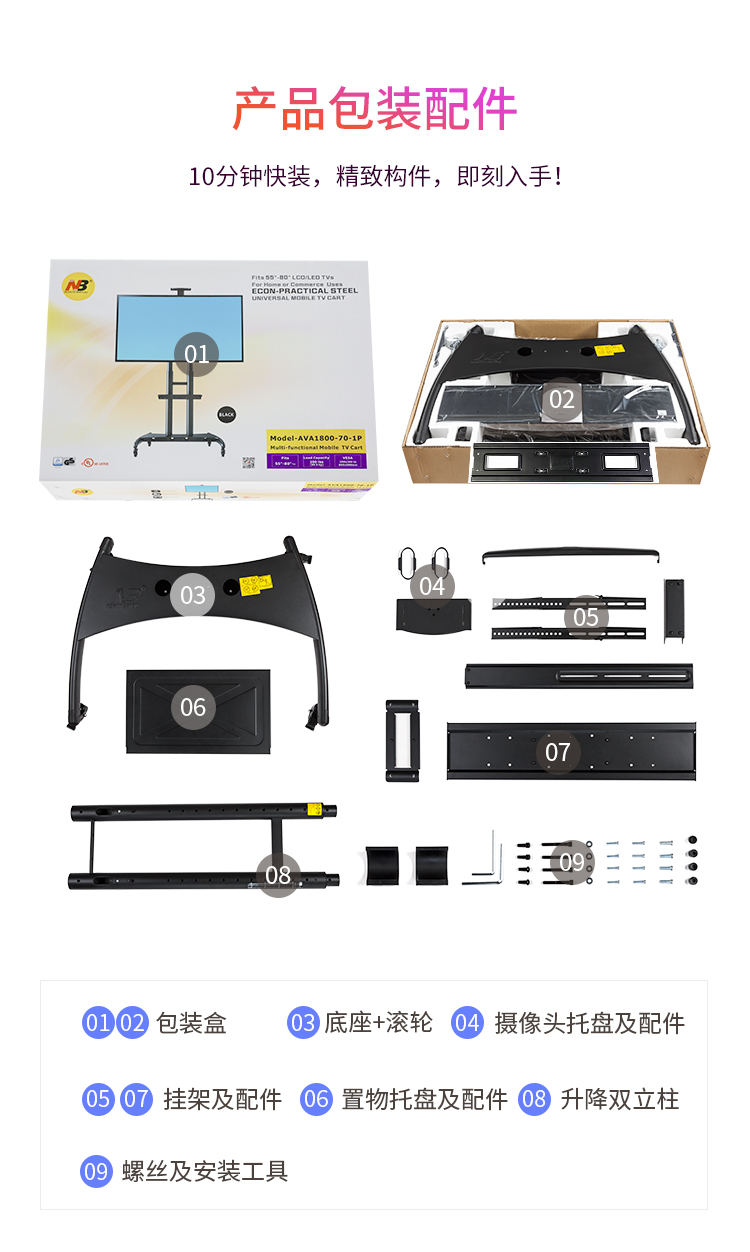 NB AVA1800-70-1P(55-80英寸)移动电视支架视频会议显示器移动推车通用落地电视挂架电视推车电视支架落地