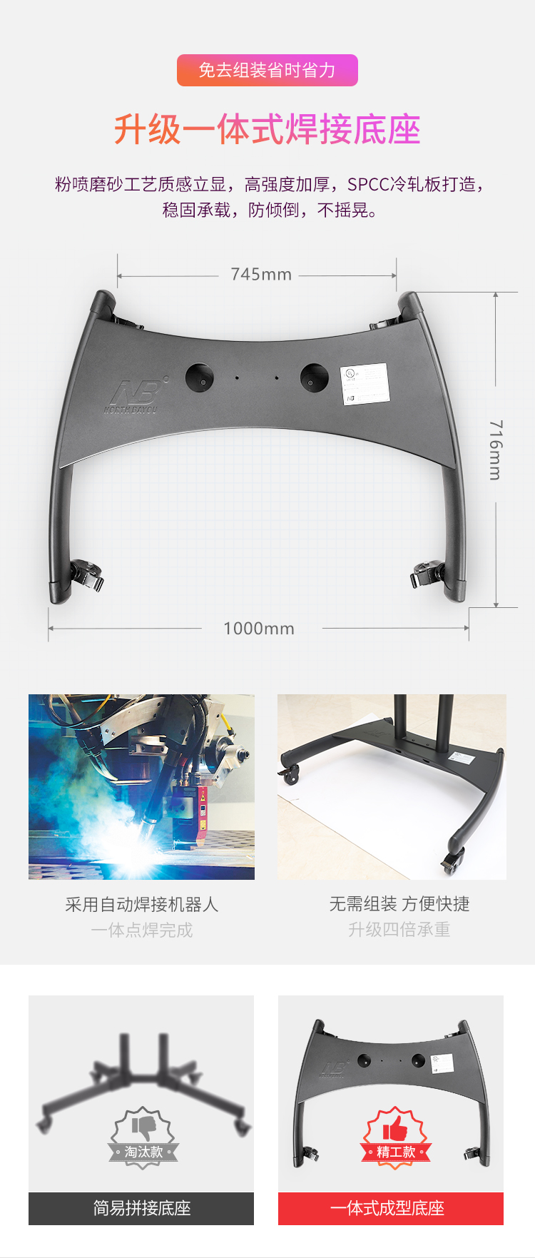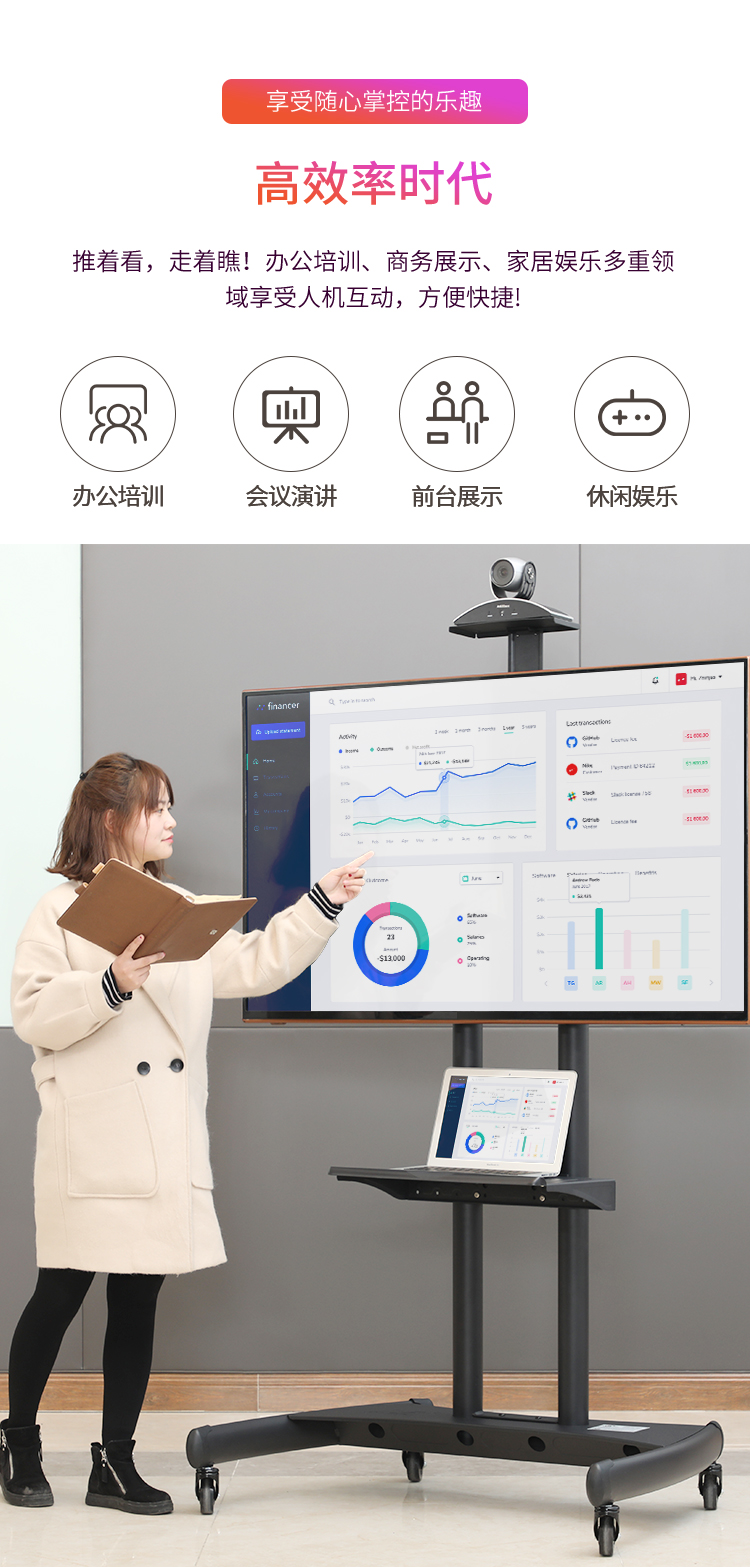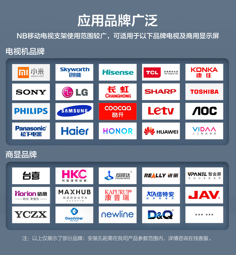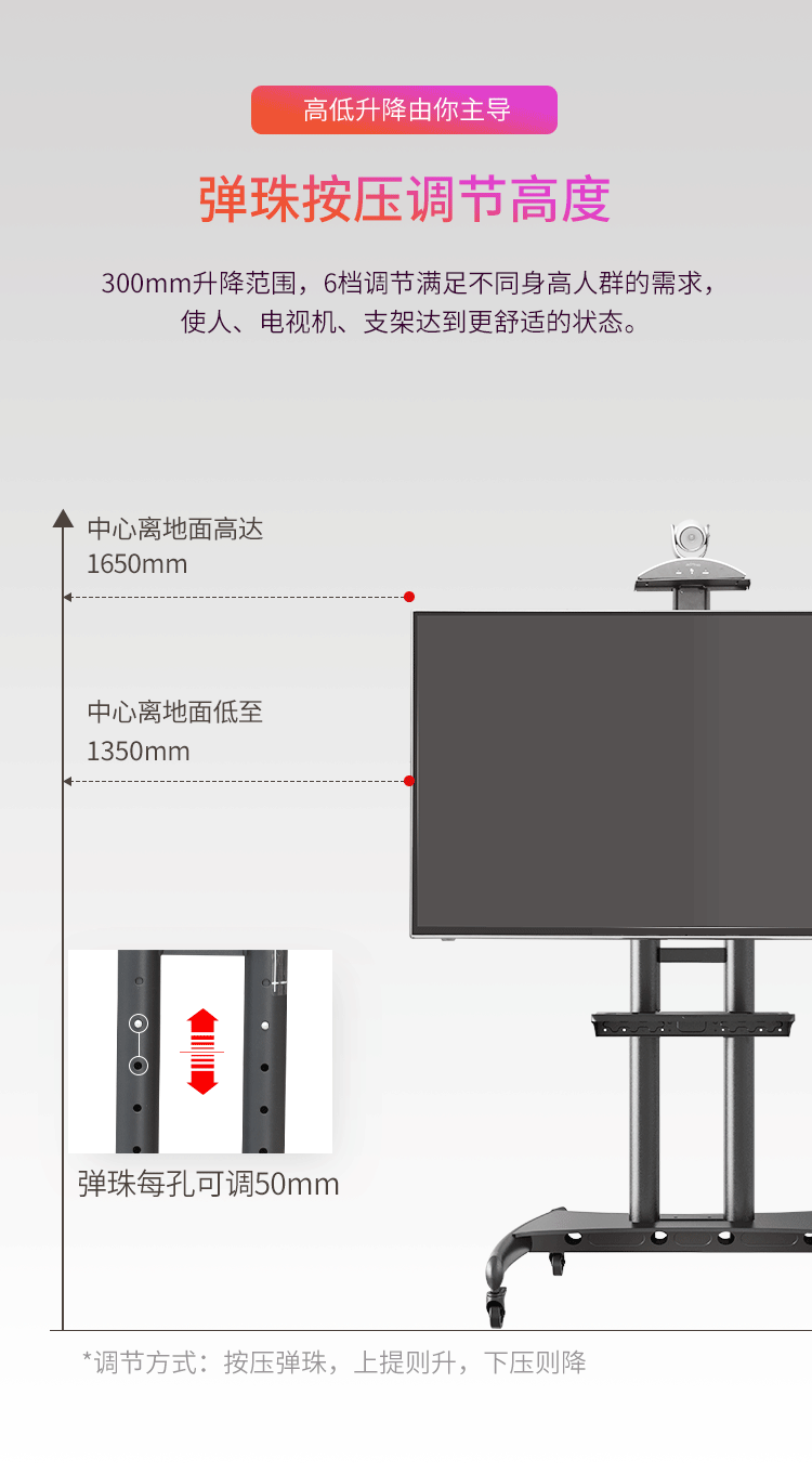 NB AVA1800-70-1P(55-80英寸)移动电视支架视频会议显示器移动推车通用落地电视挂架电视推车电视支架落地