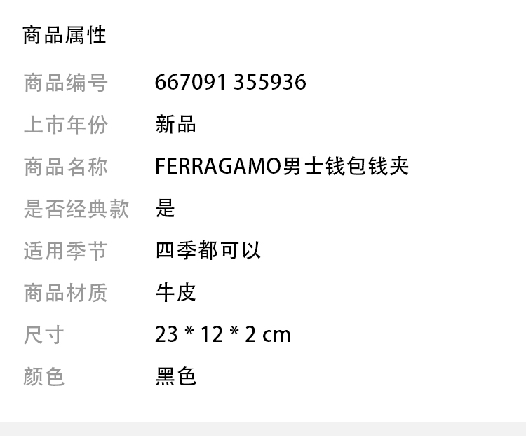 FERRAGAMO 菲拉格慕 票夹 黑色 66 7091 355936