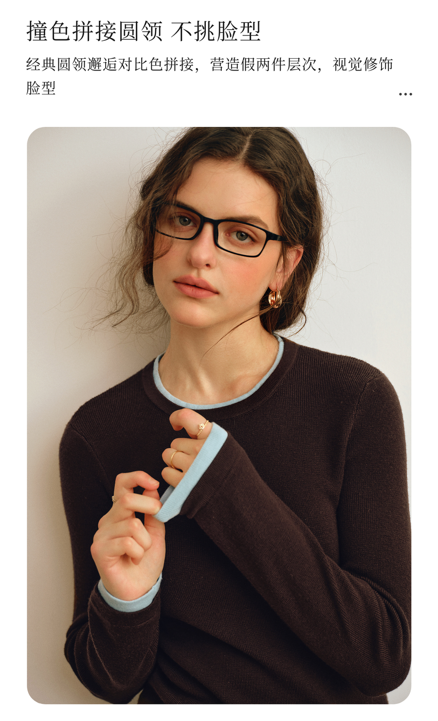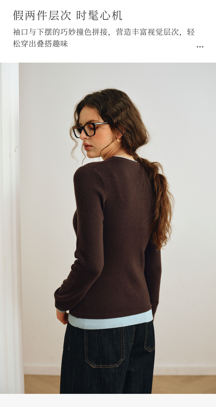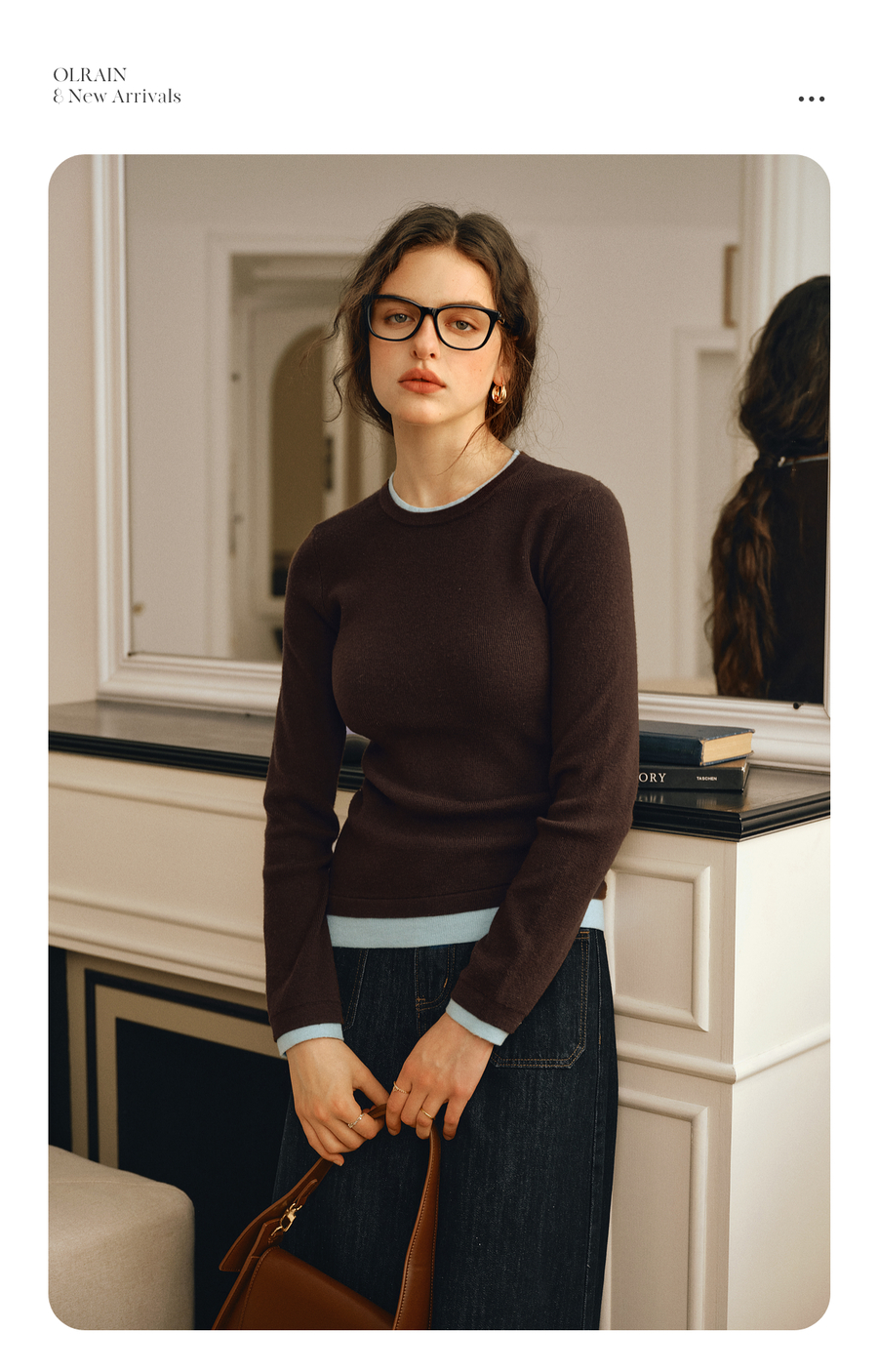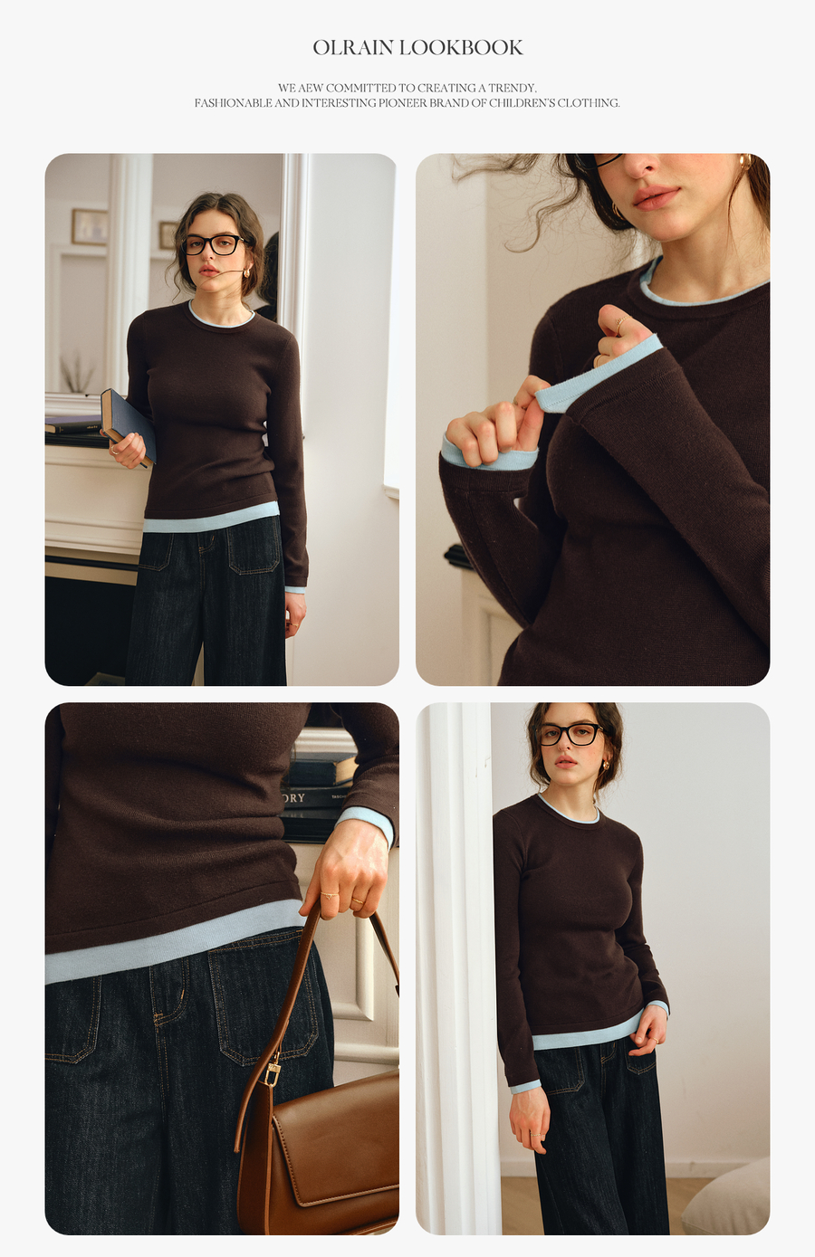 OLrain欧芮儿2025新款女秋季圆领拼接假两件毛针织套头衫长袖上衣