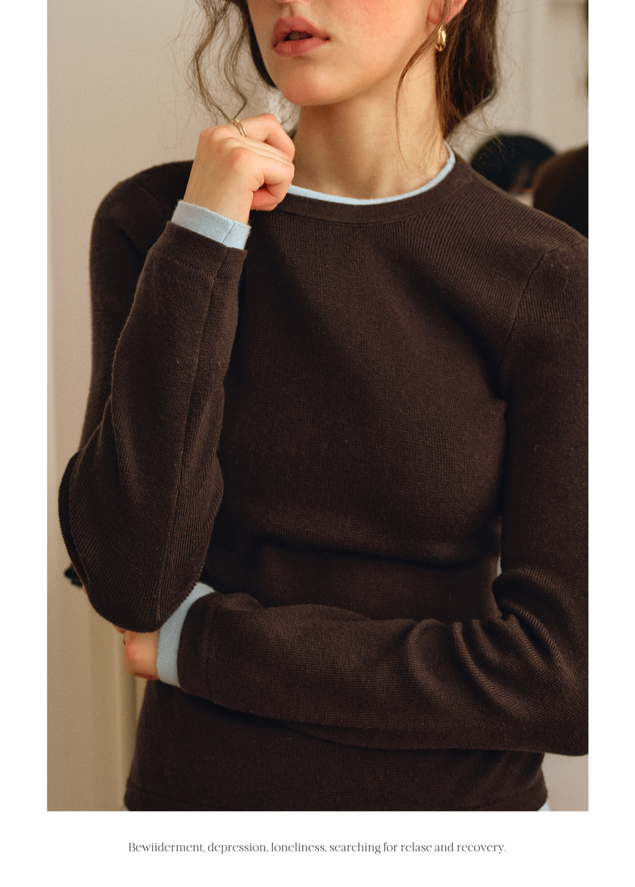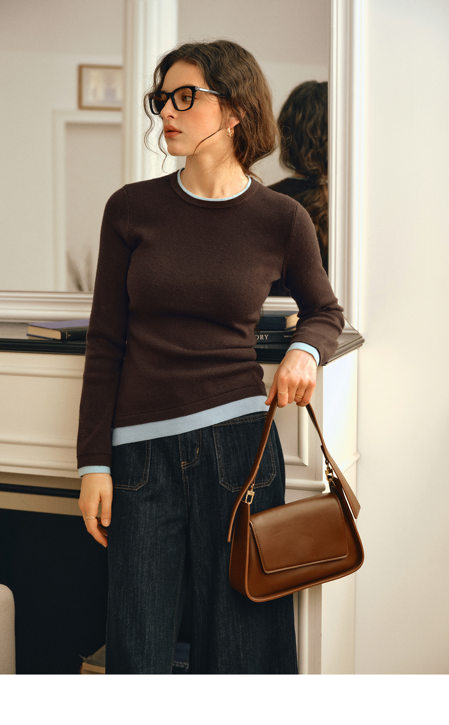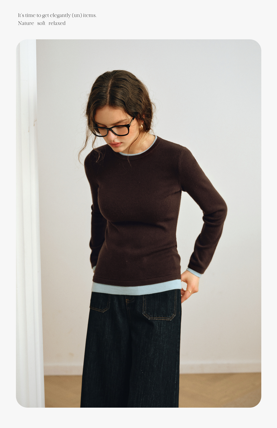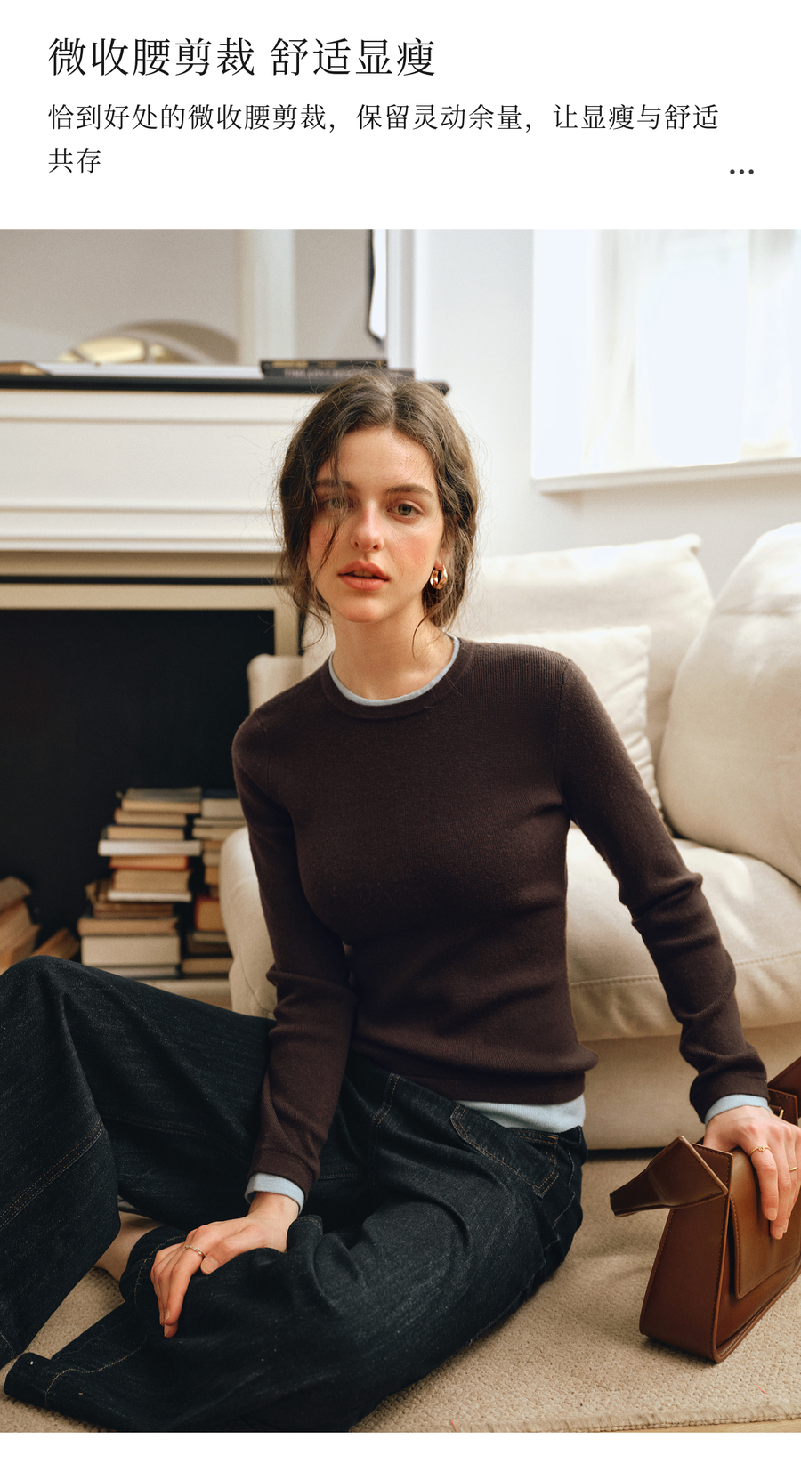 OLrain欧芮儿2025新款女秋季圆领拼接假两件毛针织套头衫长袖上衣