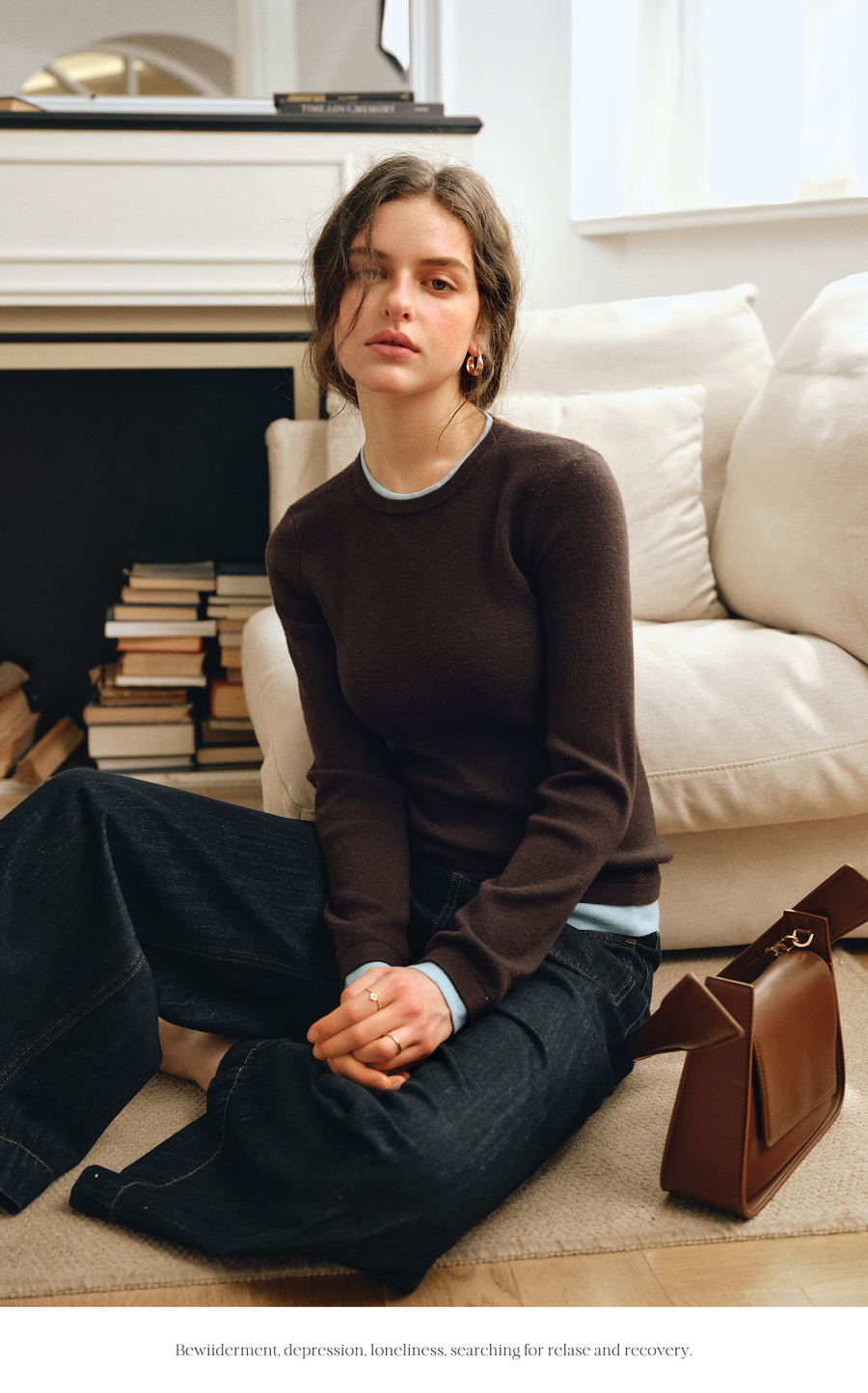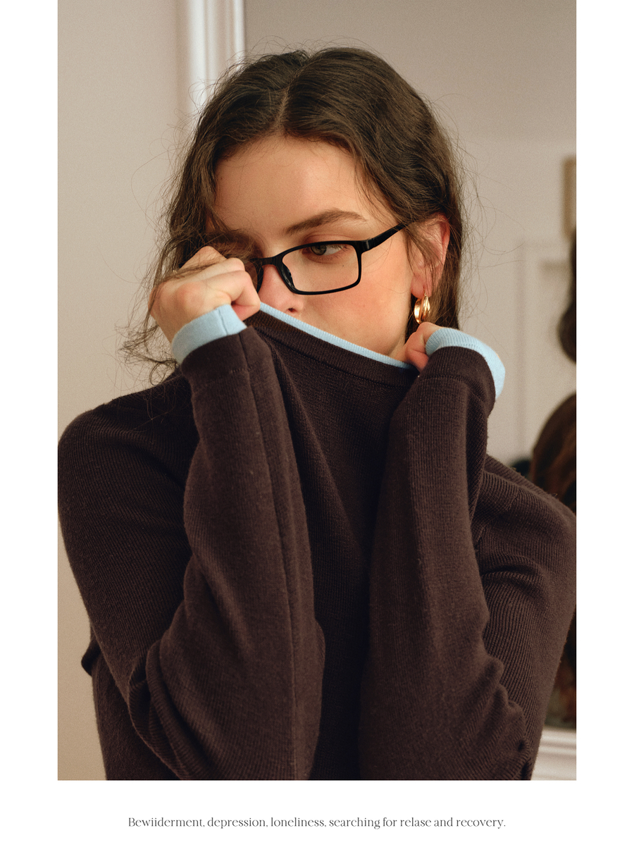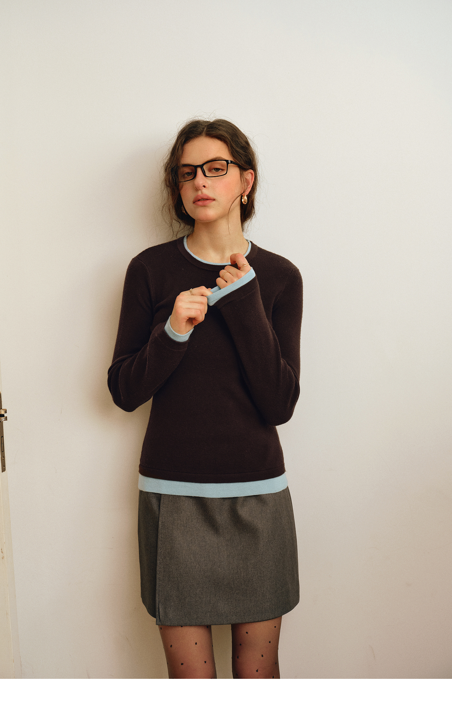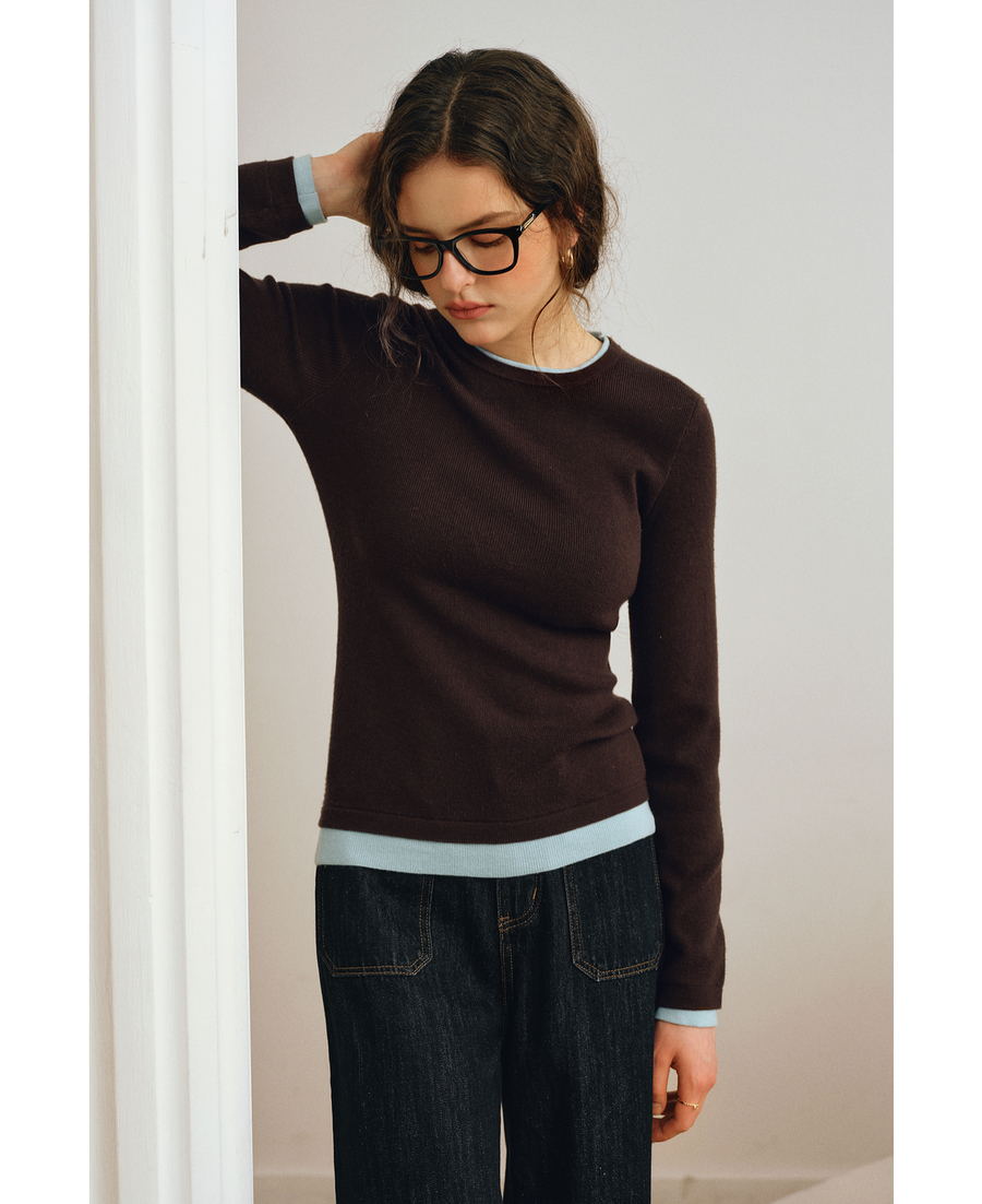 OLrain欧芮儿2025新款女秋季圆领拼接假两件毛针织套头衫长袖上衣
