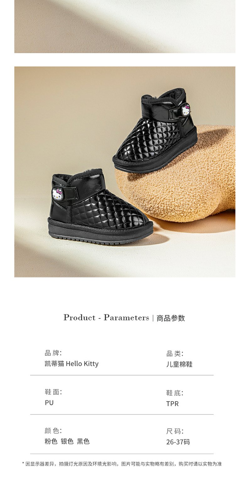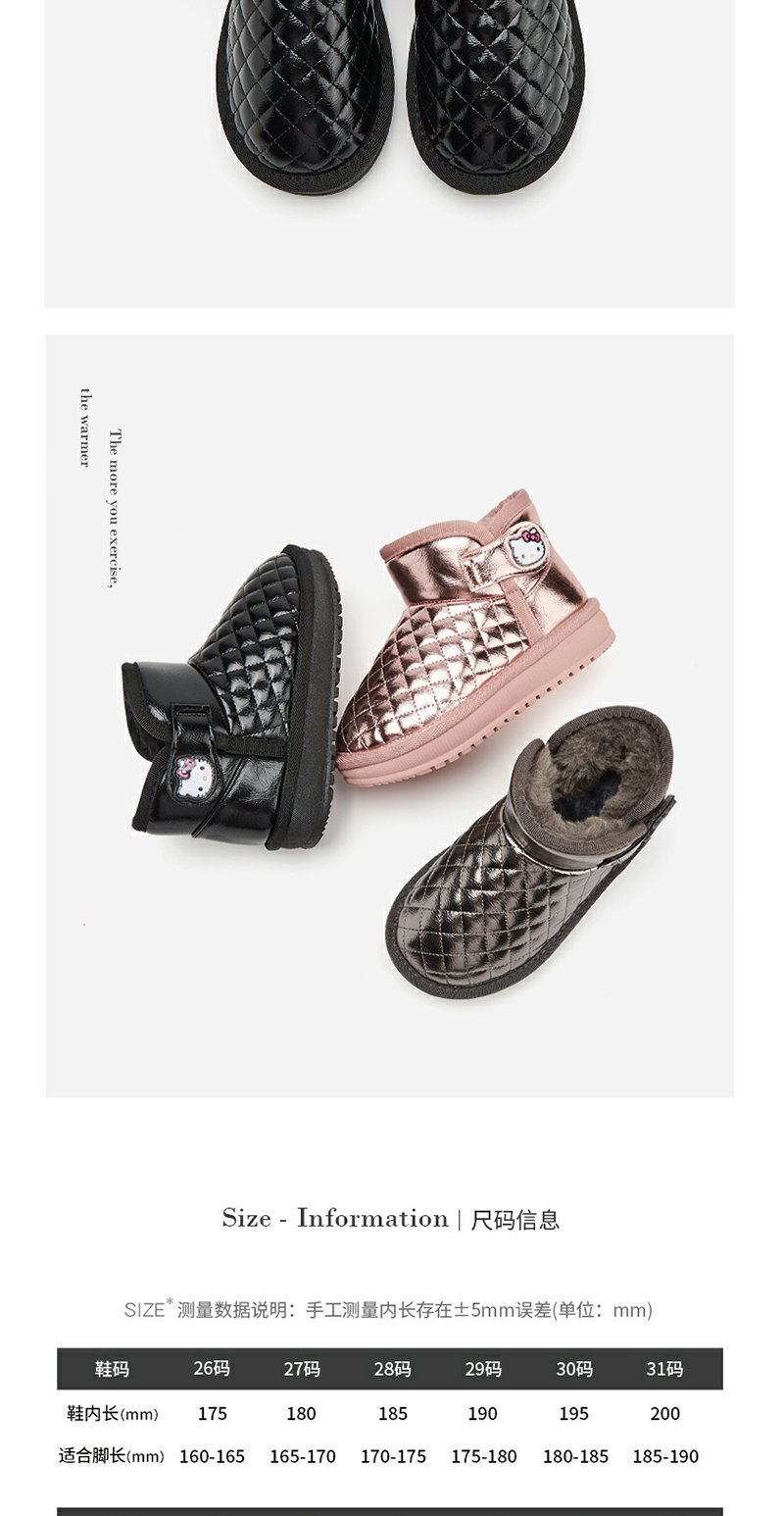 HelloKitty童鞋女童雪地靴加绒2023新款棉鞋冬季儿童棉靴保暖防滑