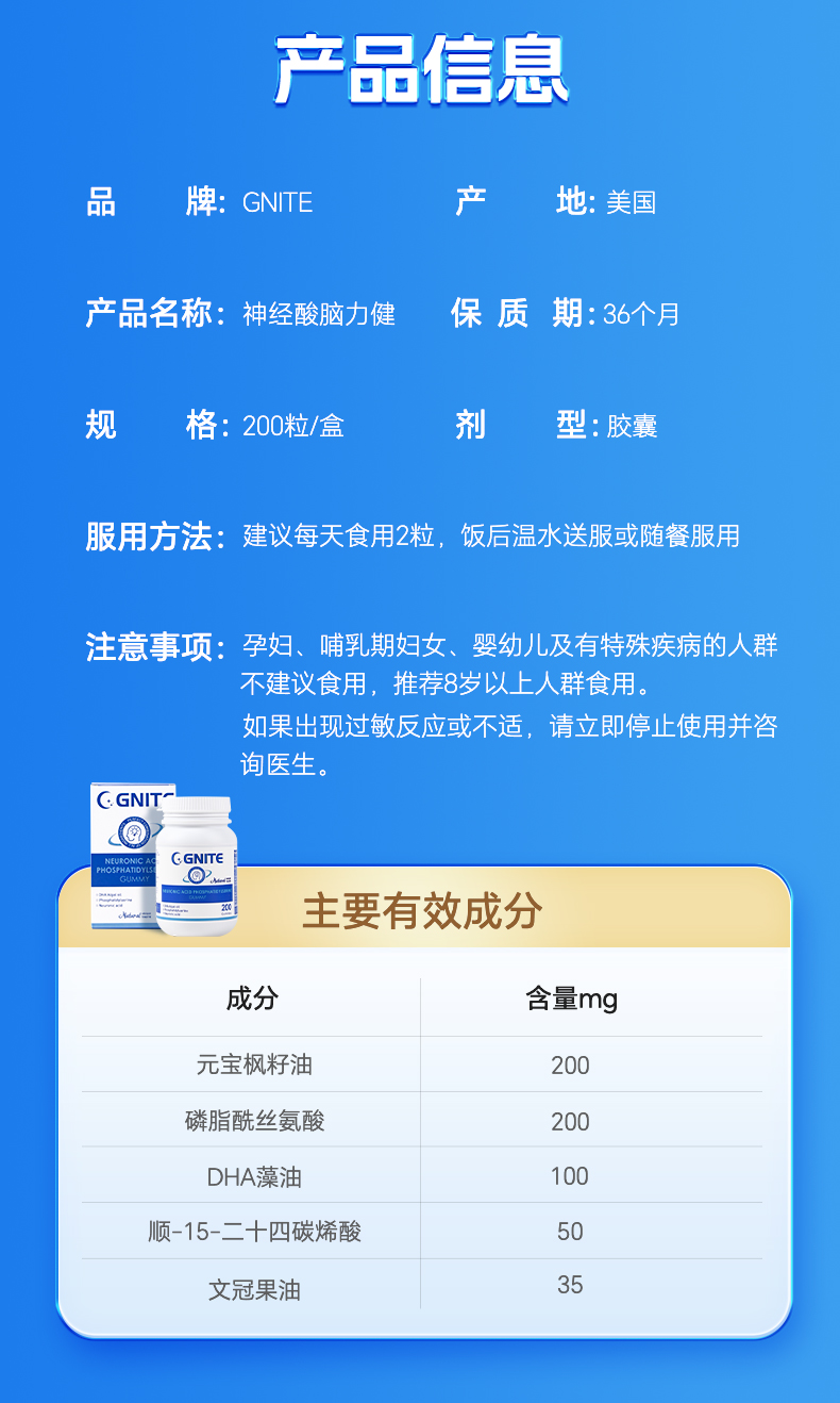 【多妈团购 GNITE神经酸脑力健一盒200粒】睡眠不好必吃 - 康斯利