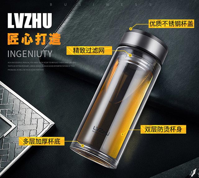 绿珠lvzhu 玻璃杯双层500ml 创意便携商务男女士大容量 茶水分离过滤办公泡茶水杯子B680