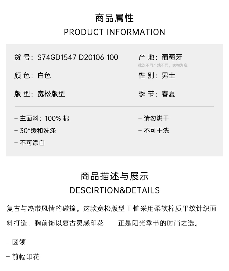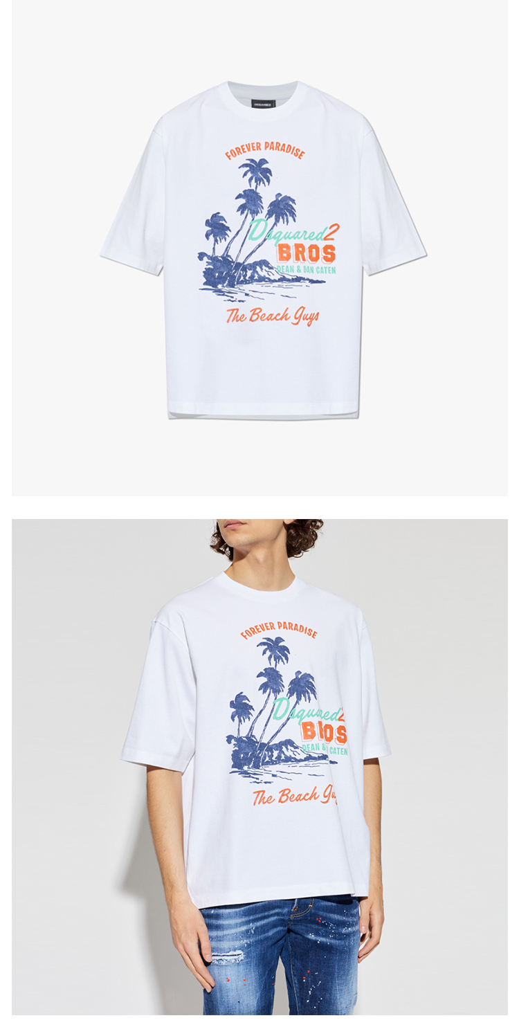 DSQUARED2 男士复古风格图案印花棉质圆领短袖宽松T恤 白色 S74GD1547 D20106 100