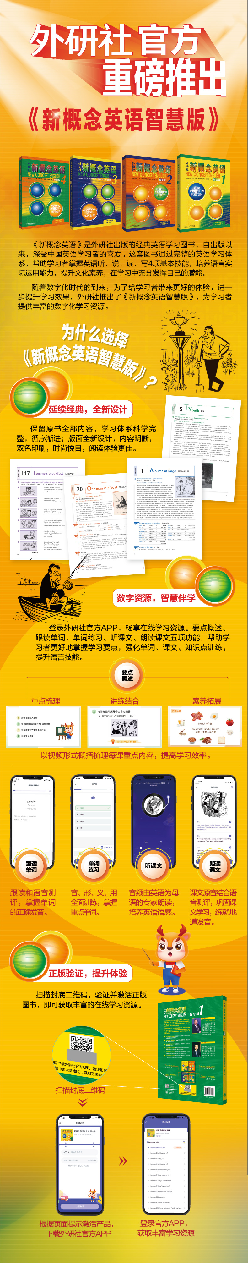 《新概念英语智慧版》在保留《新概念英语》全部内容的基础上,提供更加丰富的数字化资源和适用各种学习情景的在线学习功能,为读者带来智慧化学习体验,满足多种学习需求,助力学习效果提升。