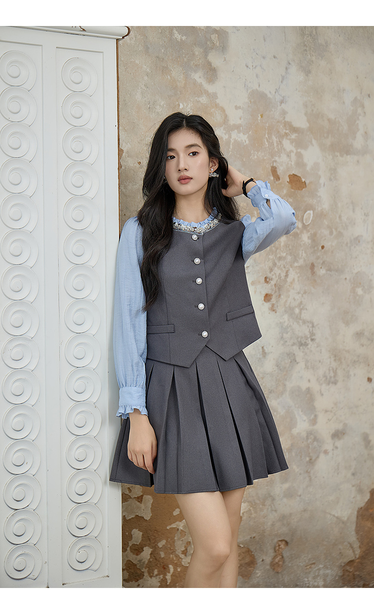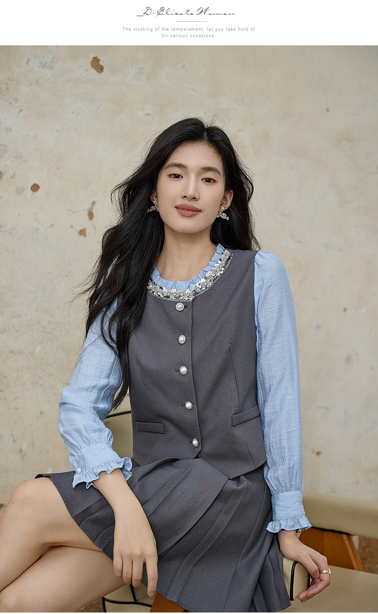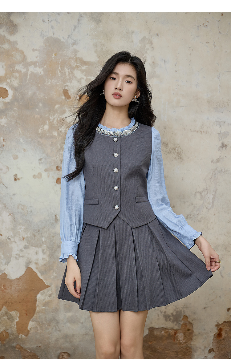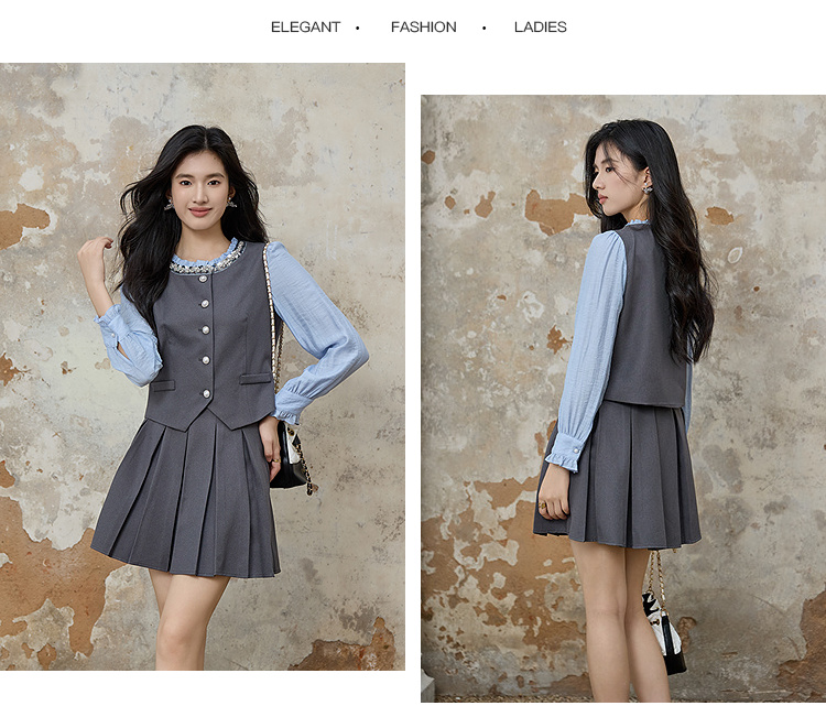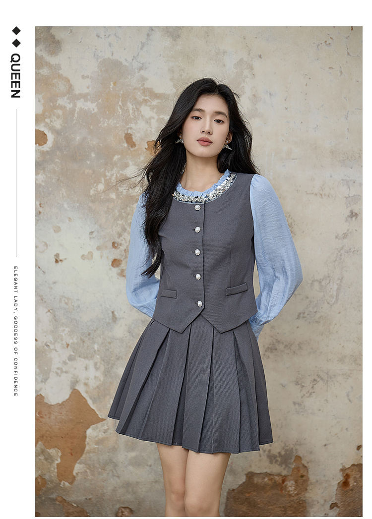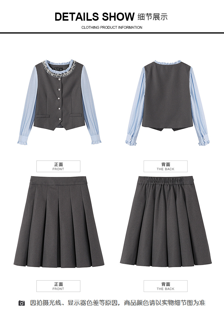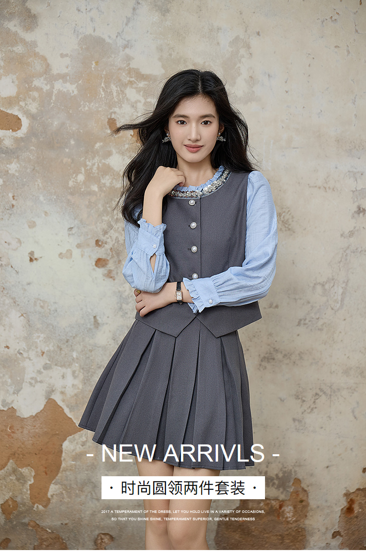奢姿大码女装2025秋季时尚撞色百褶裙套装胖妹妹气质减龄两件套9953994216