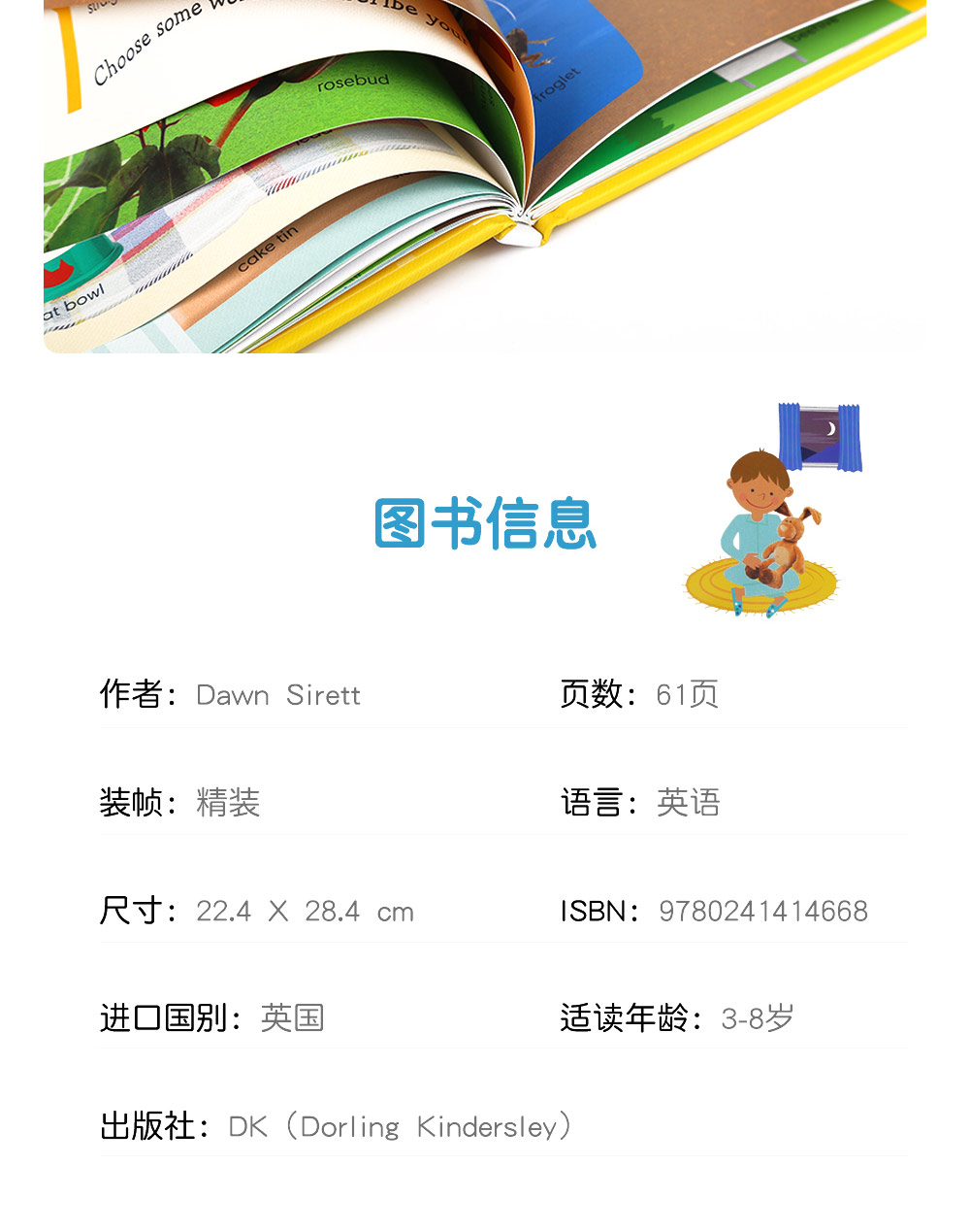 【英语原版】小彼恩点读书 DK1000个英语常用词词典 1000 Useful Words 图解英语单词原版绘本 毛毛虫点读笔配套书 (不带笔)