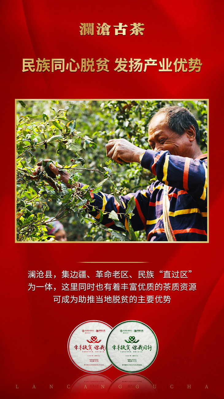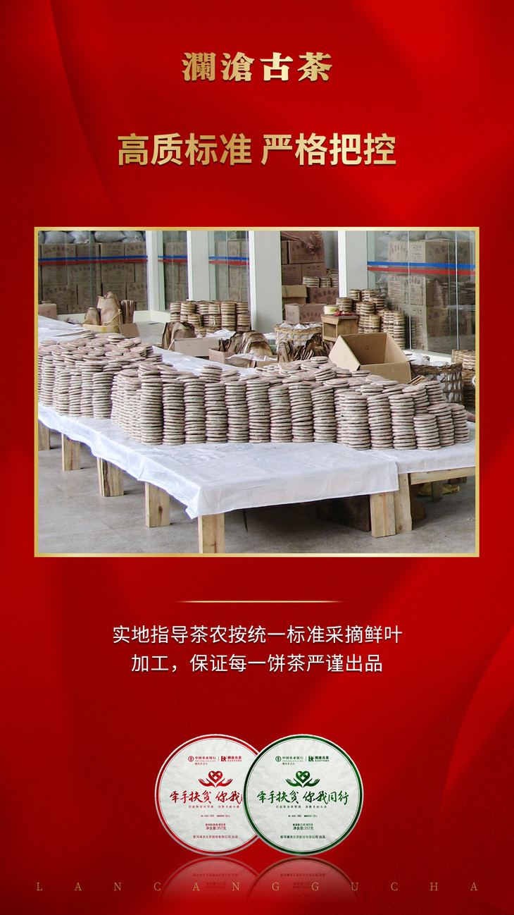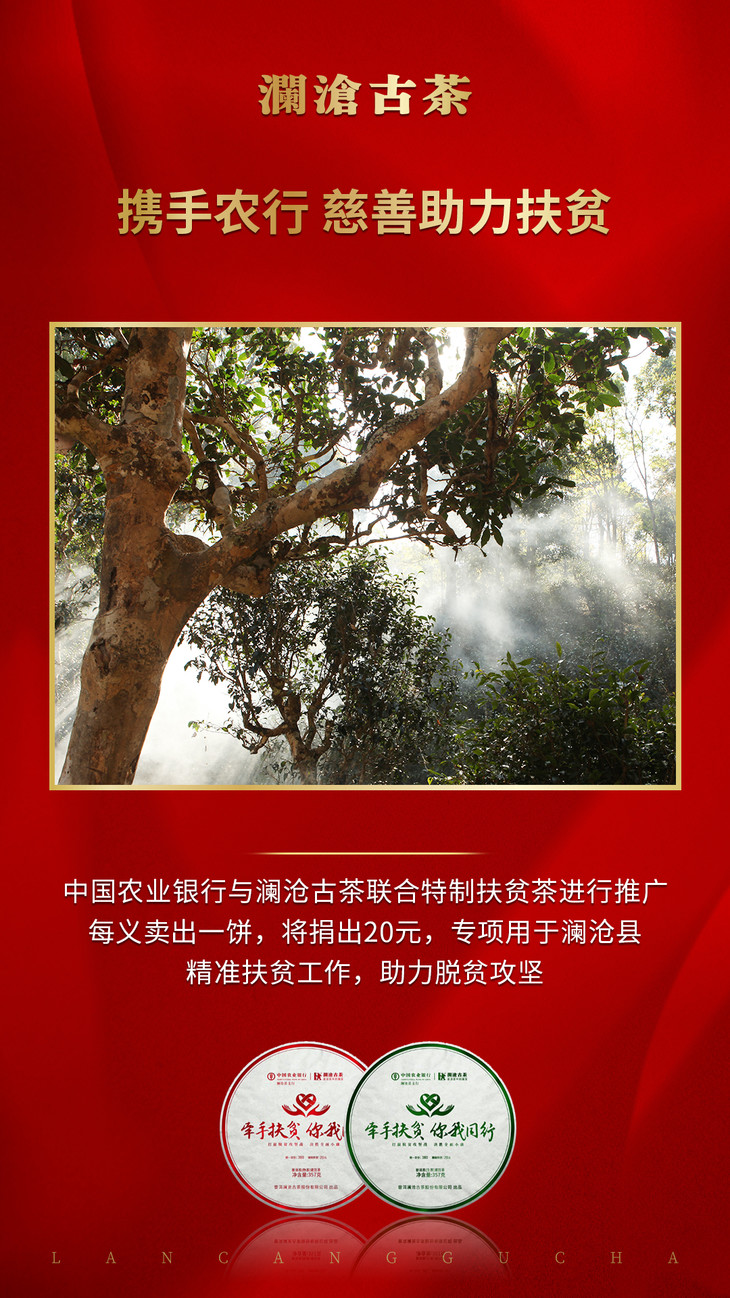 澜沧古茶2020年农行联合 “牵手扶贫 你我同行”牵手号扶贫茶普洱茶熟茶357g/片