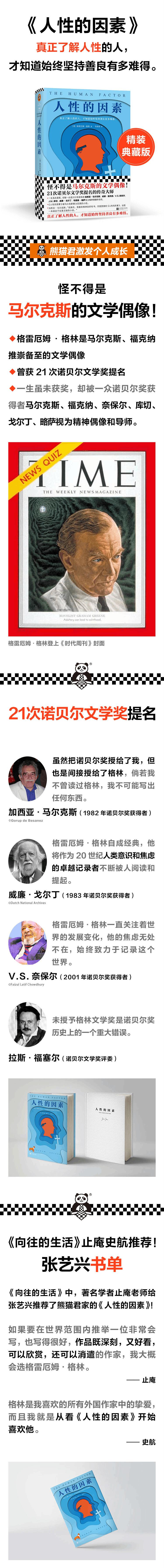 ◆马尔克斯:说真的,我喜欢格林的所有书,但我更喜欢《人性的因素》,这是一本接近于无缺的小说。