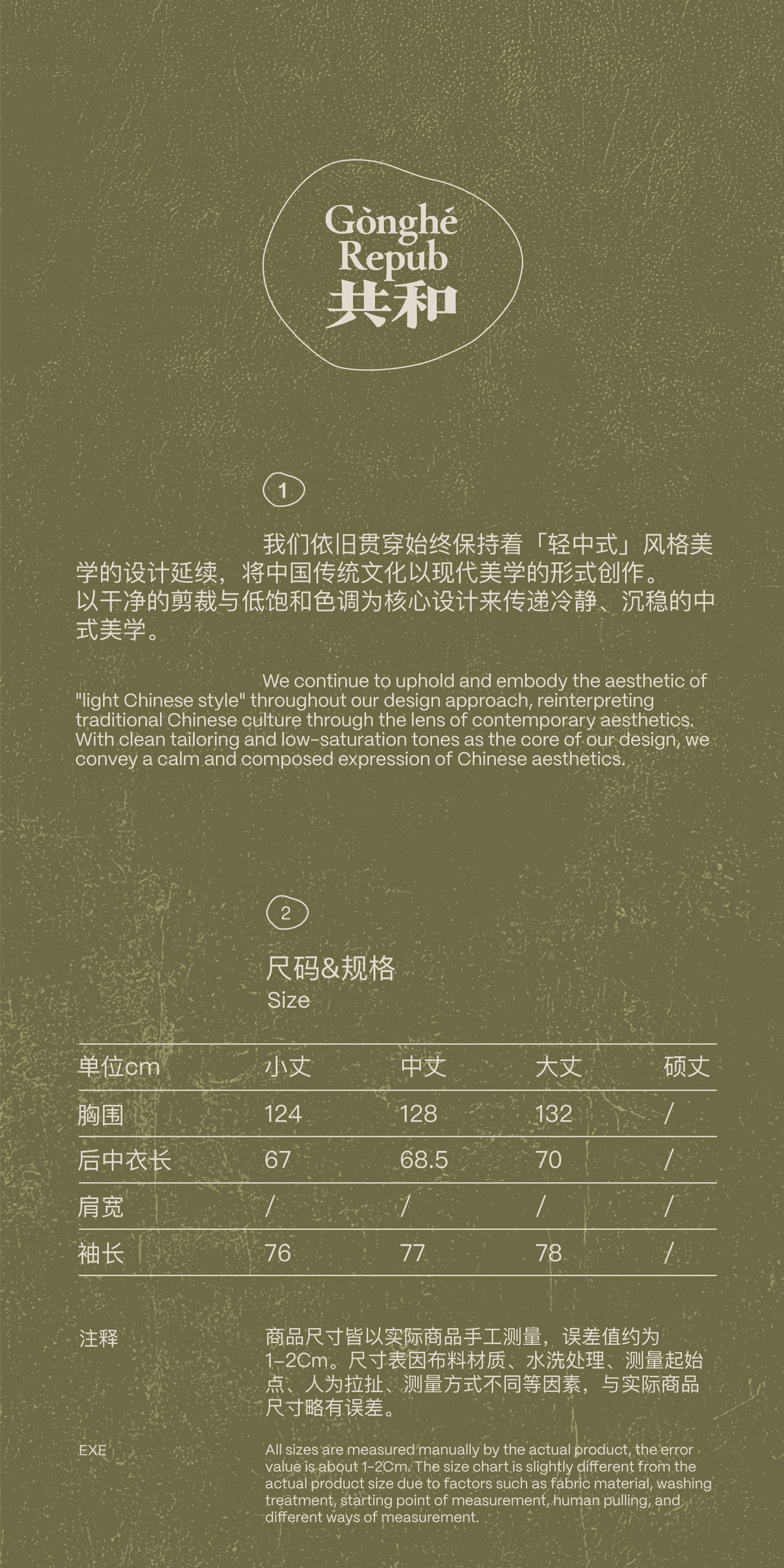 共和GongheRepub/GH24050/「白胡椒」磨毛短宽夹克