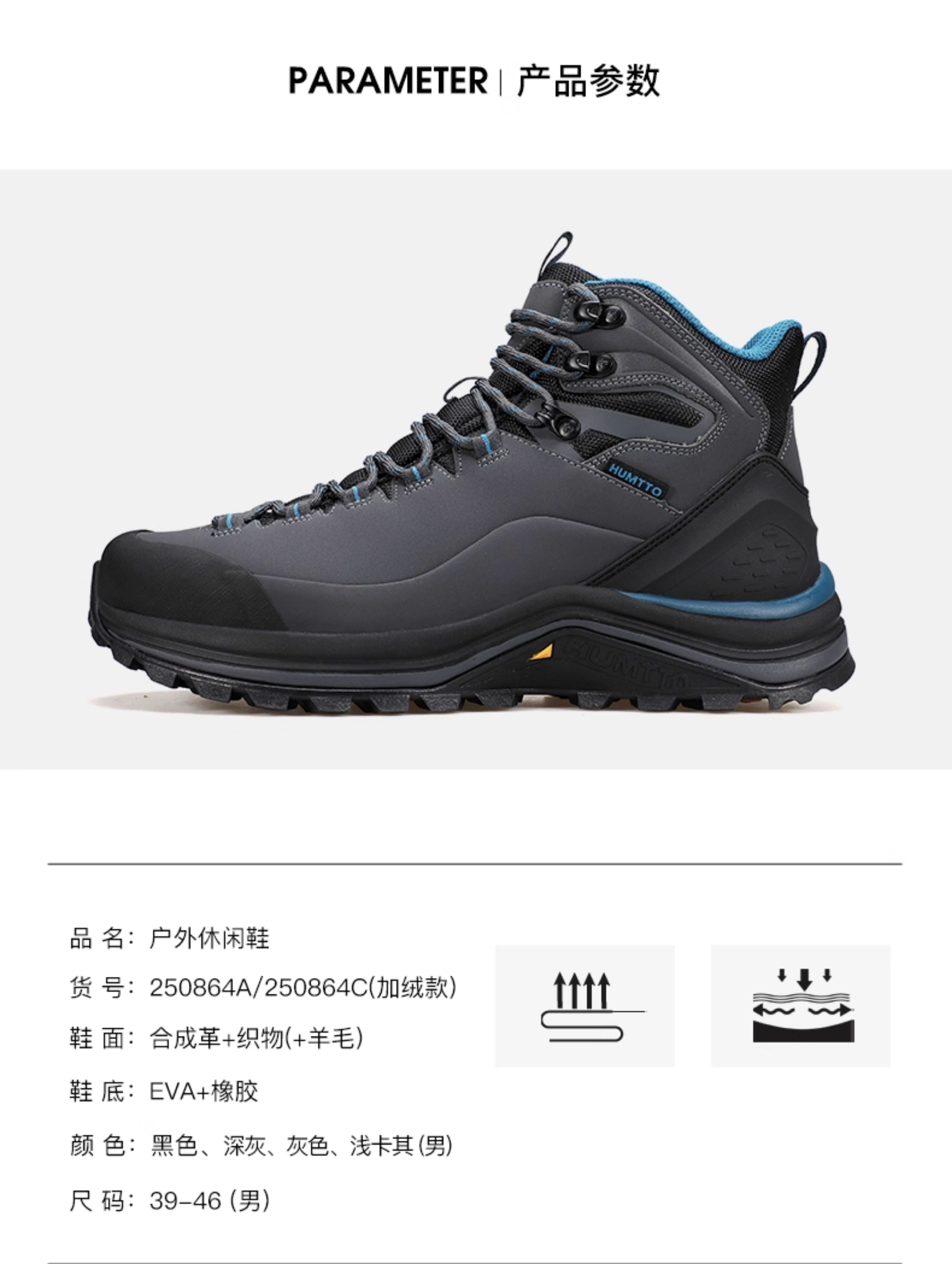 【199到手!】悍途户外登山鞋男秋冬减震耐磨防滑快反机能硬核越野爬山徒步鞋男250864A