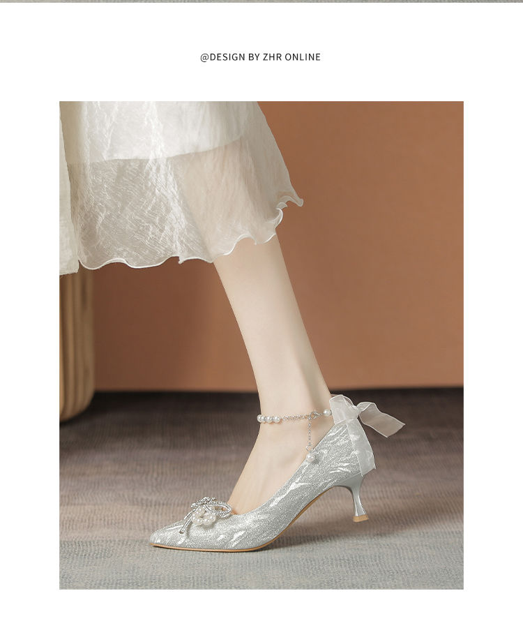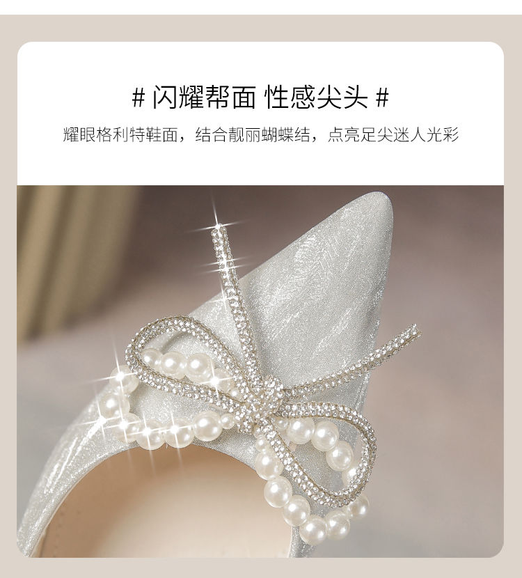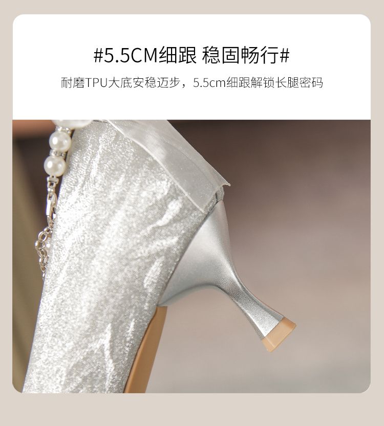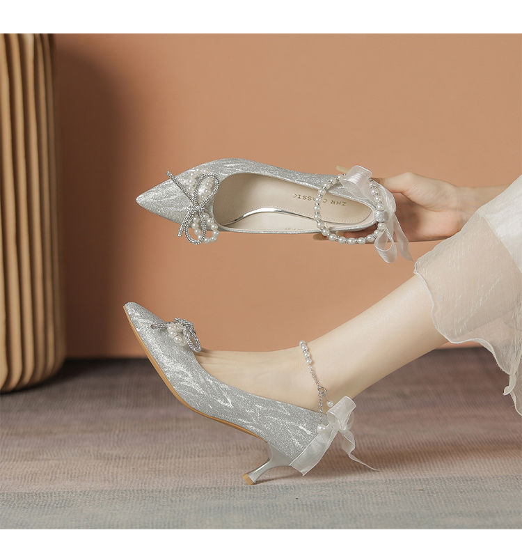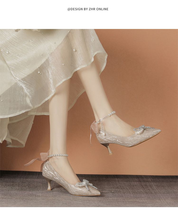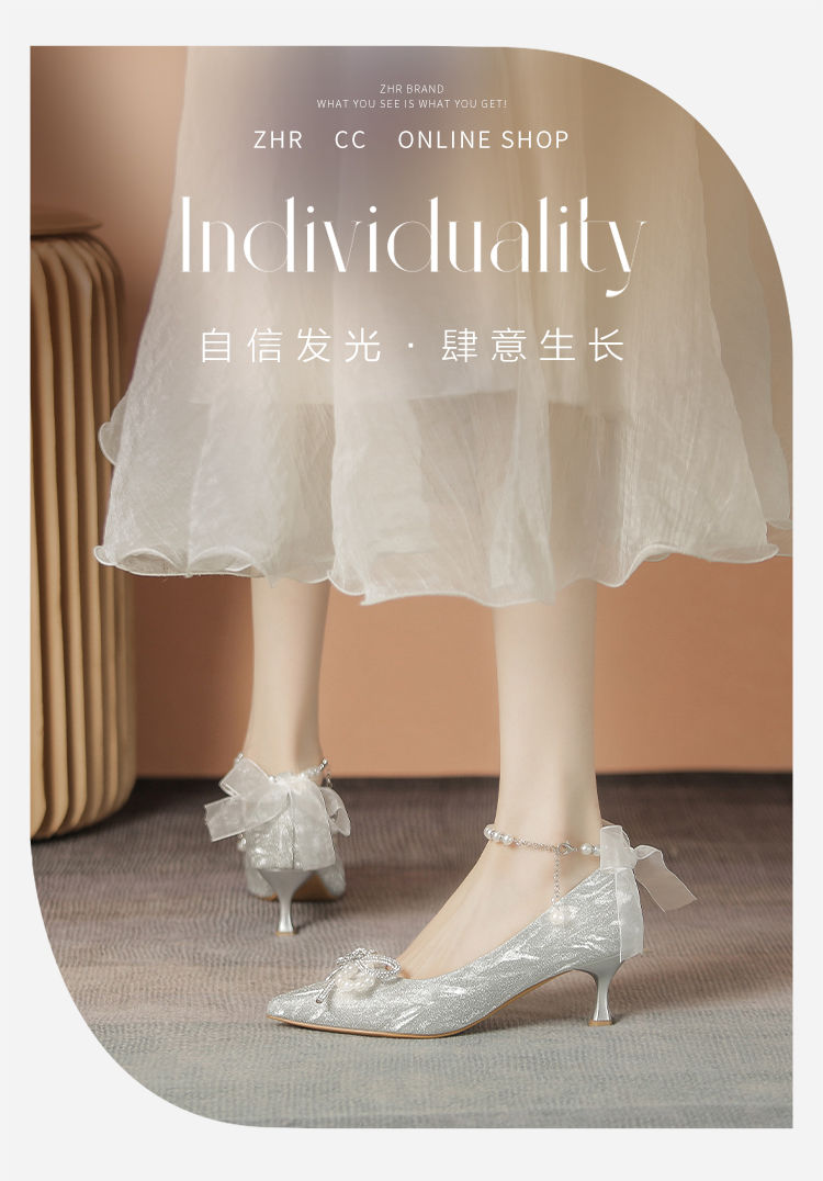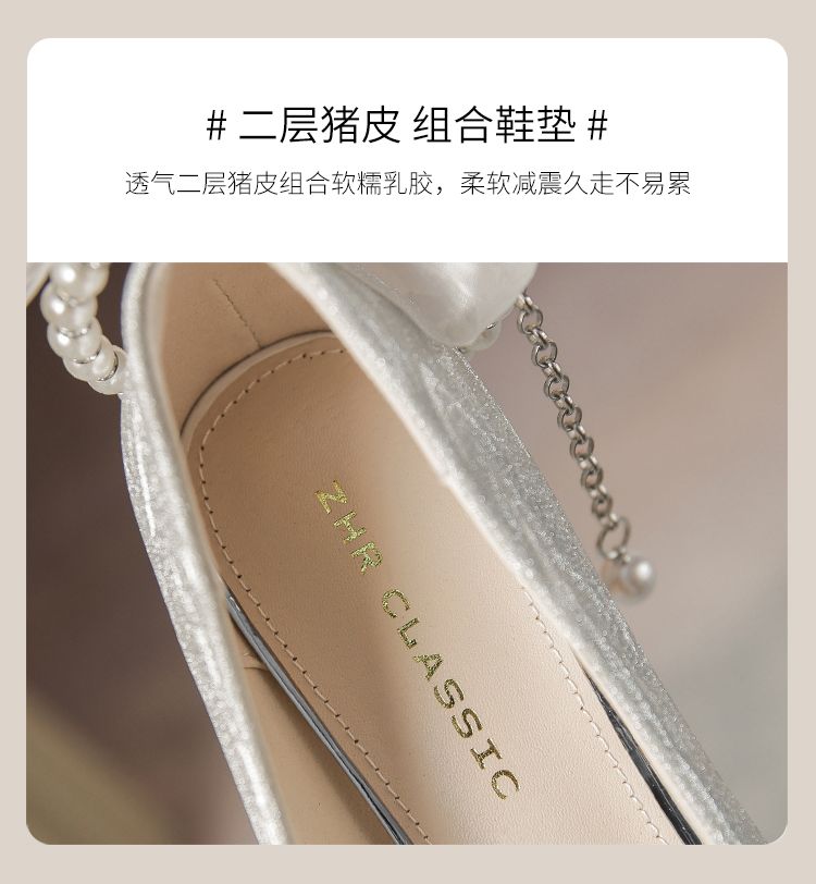 ZHR则则浅口单鞋女2024新款时尚百搭女鞋细跟高级婚礼鞋子伴娘鞋