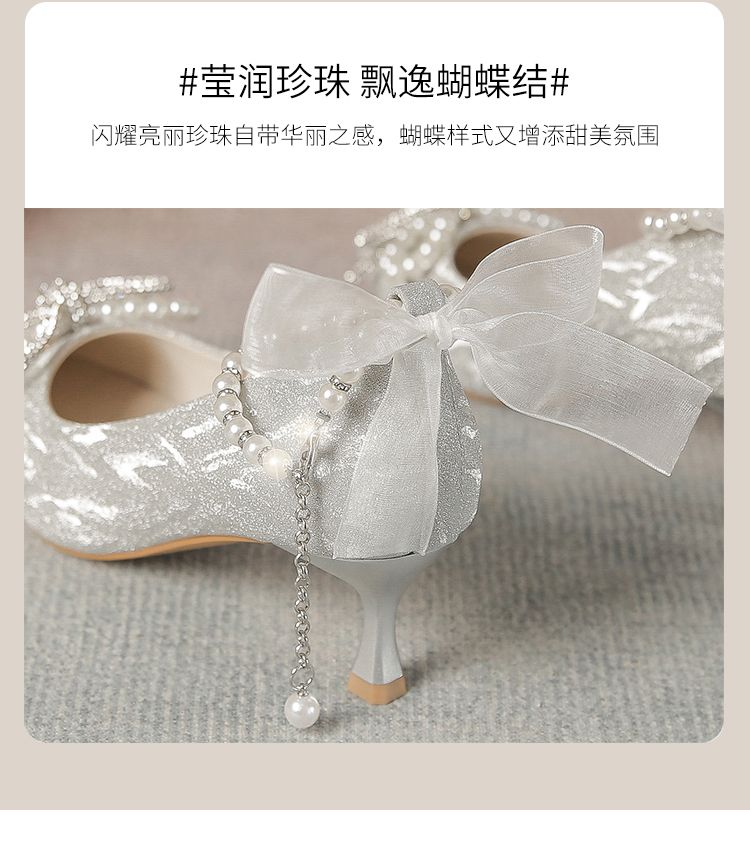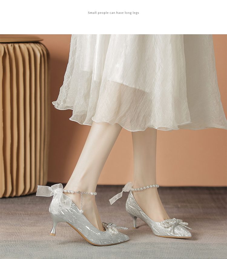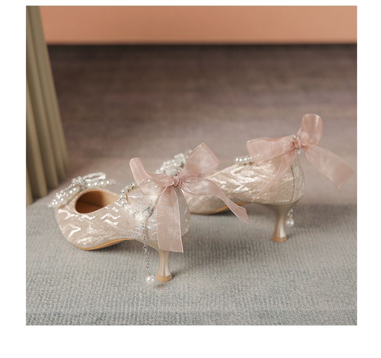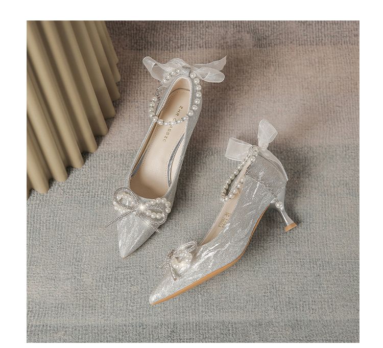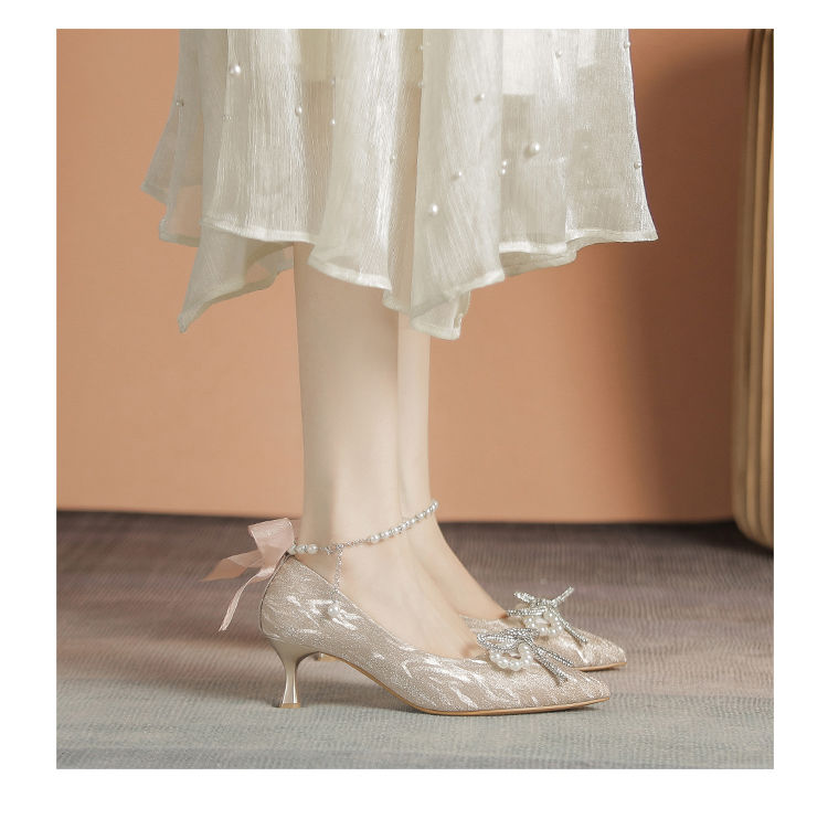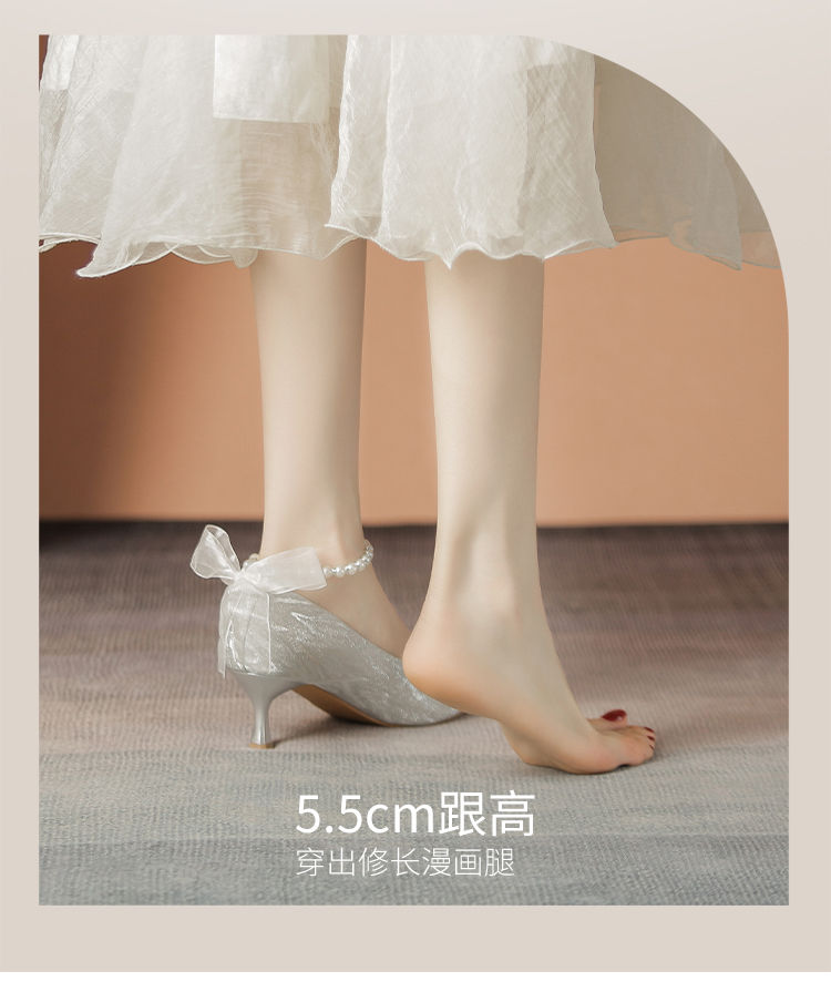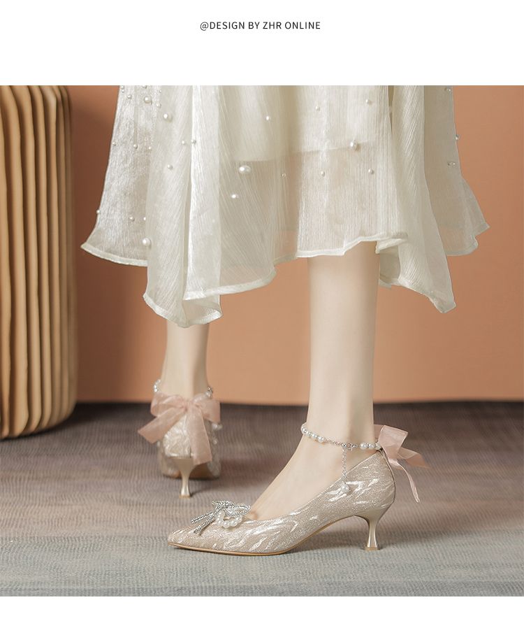 ZHR则则浅口单鞋女2024新款时尚百搭女鞋细跟高级婚礼鞋子伴娘鞋