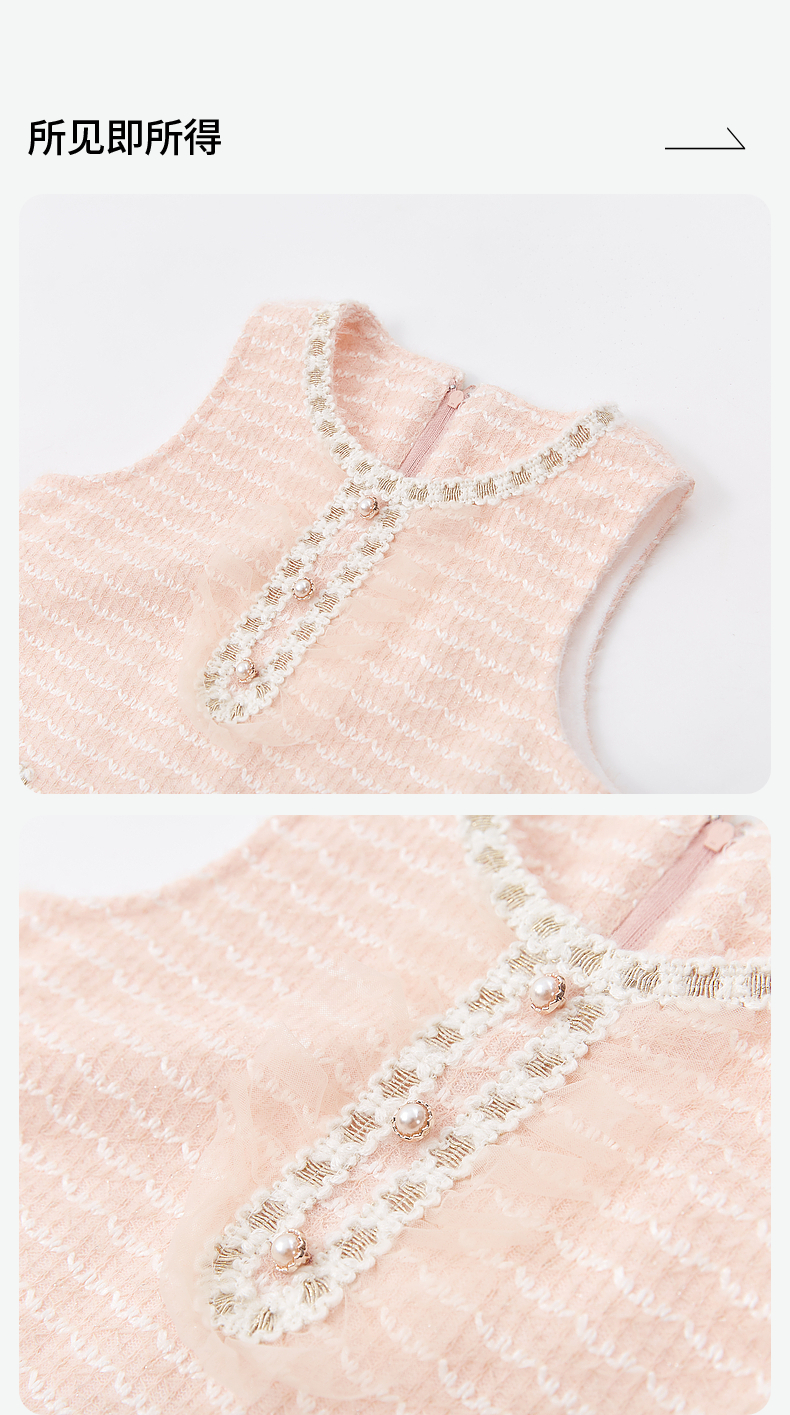 笛莎Deesha 童装女童连衣裙2024冬季新款儿童甜美香风背心裙