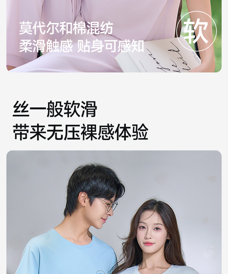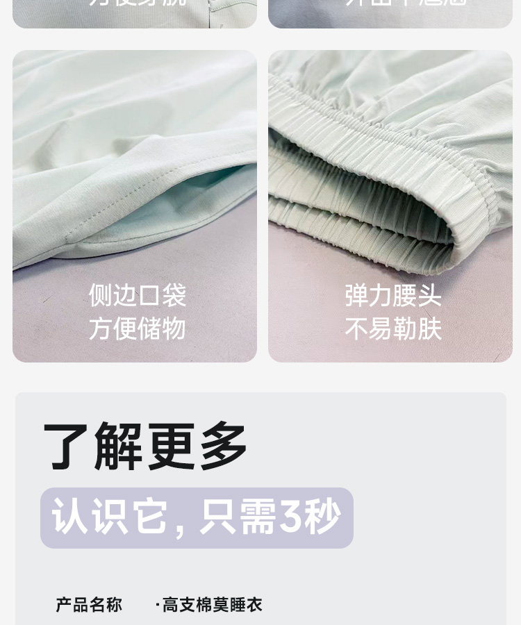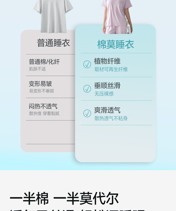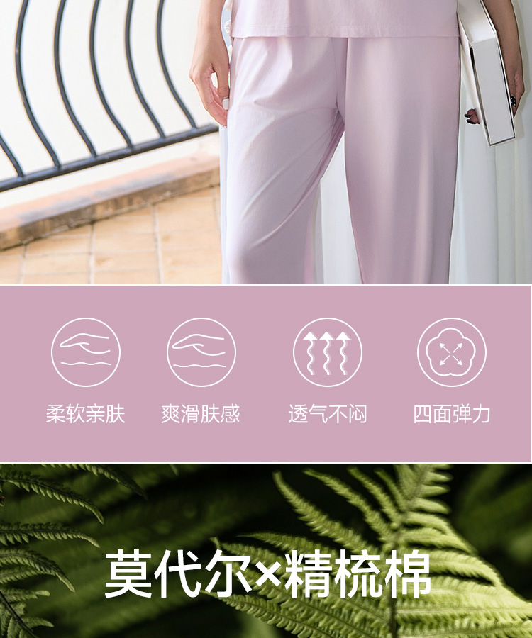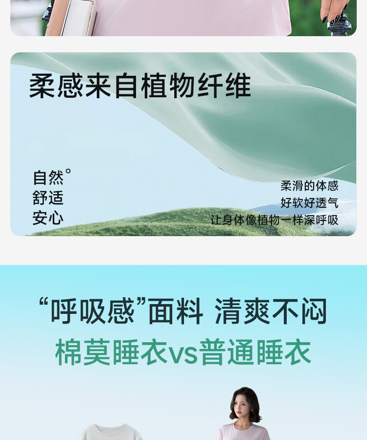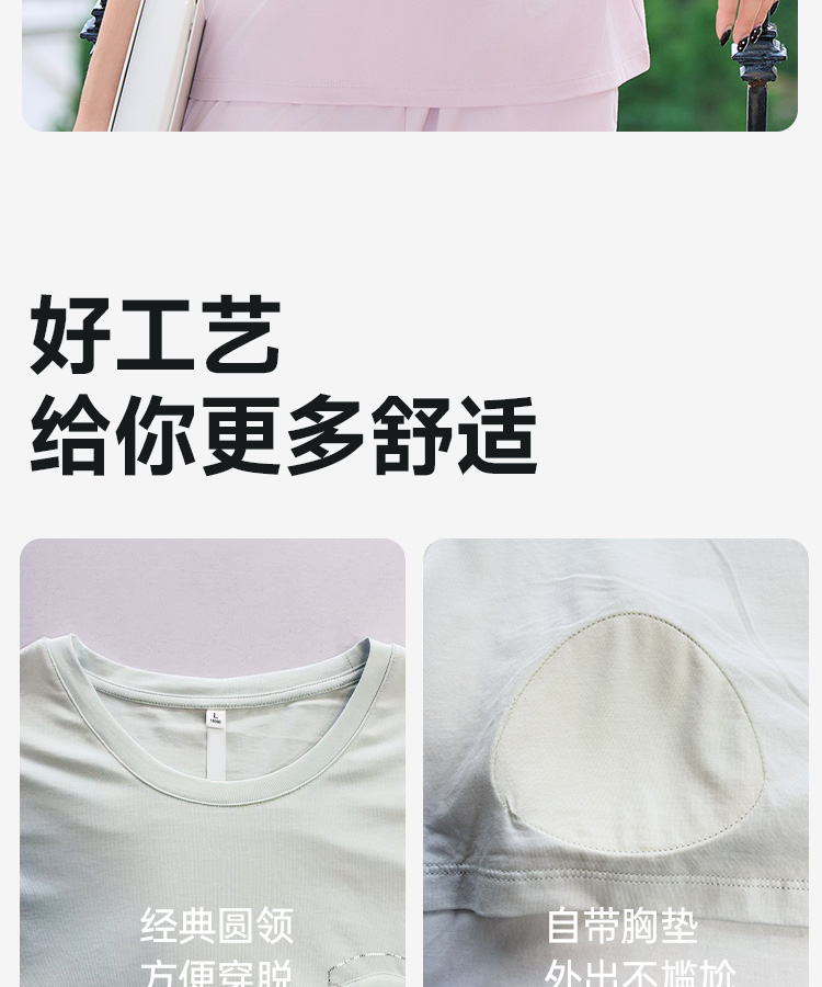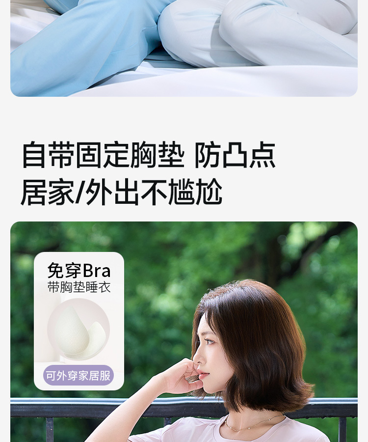 高支棉莫睡衣(舒韵圆领带胸垫)
