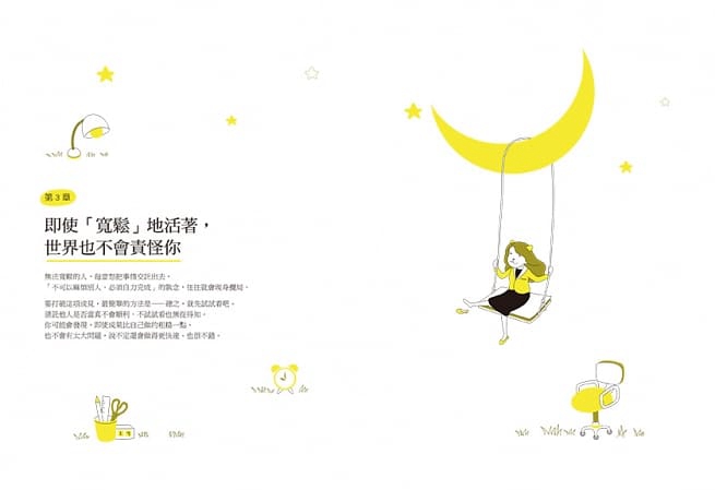 ◎所謂「無法寬鬆的人」,幾乎有九成的特徵都能套在我身上。我一直都很努力,卻總是戰戰兢兢。而本書讓我知道,只要接受「好一點就是進步」的思維,不必汲汲於完美,就能更從容地面對一切。