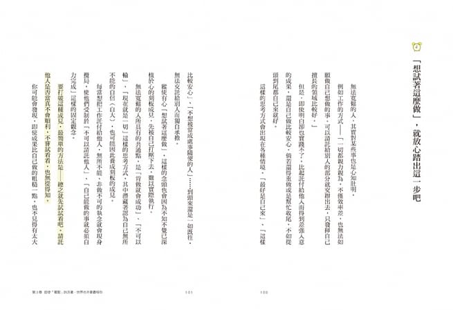 ◎看了本書,我才知道自己是多麼認真的人。是誰規定不可以輸的呢?人生並非一直線,做不到的事就是做不到。我想向職場上那些雖然寬鬆但工作能力也很強的前輩學習,試著信任他人、託付他人。