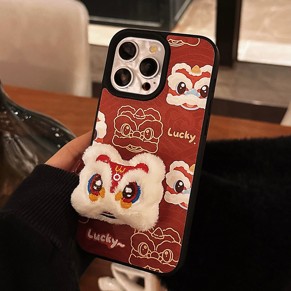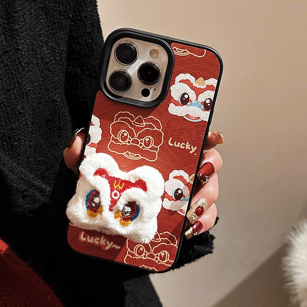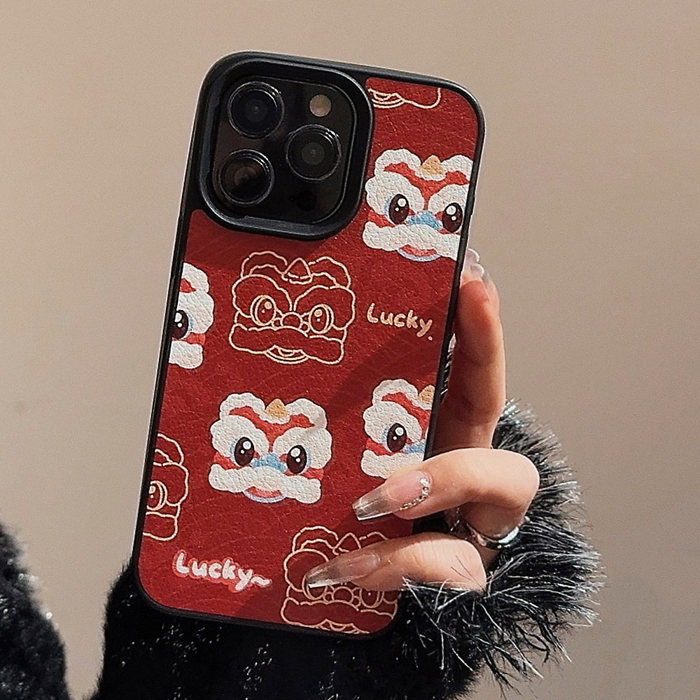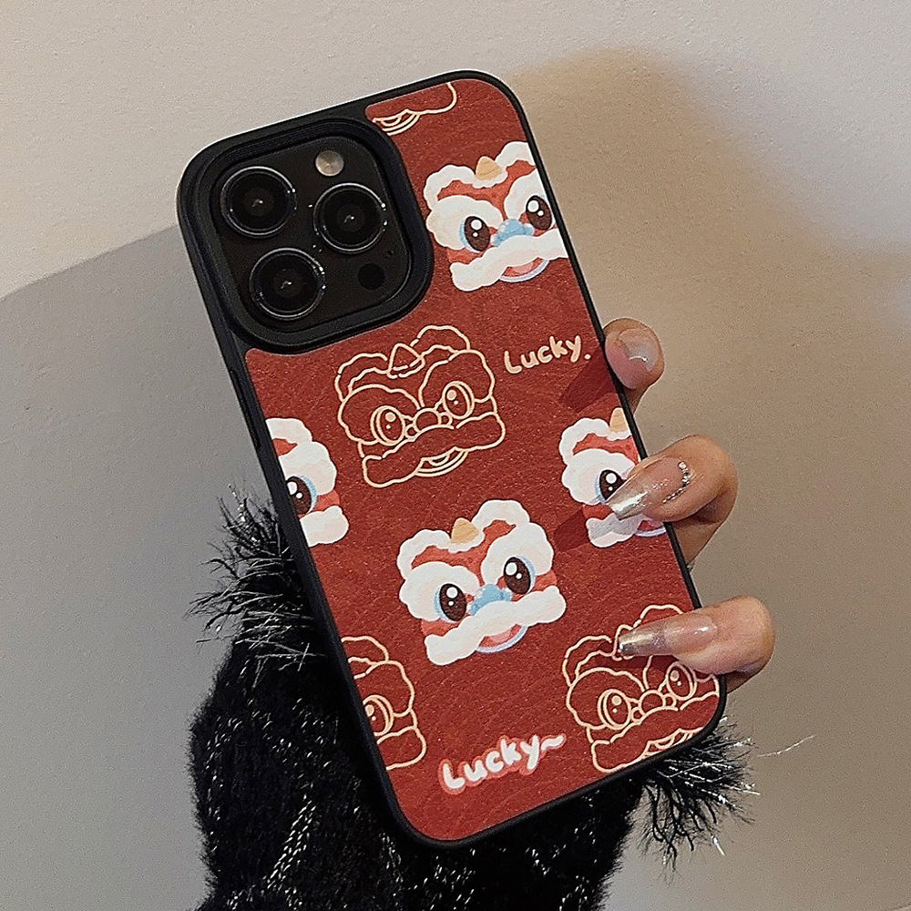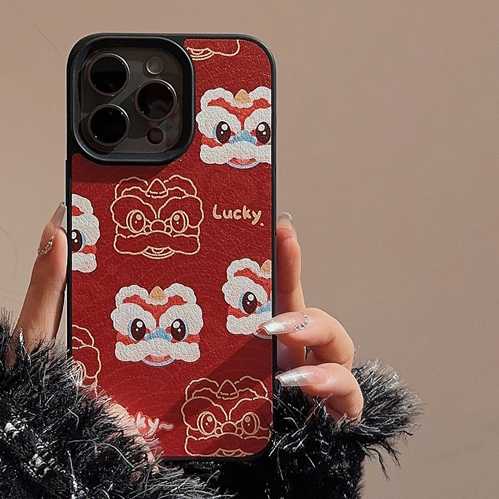 【中国风醒狮苹果手机壳】14promax皮纹15 适用iPhone16新年款11硬壳12