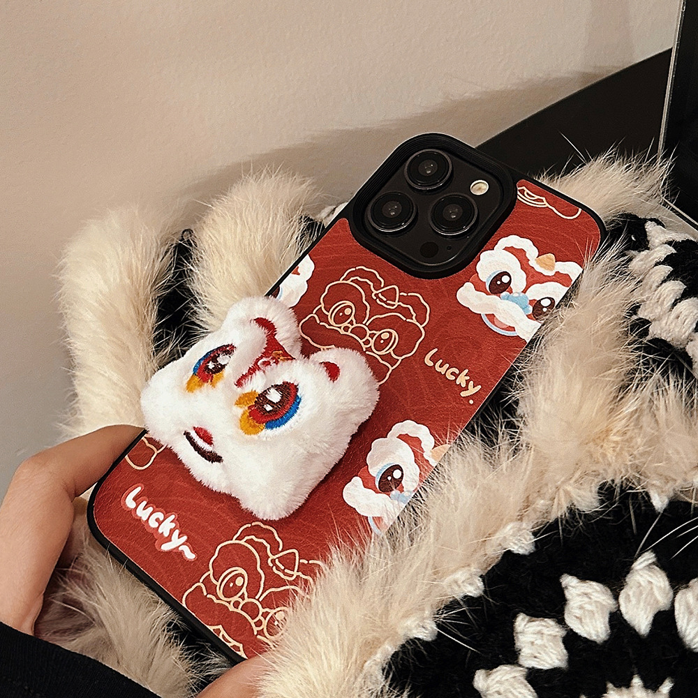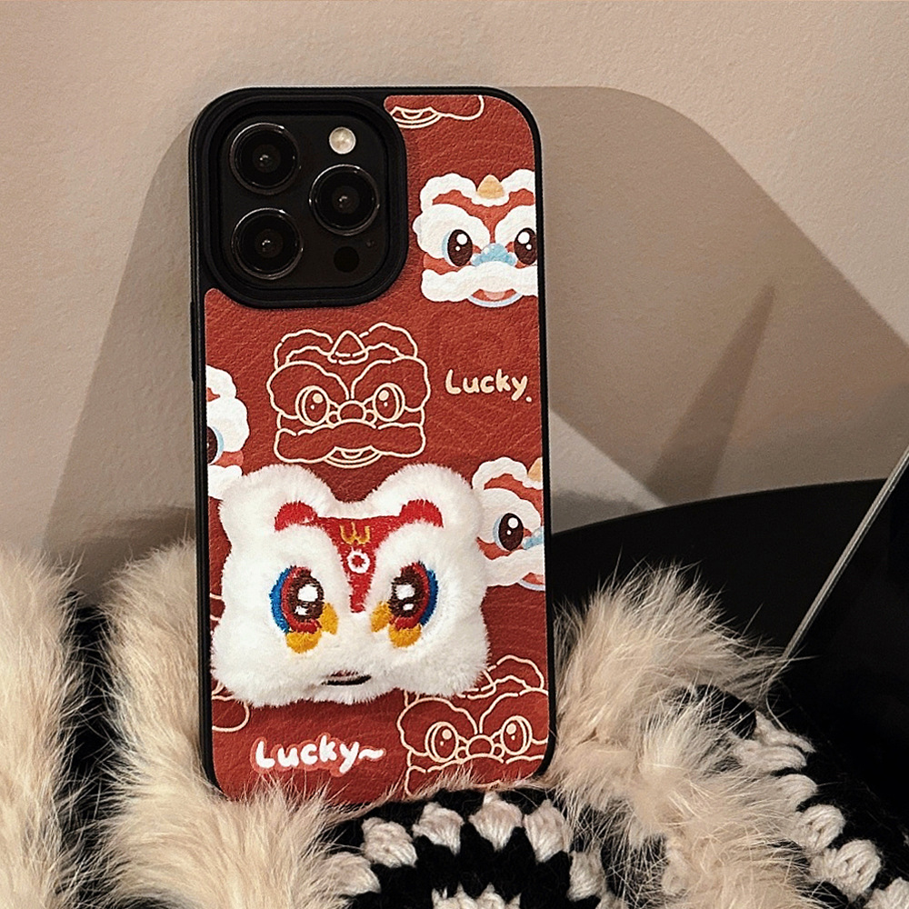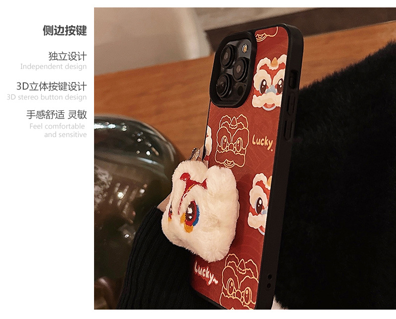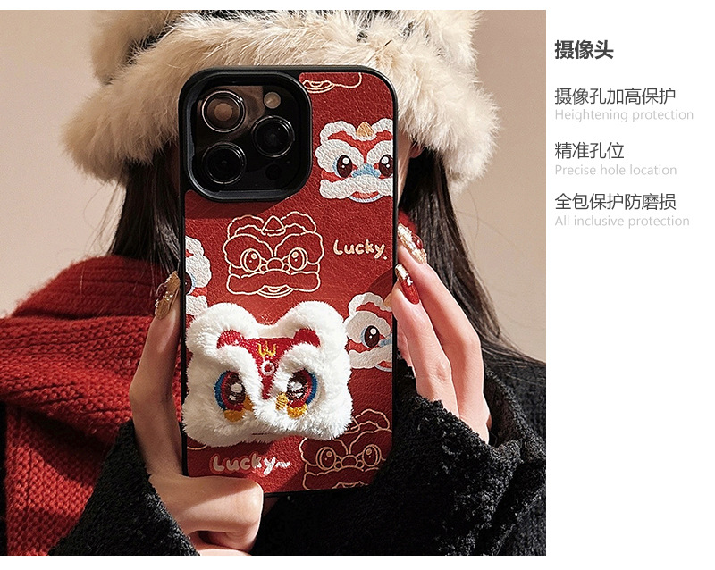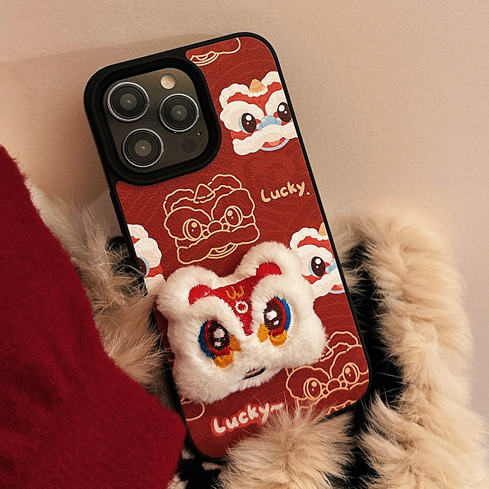 【中国风醒狮苹果手机壳】14promax皮纹15 适用iPhone16新年款11硬壳12