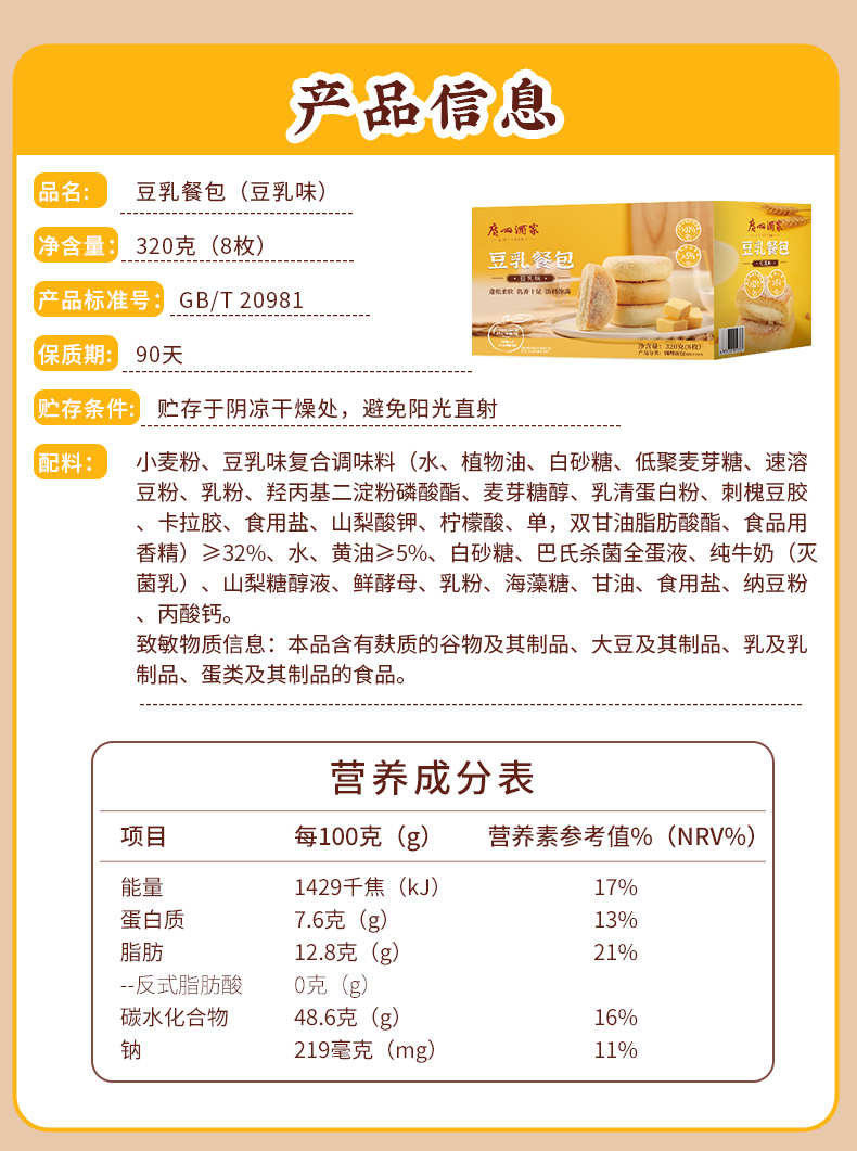 广州酒家 豆乳餐包2箱夹心早餐面包整箱糕点充饥小零食休闲食品