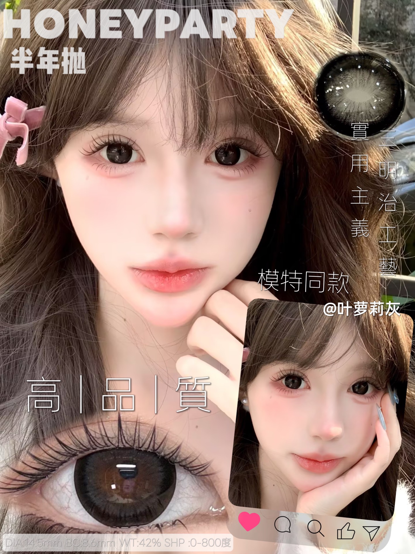 honeyparty美式发生/趁热拿铁/十里方糖/叶萝莉棕/叶萝莉灰 14.5mm 半年抛 粉棕巧灰