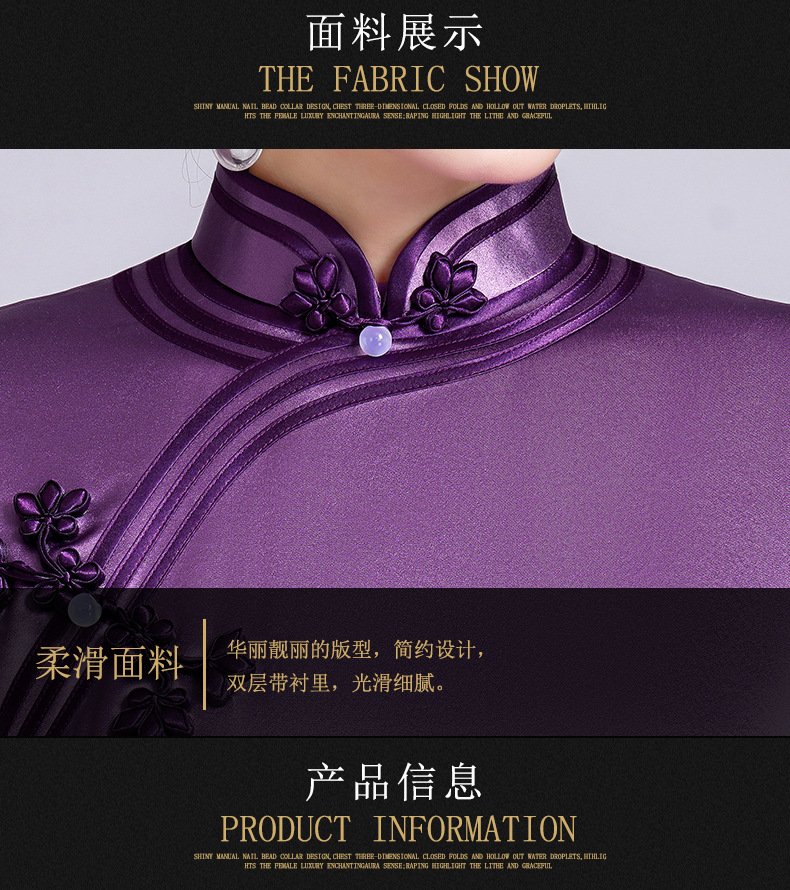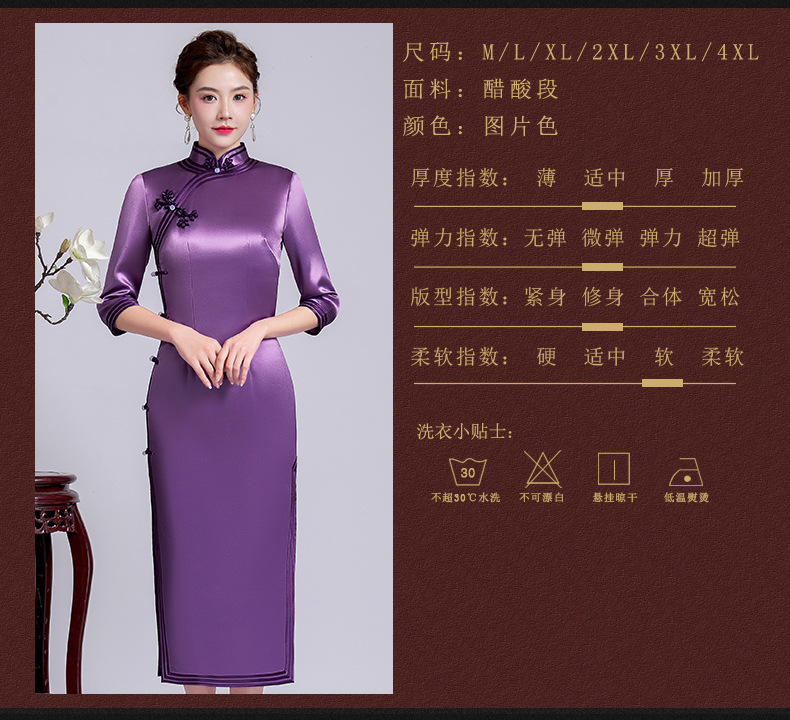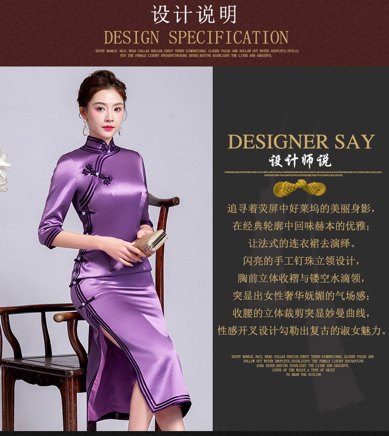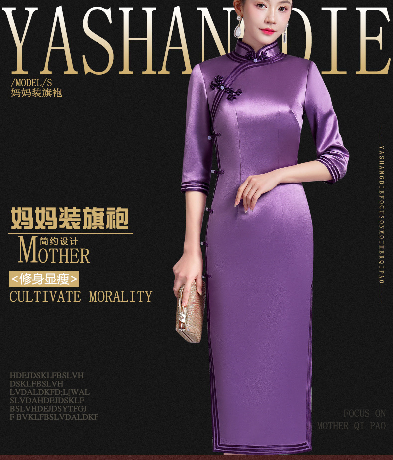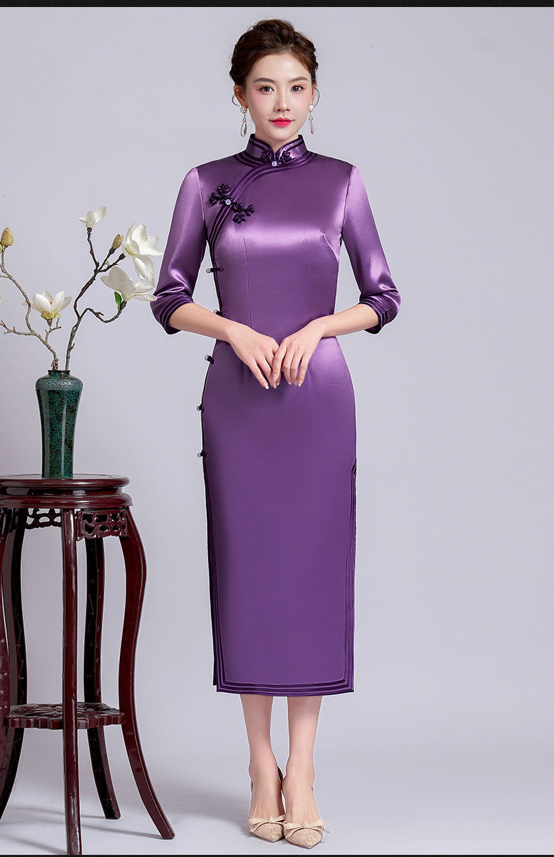 【丹凤朝阳】紫色斜开叉长款年轻款演出旗袍YD90