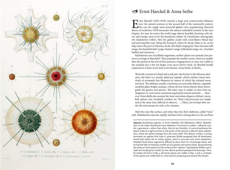 这些艺术作品最初出现在图文并茂的书籍中,在没有摄影和电影的年代,它们为读者展现了更为广阔的自然视野。《生物多样性的艺术》一书将带领读者认识这些书籍的创作者——那些非凡的男男女女。他们将精湛的艺术技巧倾注于自然,交易珍稀的贝壳和蝴蝶,在热带雨林中采集鸟类和猴子的标本,从深海中打捞奇异的无脊椎动物,用放大镜观察昆虫,甚至从地底挖掘史前骨骼。