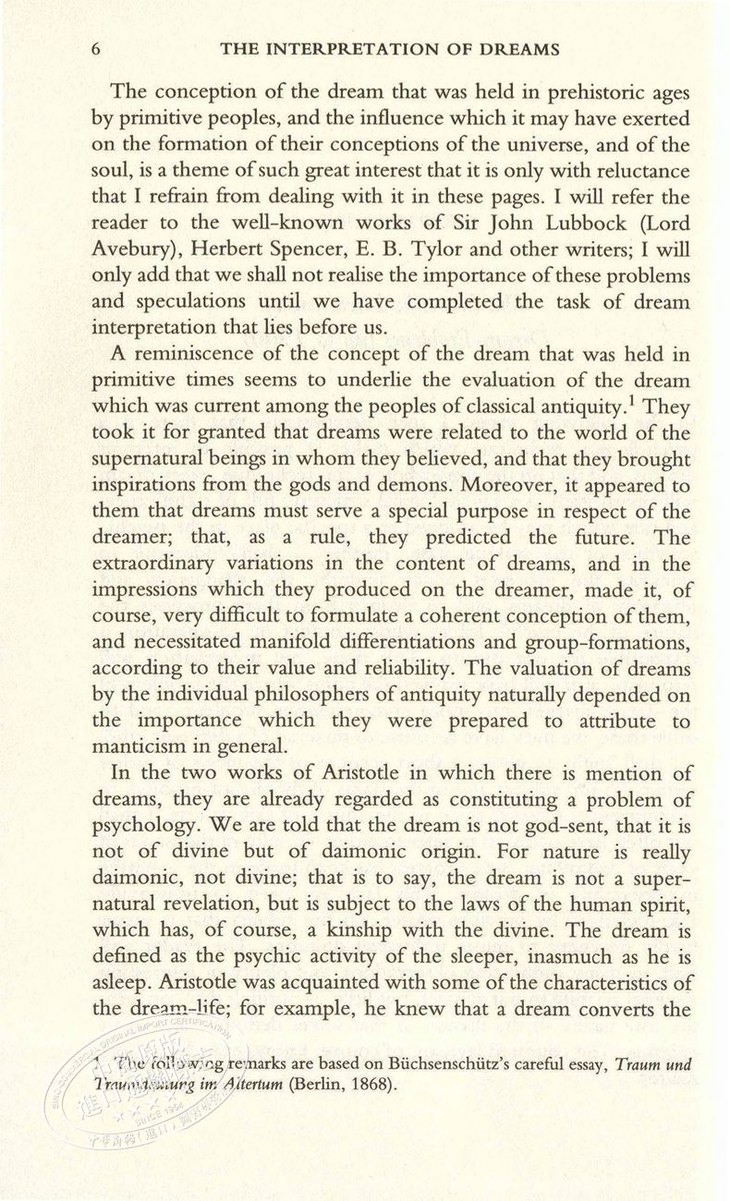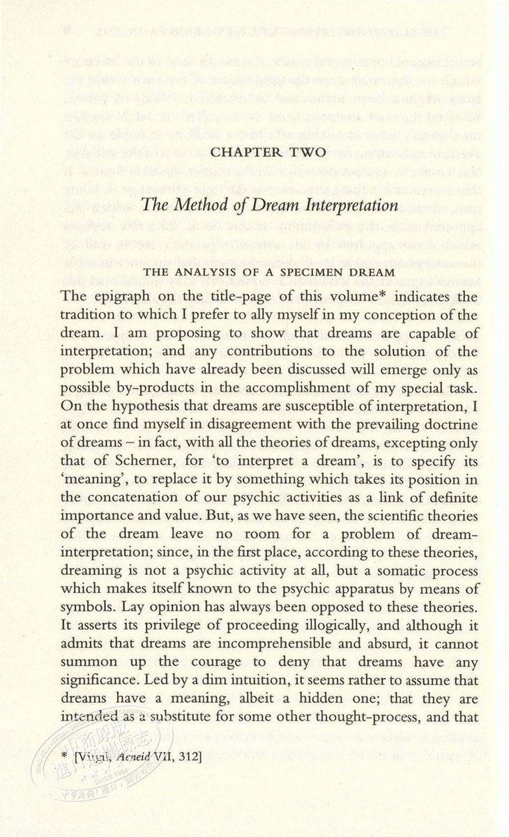 精神分析是一种医治神经病的方法,也是一种研究心理功能的技术,以后形成一种心理学的理论,成为现代心理学的一个重要学派,对心理学、医学、人类学乃至史学、文学艺术和哲学都发生了不同程度的影响。《梦的解析》是精神分析学派的重要的经典。精神分析理论的基本概念的方法都在这部著作当中得到精深的表述。
