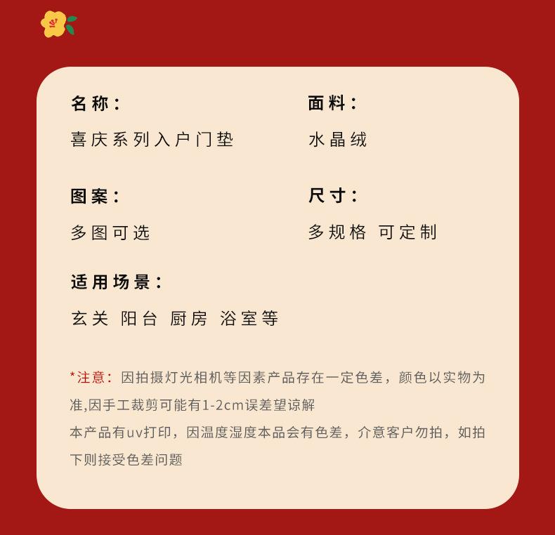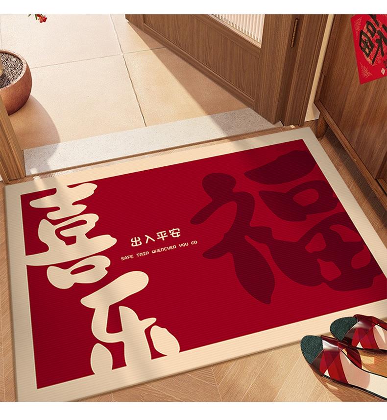 新款喜乐福文字门垫家用喜庆装饰入户脚垫婚房装饰玄关地垫鞋柜垫