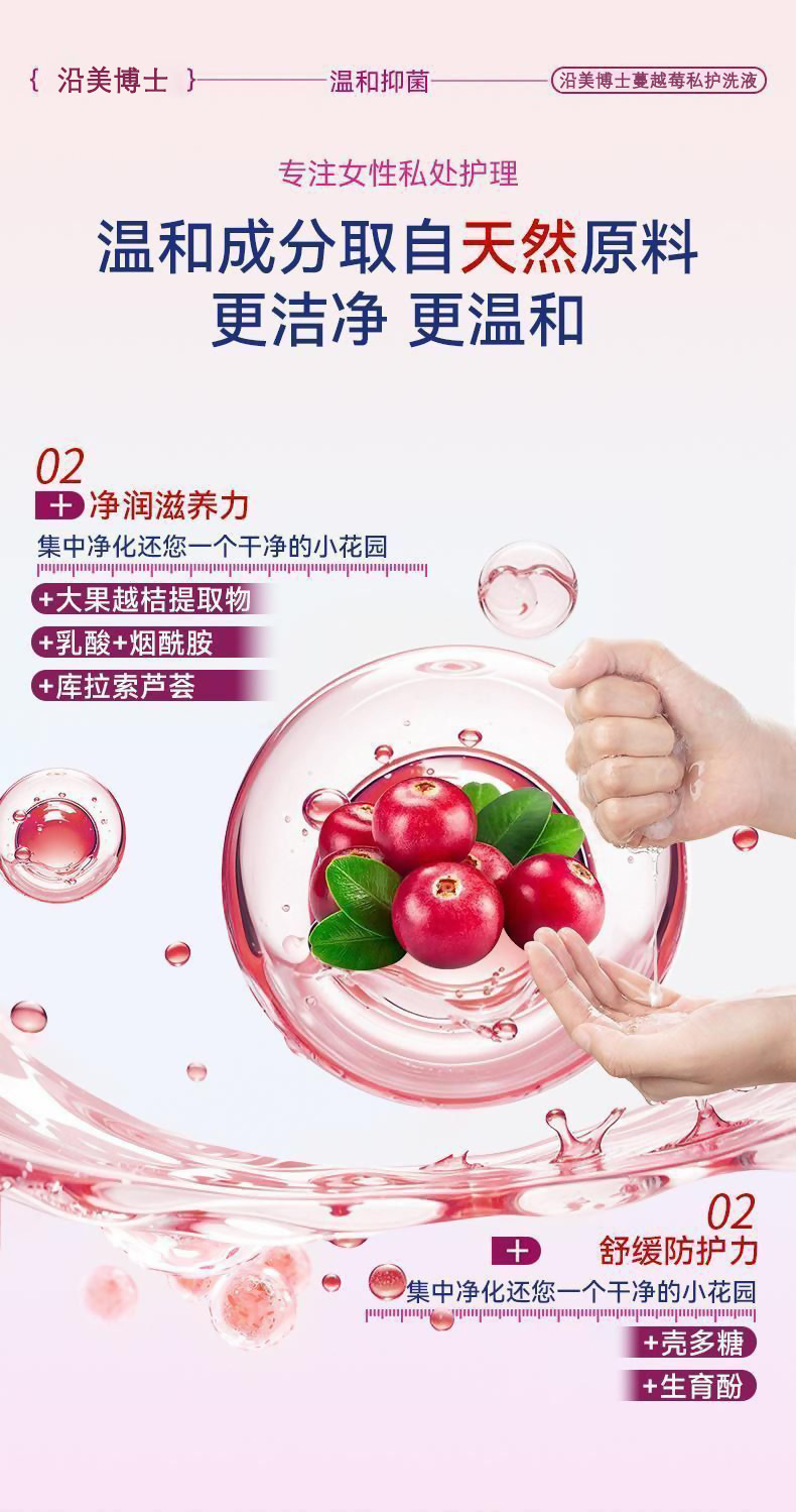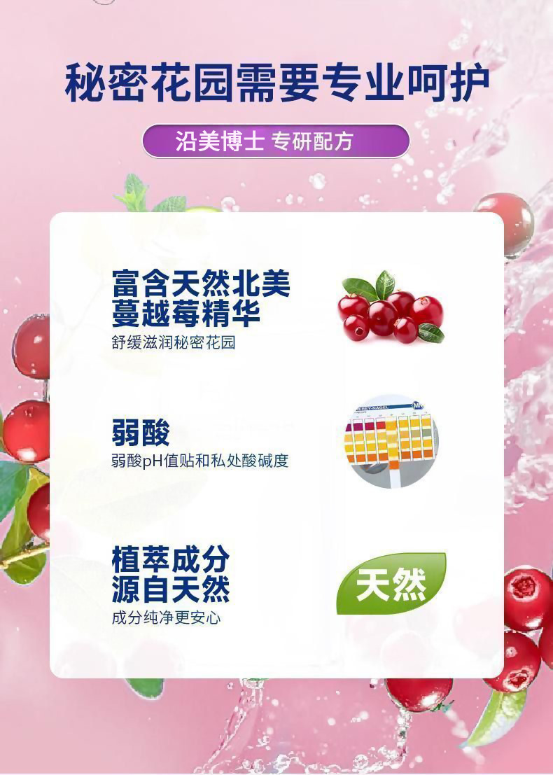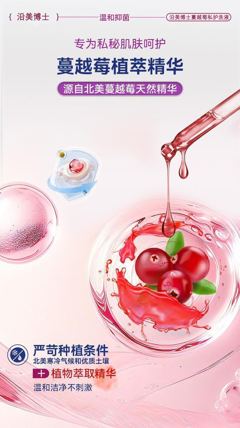 【温和清洁 + 弱酸护私护】沿美博士蔓越莓私护洗液温和清洁弱酸止痒持久留香女士清爽护理液。xb