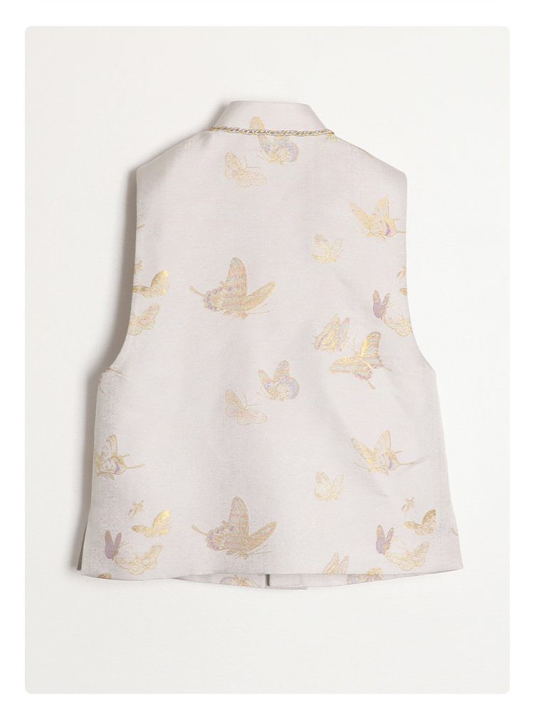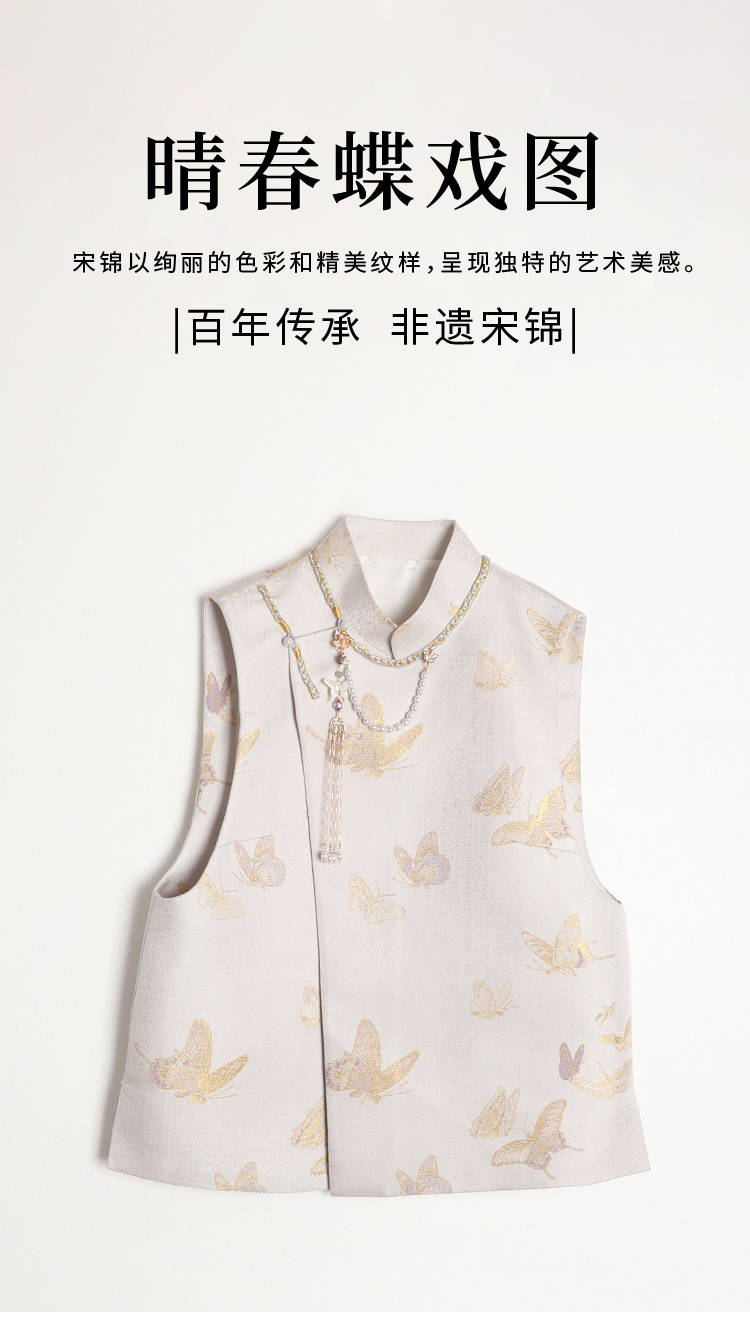 上久楷新中式中国风宋锦马甲高端女装晴春蝶戏图CY1045207011