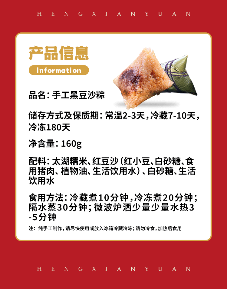 【小时达】手工黑豆沙粽160g * 2个