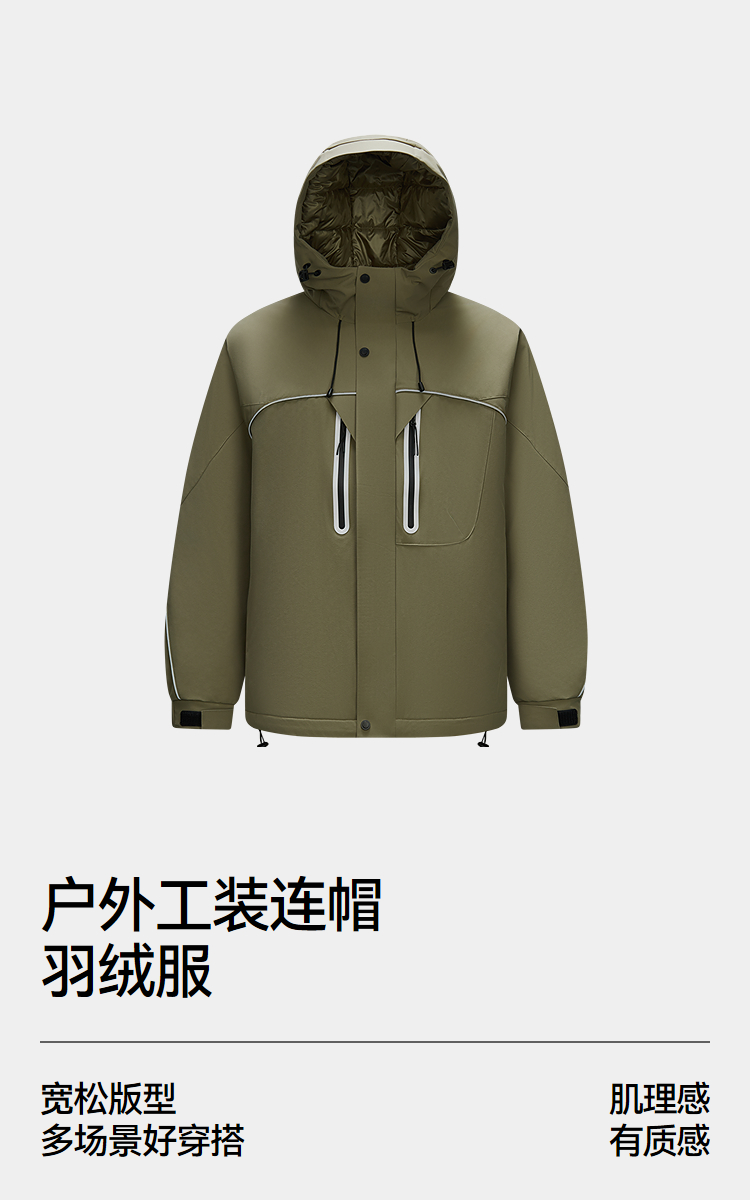 森马羽绒服男冬季80绒子宽松连帽保暖外套肌理感户外运动工装上衣