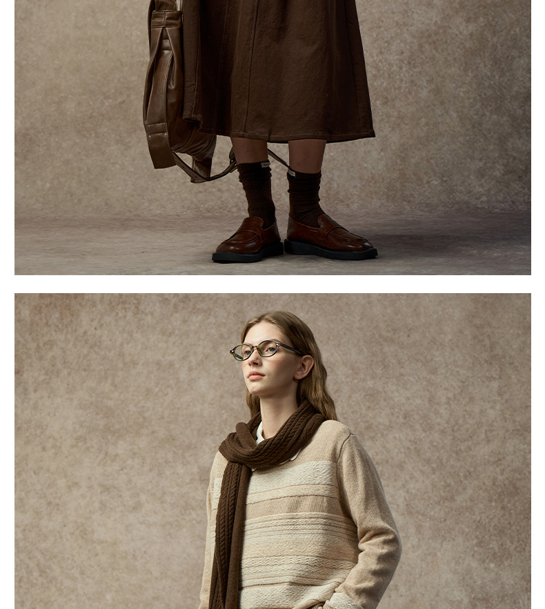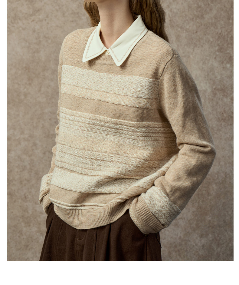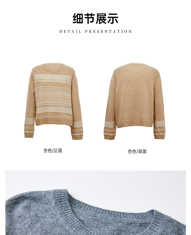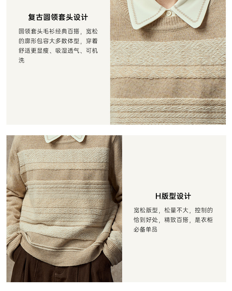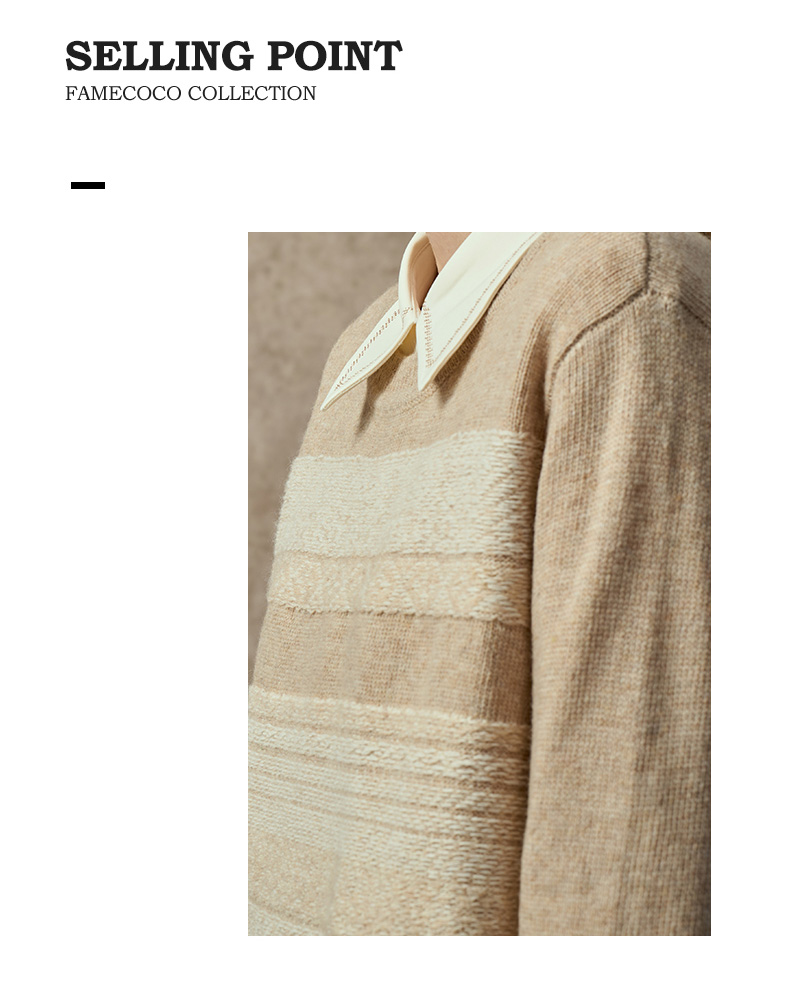Famecoco复古撞色提花祖母风毛衣宽松慵懒圆领针织衫FAC8DB011