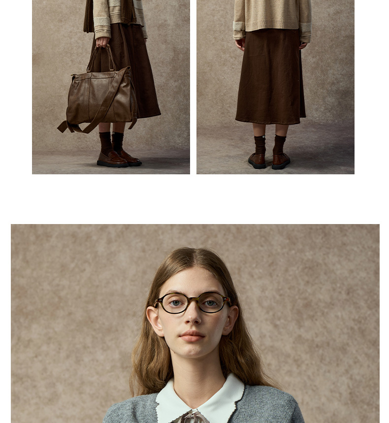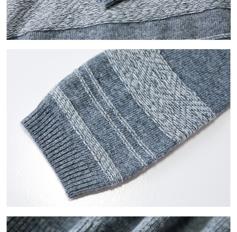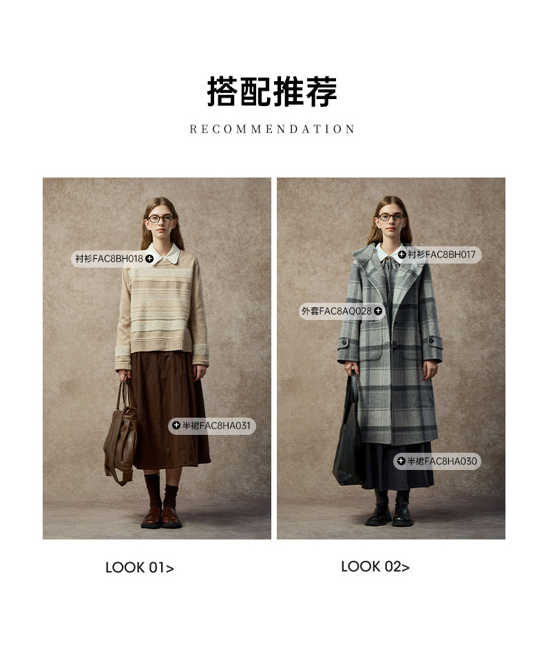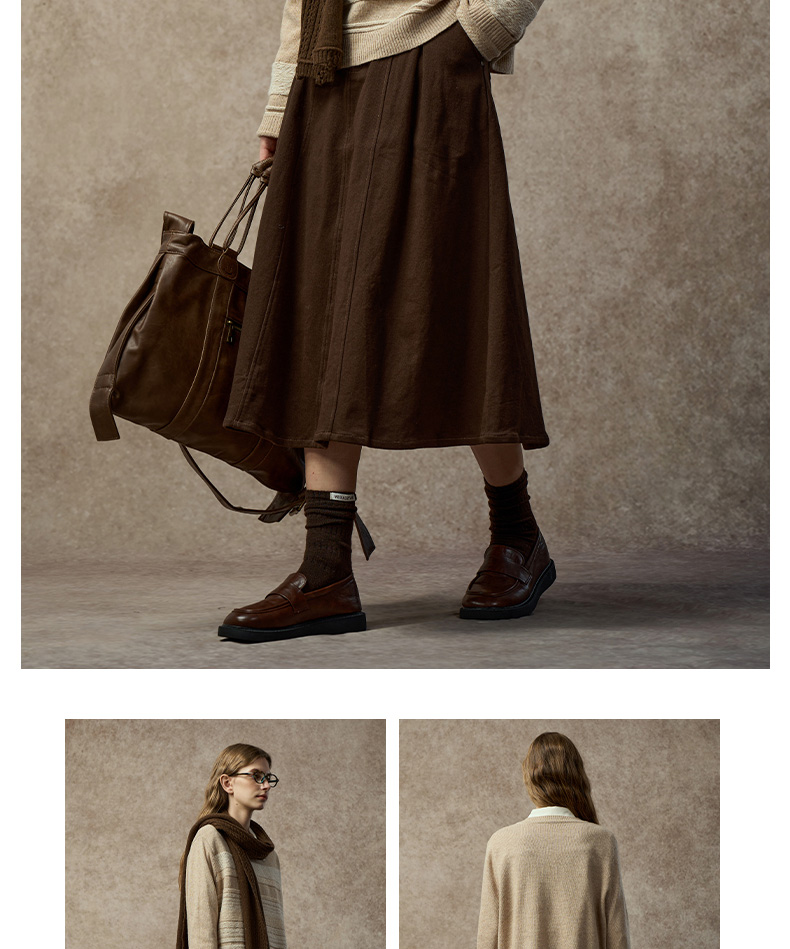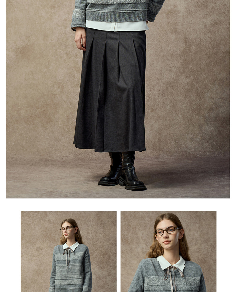 Famecoco复古撞色提花祖母风毛衣宽松慵懒圆领针织衫FAC8DB011
